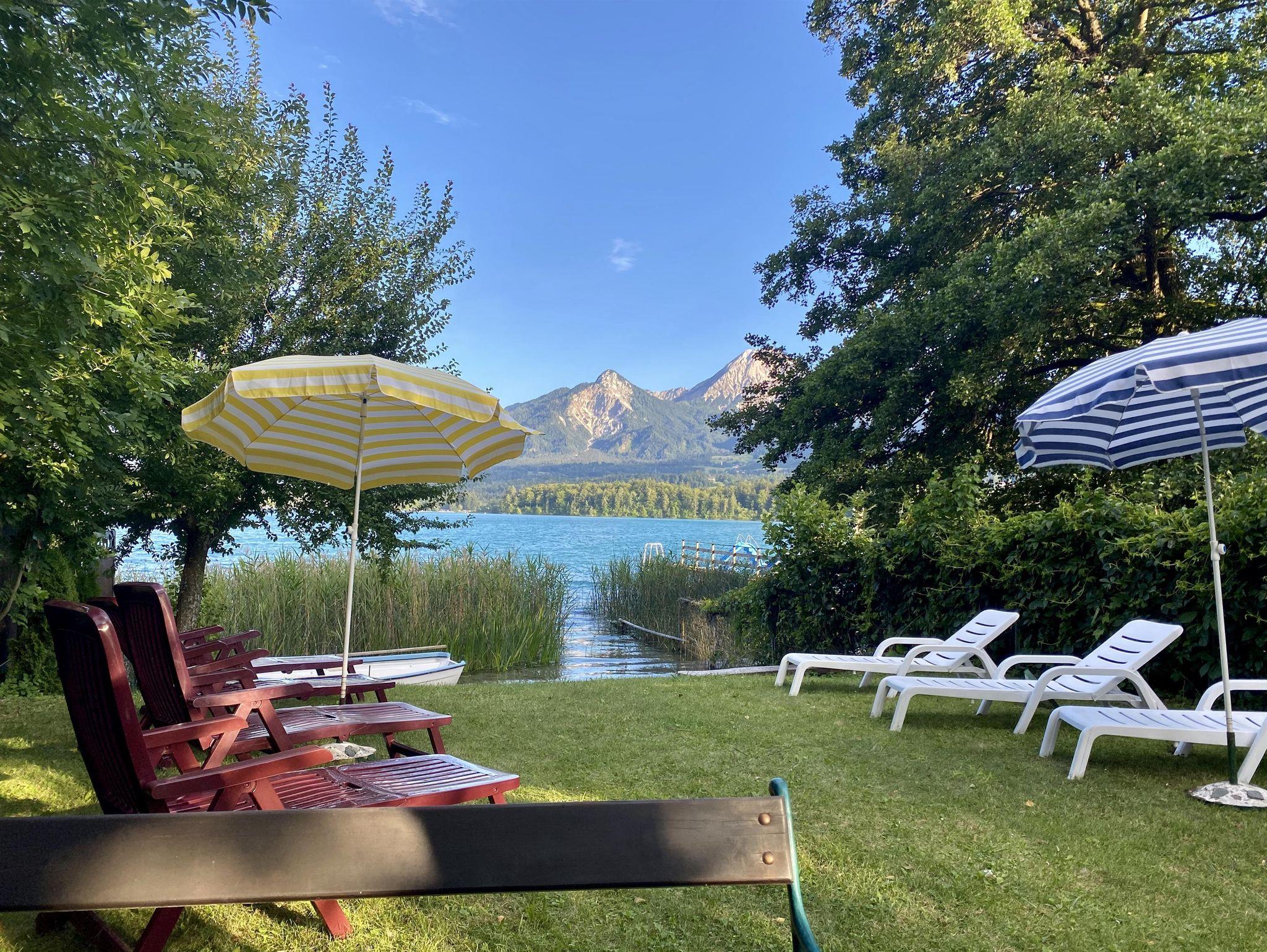Villa am Faaker See mit Privatstrand und Ruderboot, Ferienwohnung mit Balkon und Seeblick