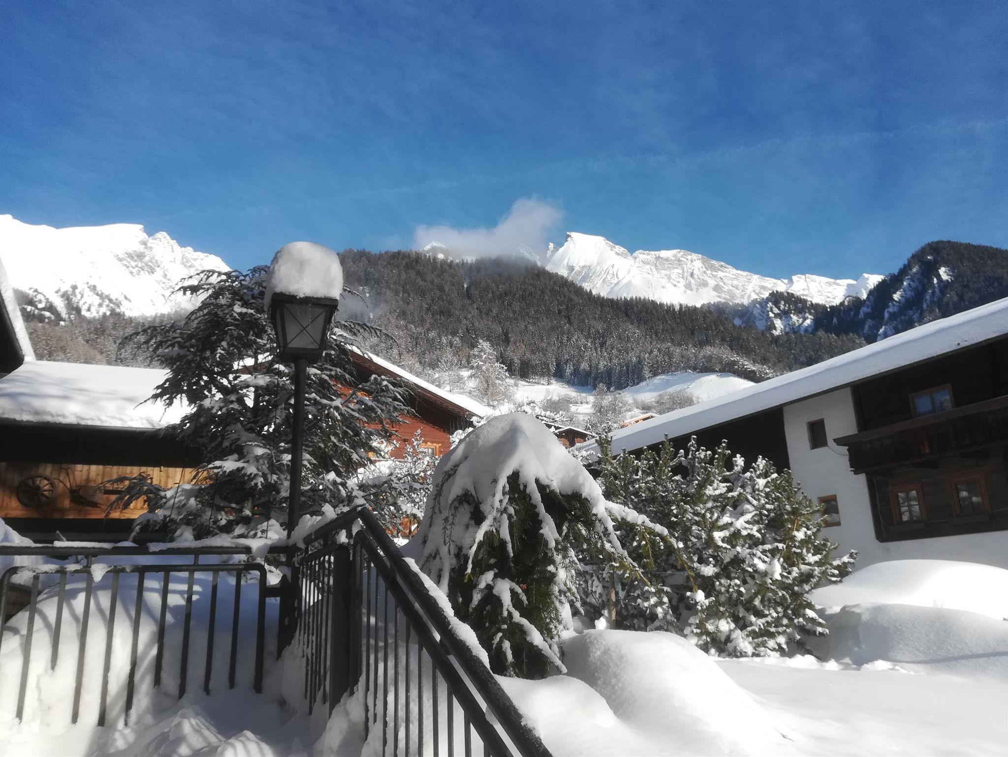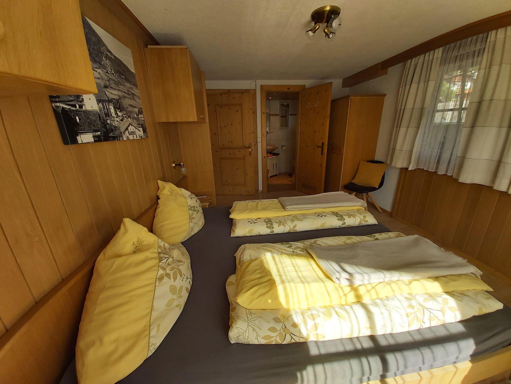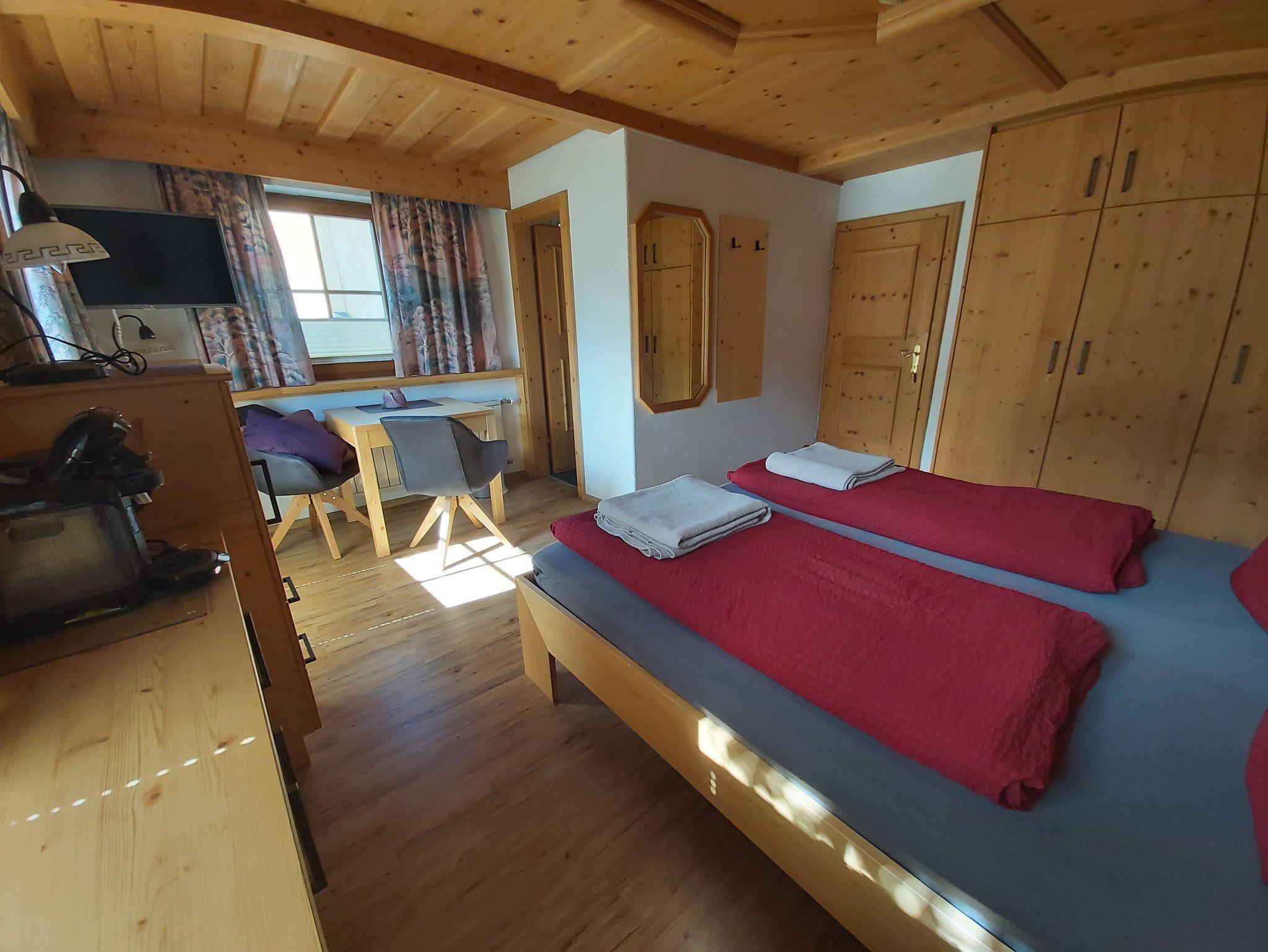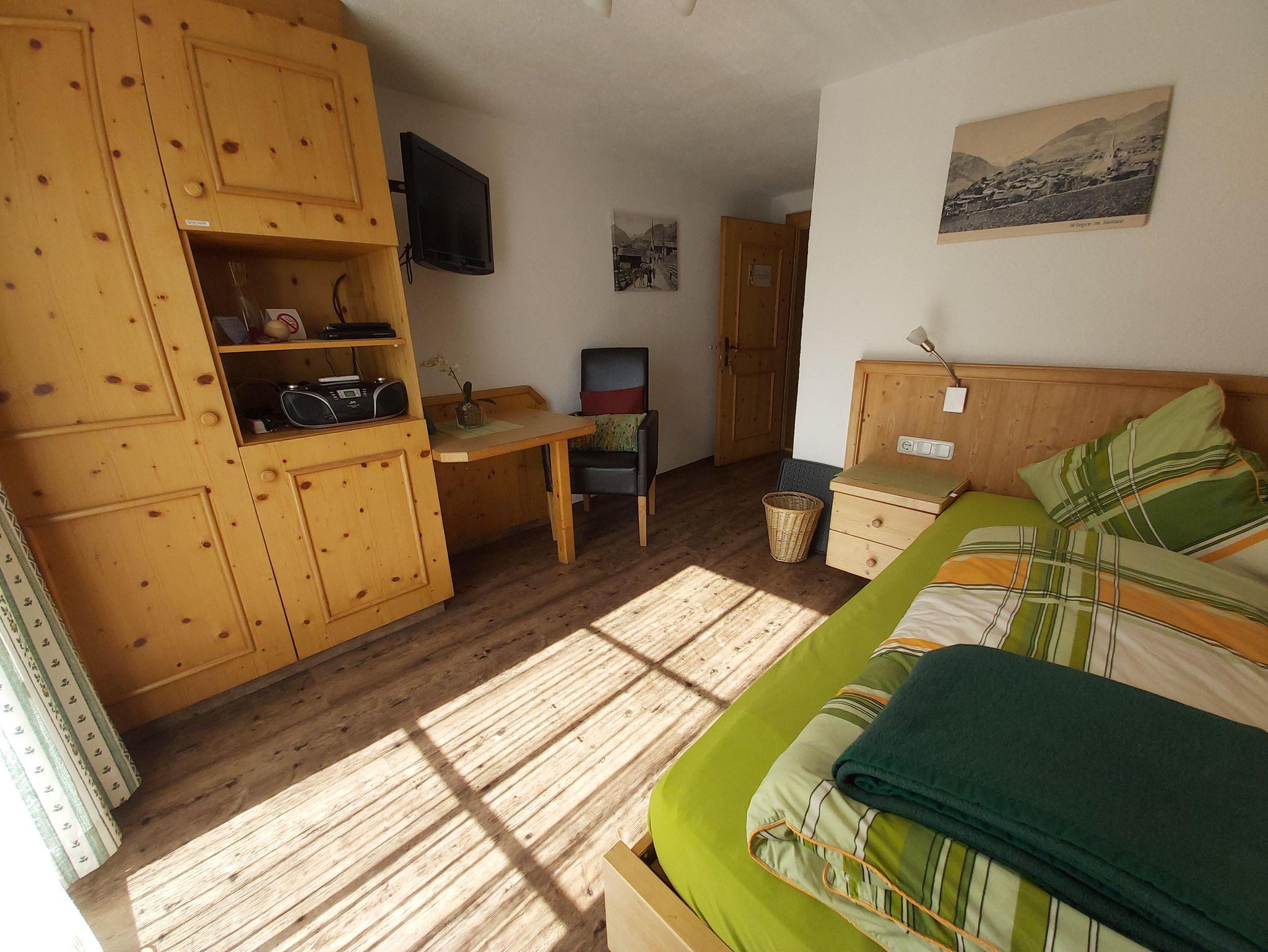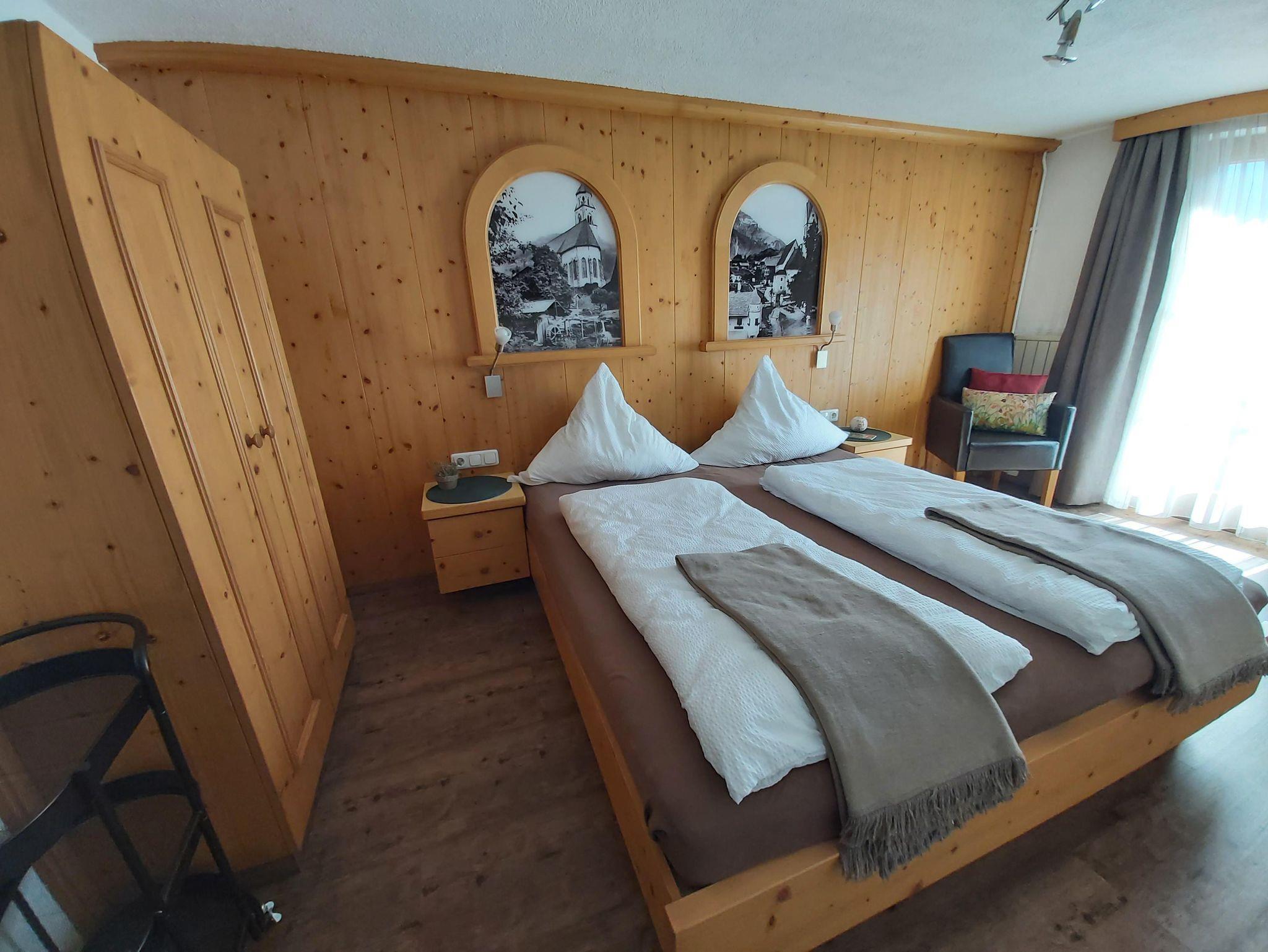 Gemütlich eingerichtete Doppelzimmer mit Du/WC, Sat-TV, CD-Radio und Föhn. Balkon mit Blick auf den Dorfplatz und unsere schöne Gebirgslandschaft