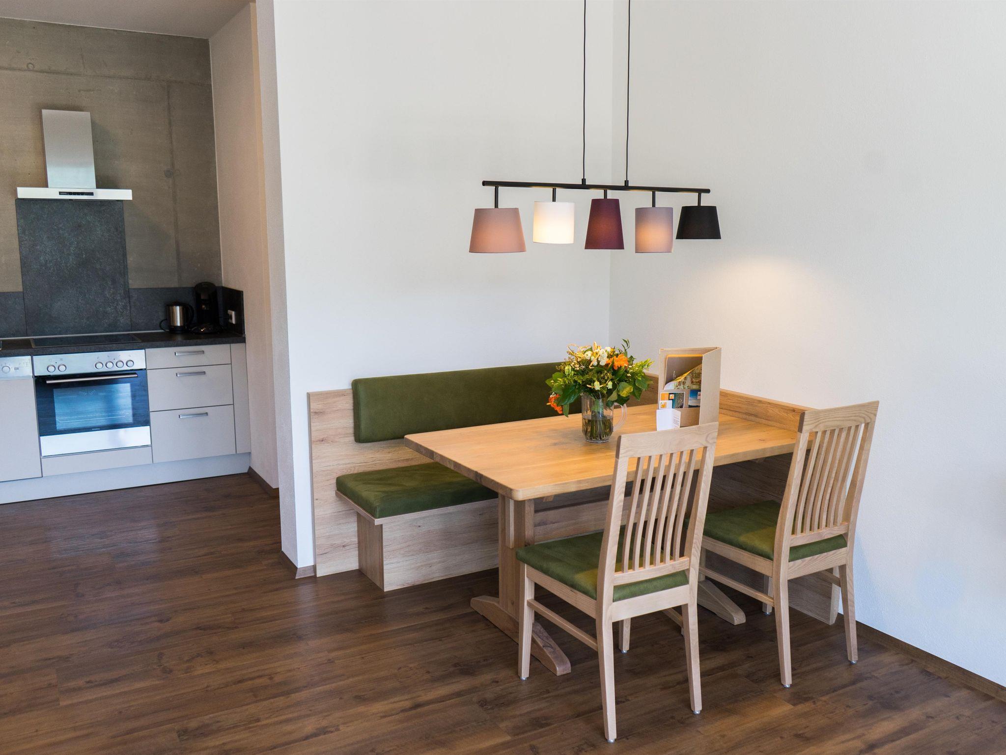• Küche voll ausgestattet mit Ceran-Kochplatte und Backrohr, Kühlschrank, Wasserkocher, Geschirrspüler