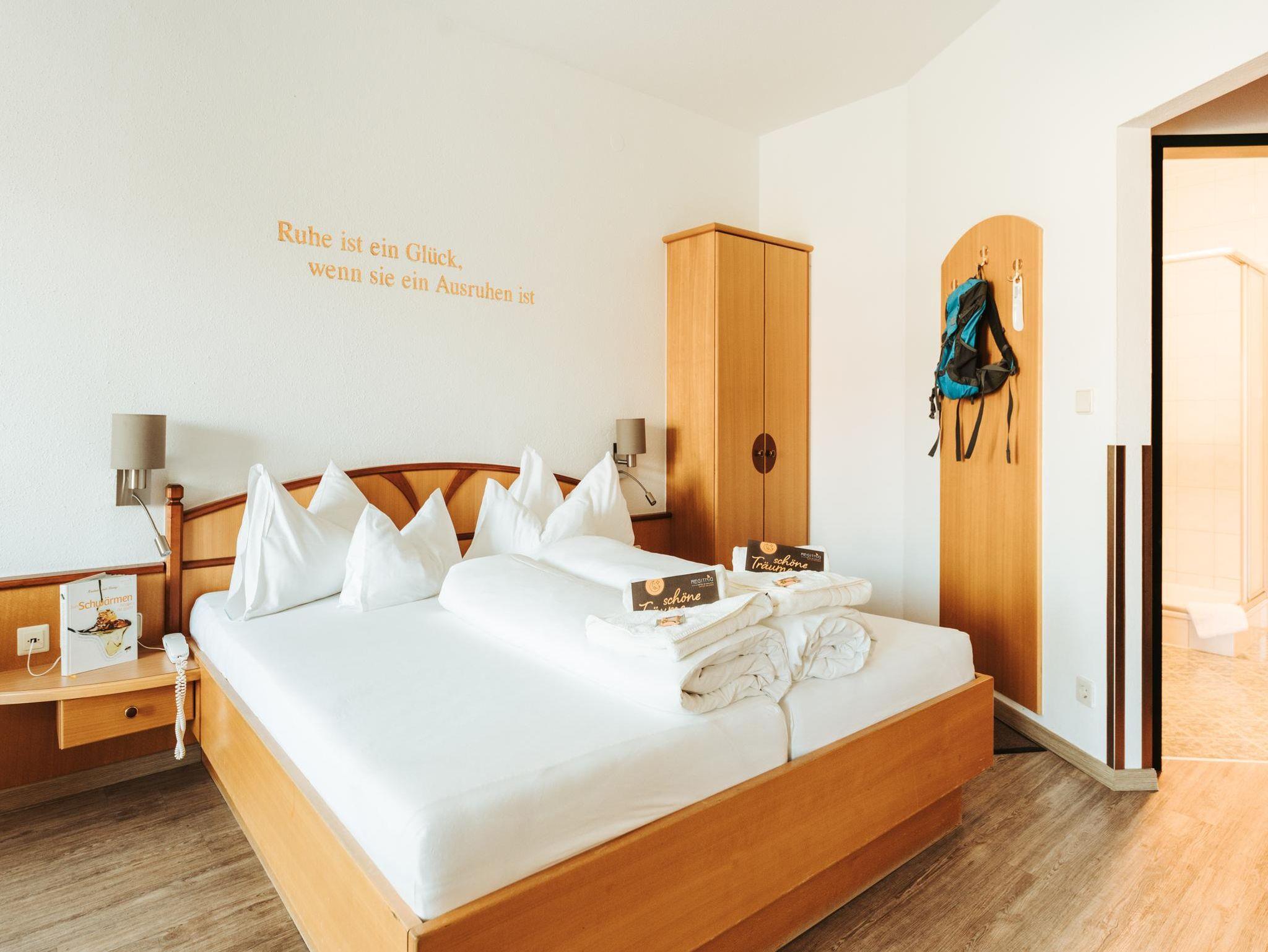 Zur absoluten Familienzeit werden Ihre Urlaubstage in unserem Familienzimmer. Das Zimmer bietet separate Eltern- und Kinderschlafzimmer und somit ausreichend Platz für alle. Vom Elternschlafzimmer geht es auf den sonnigen Westbalkon, wo beim Sonnenuntergang bei einem Glas Wein der Tag Revue passiert werden lassen kann.