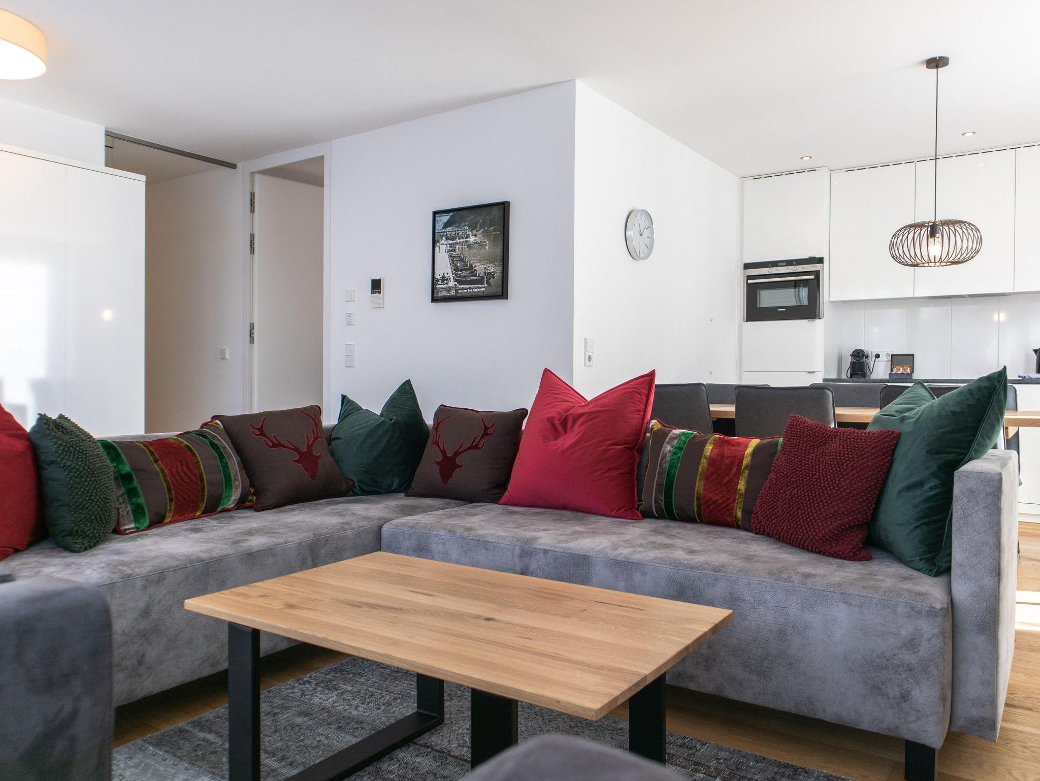 Das Apartment mit drei Schlafzimmern befindet sich auf der fünften Etage der Residence Bellevue Zell am See. Die Schlafzimmer sind jeweils mit einem Doppelbett ausgestattet. Zusätzlich gibt es 2 Badezimmer mit Badewanne / Dusche und WC. Das geräumige Wohnzimmer verfügt über einen großen Esstisch und eine offene Designerküche. Von der gemütlichen Sitzecke oder dem Balkon aus genießt man den wundervollen Blick auf den See und die Berge.