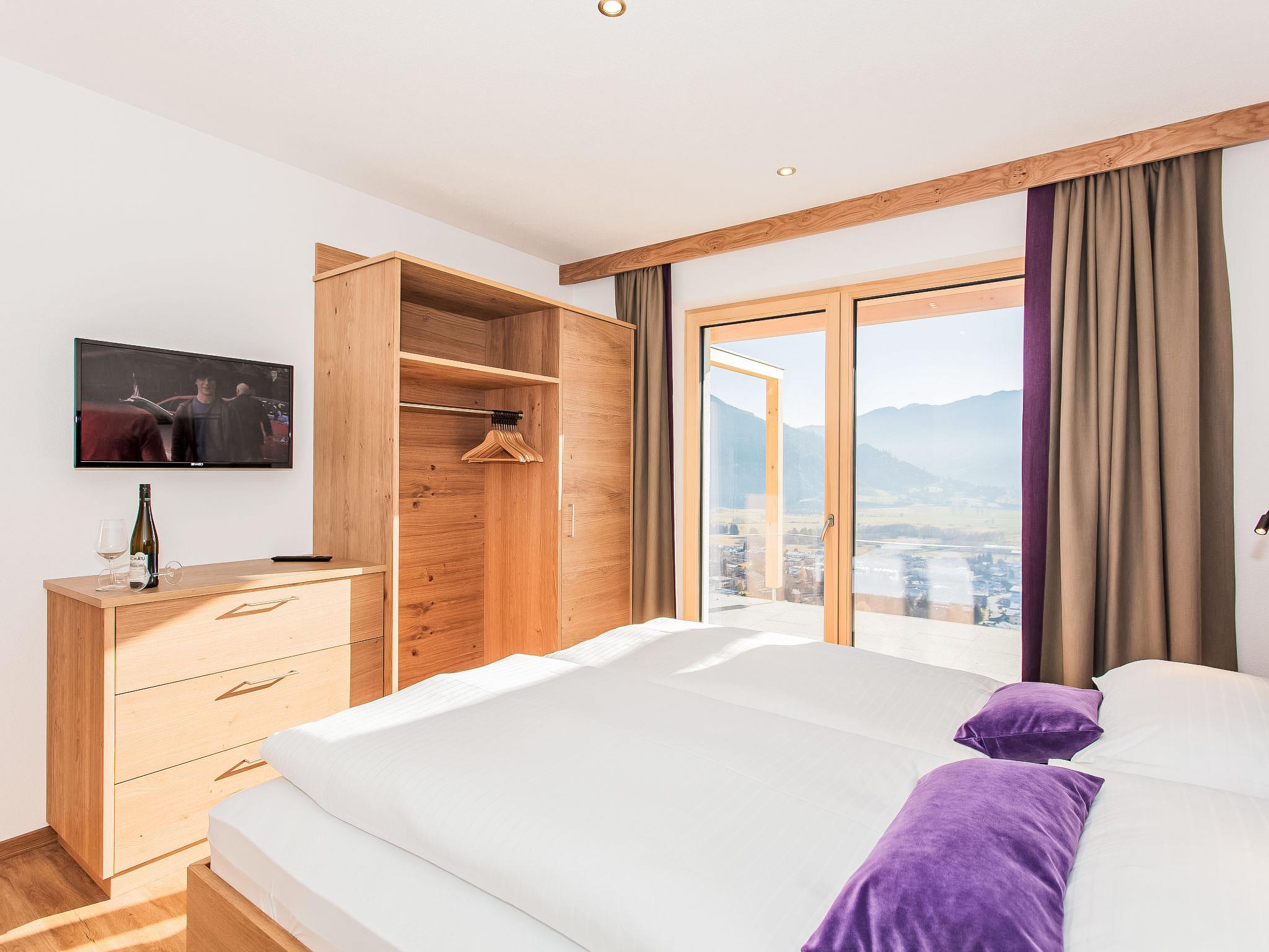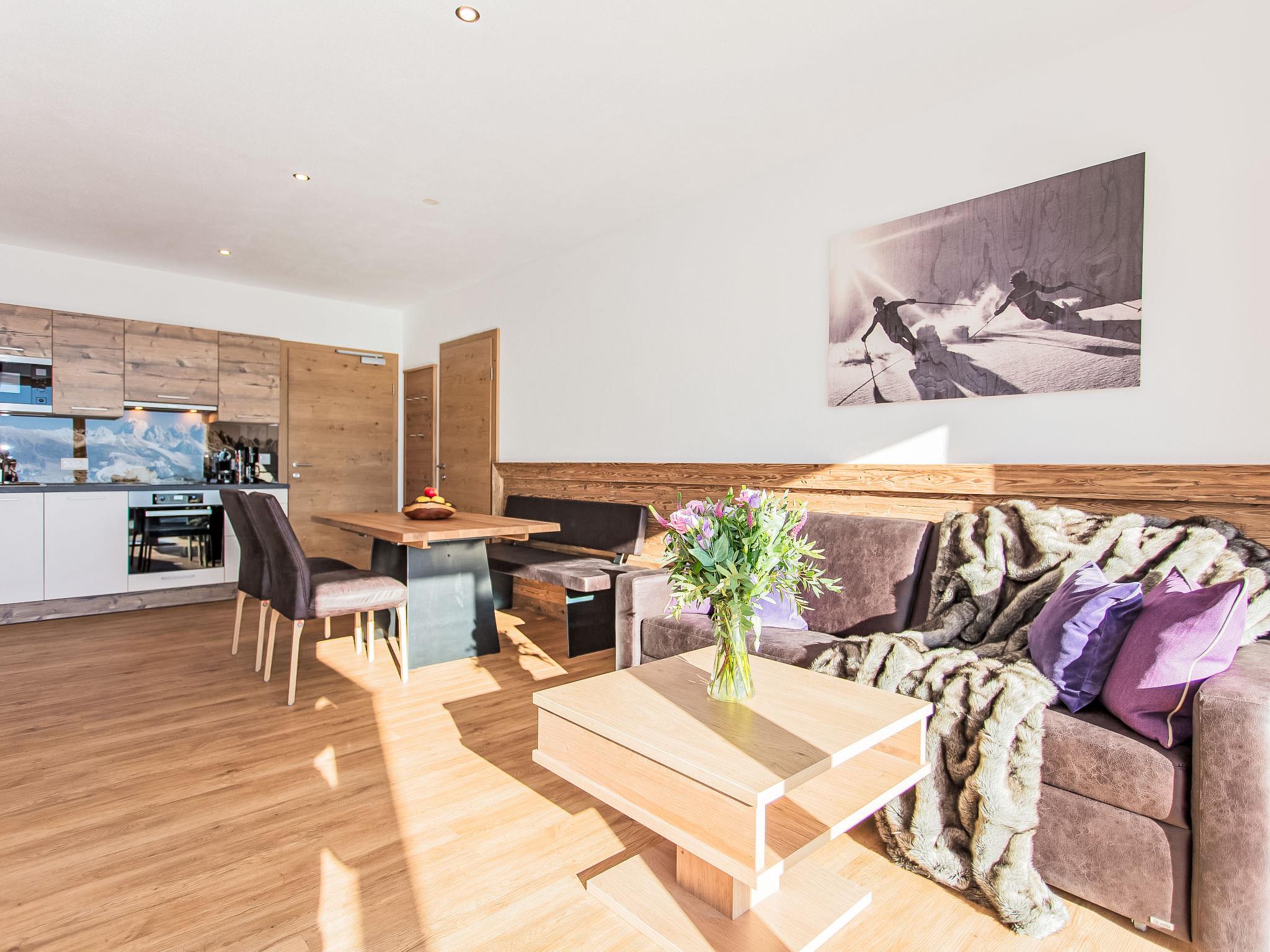 "Kitzsteinhorn", 2-room apartment 48 m2, lower ground floor. Object suitable for 4 adults. Bright, modern and cosy furnishings: 1 double bedroom with satellite TV (flat screen). Exit to the balcony. Large living/sleeping room with 1 double sofabed, dining table and satellite TV (flat screen). Exit to the balcony. Open kitchen (oven, dishwasher, 2 ceramic glass hob hotplates, microwave, freezer, electric coffee machine). Shower/WC. Large balcony 19 m2. Balcony furniture. Very beautiful panoramic view of the mountains and the countryside. Facilities: hair dryer. Internet (WiFi, free). Parking (roofed, 1 car). Please note: suitable for families. Non-smokers only. Smoke alarm. 50628-001444-2020
