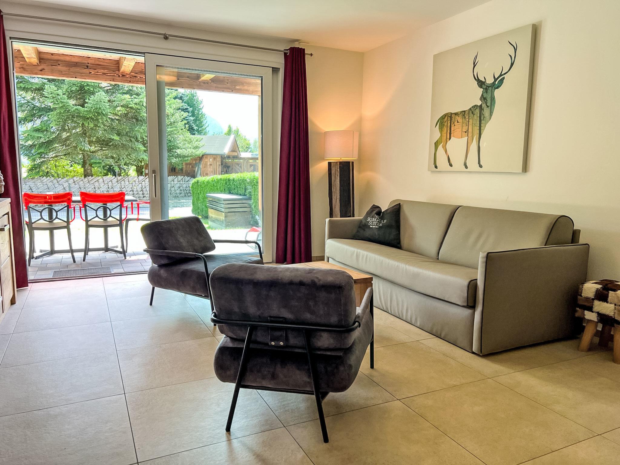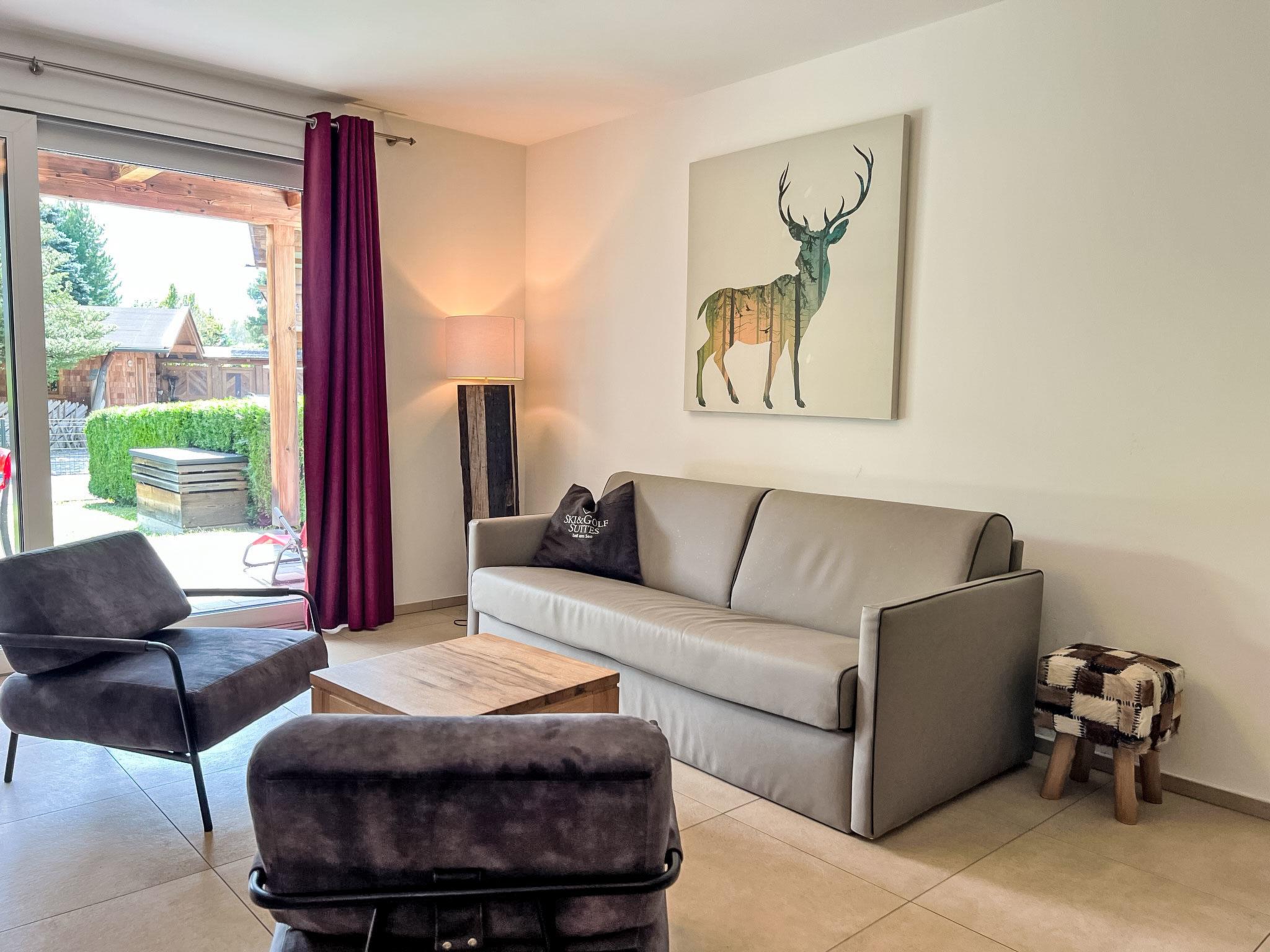 Modern, beautiful apartment block "Ski & Golf Suites Zell am See". 10 apartments in the residence. Schüttdorf - Zell am See, in a quiet position in the residential district, 3 km from the lake, 800 m from the skiing area. In the house: storage room for skis, ski boot dryer. In Winter: please take snow chains. Communal covered parking at the house. Grocery 1 km, bus stop "Porf. Fery Porsche Strasse" 1.1 km, railway station "Bruckberg" 1.1 km, bathing lake "Zeller See" 3 km. Golf course (36 hole) 1 km, cycle lane 50 m, gondola lift 1 km, cross country ski track 200 m. Well-known ski regions can easily be reached: Schmittenhöhe 1 km, Kitzsteinhorn 5 km. Hiking paths: Schmittenhöhe 1 km, kitzsteinhorn. Please note: suitable for families.