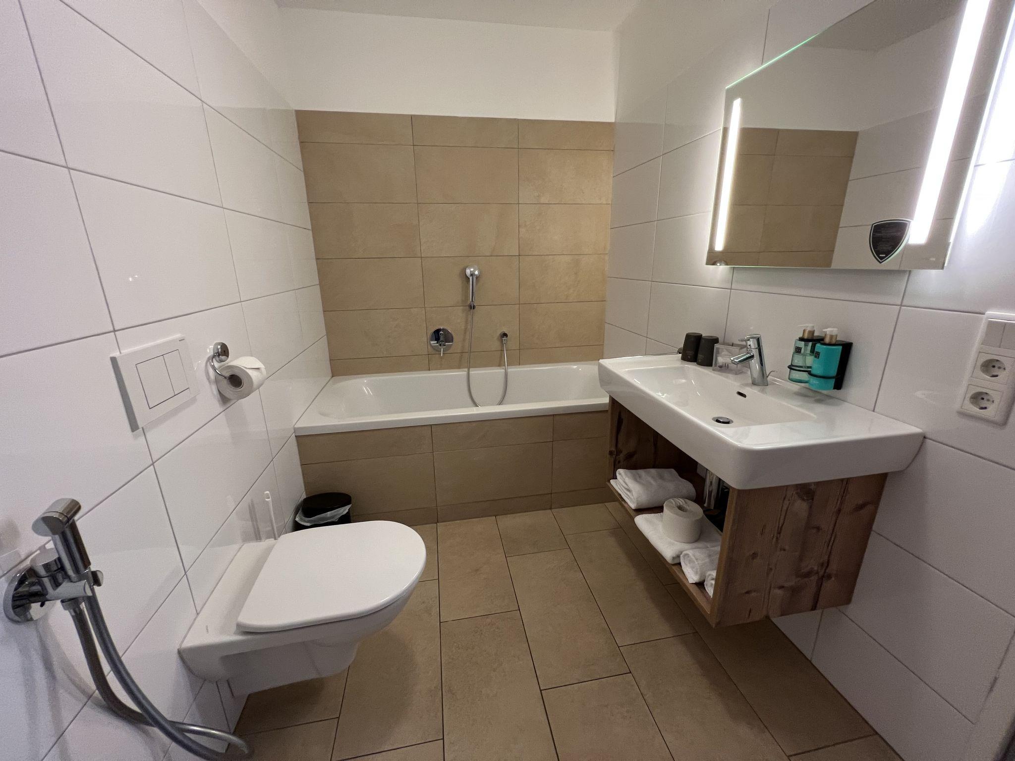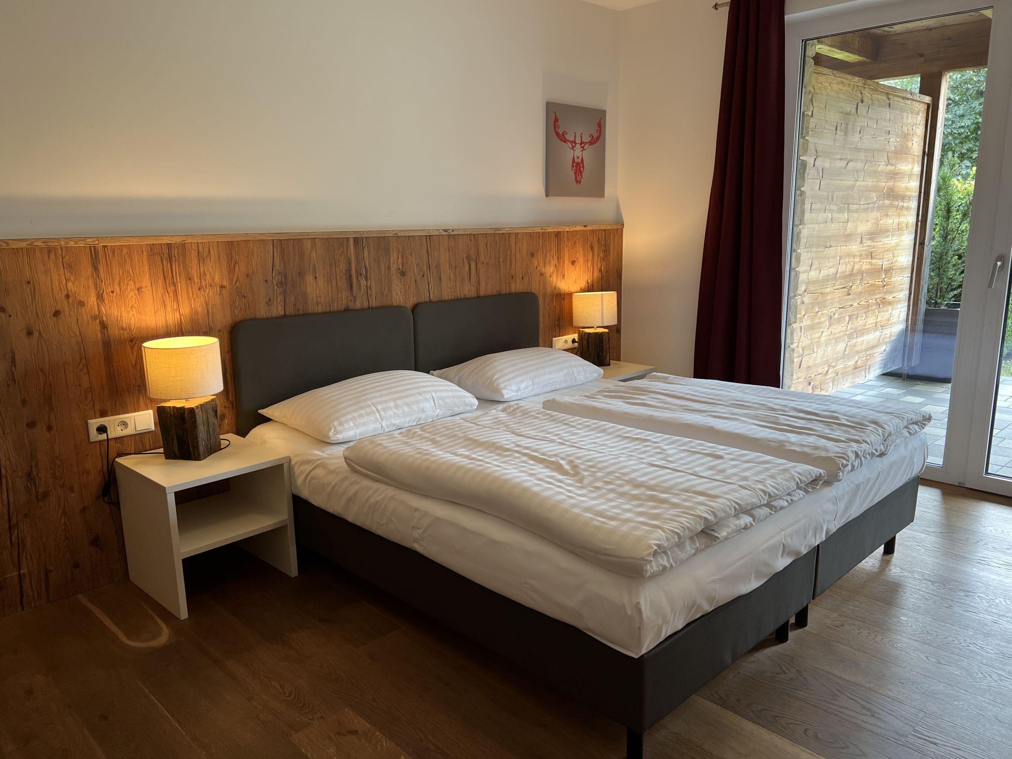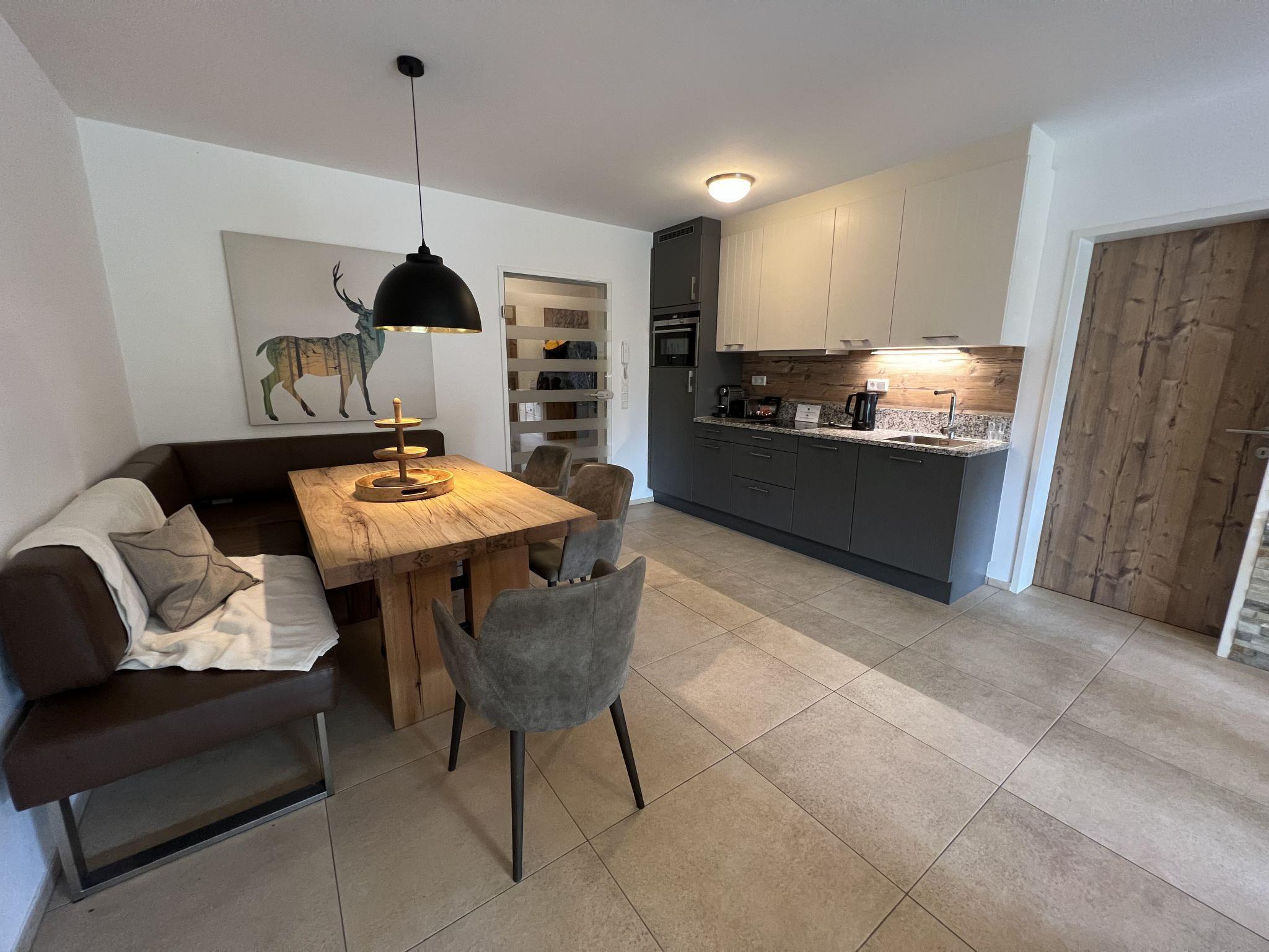 "Appartement Ursula", 2-room apartment 60 m2, on the ground floor. Object suitable for 4 adults. Spacious and bright, very modern and tasteful furnishings: entrance hall. Living/sleeping room with 1 double sofabed, cable TV and flat screen. Exit to the garden. 1 double bedroom with cable TV and flat screen. Exit to the garden. Kitchen-/living room (oven, dishwasher, 4 ceramic glass hob hotplates, toaster, kettle, electric coffee machine) with dining nook. Shower/WC, bath/shower/WC. Underfloor heating. Parquet floors, natural stone floors. Large terrace 20 m2, large garden. Terrace furniture. View of the countryside. Facilities: iron, hair dryer. Internet (WiFi, free). Garage. Please note: non-smokers only. Smoke alarm, fire extinguisher. 50628-001591-2023