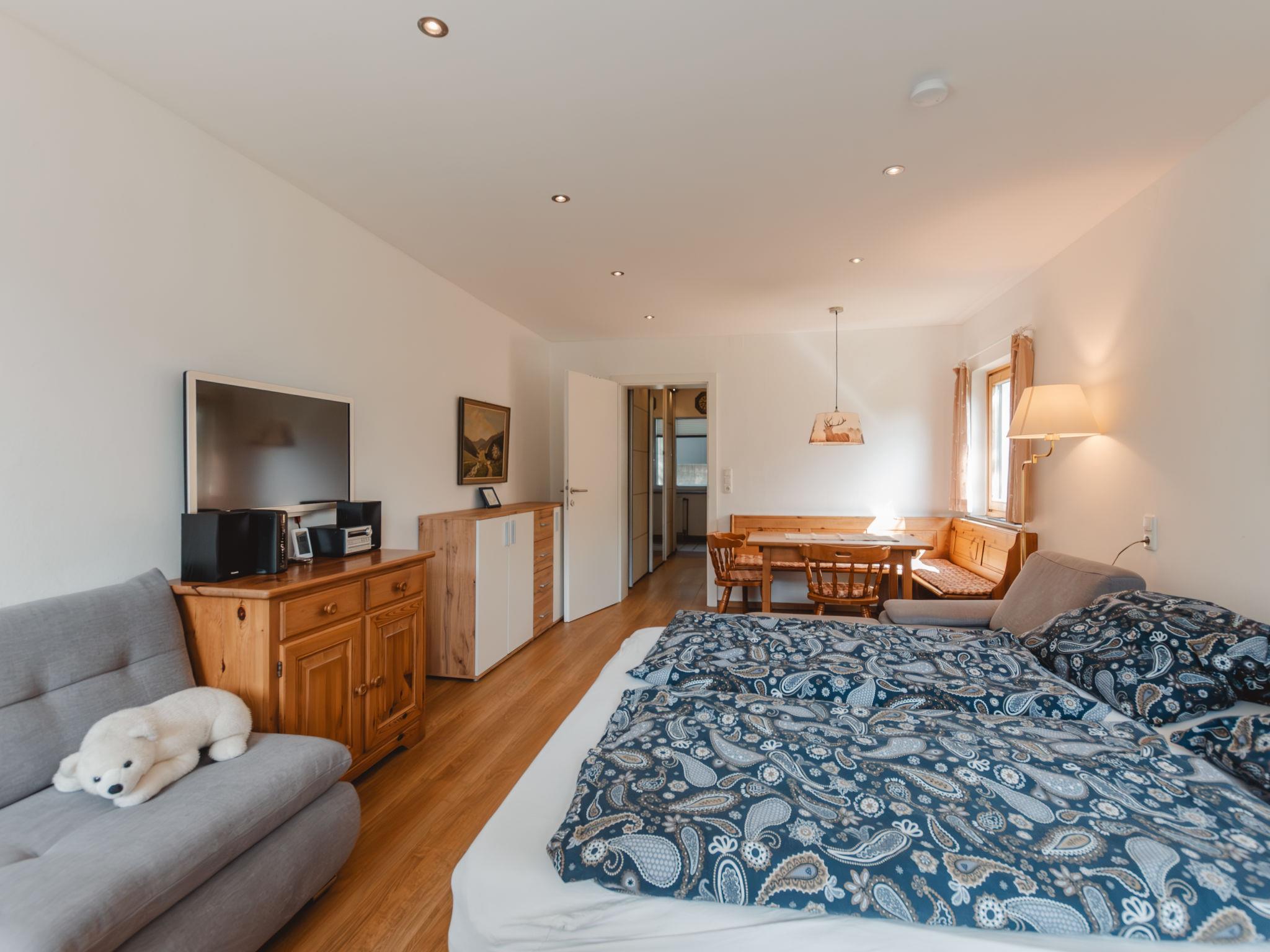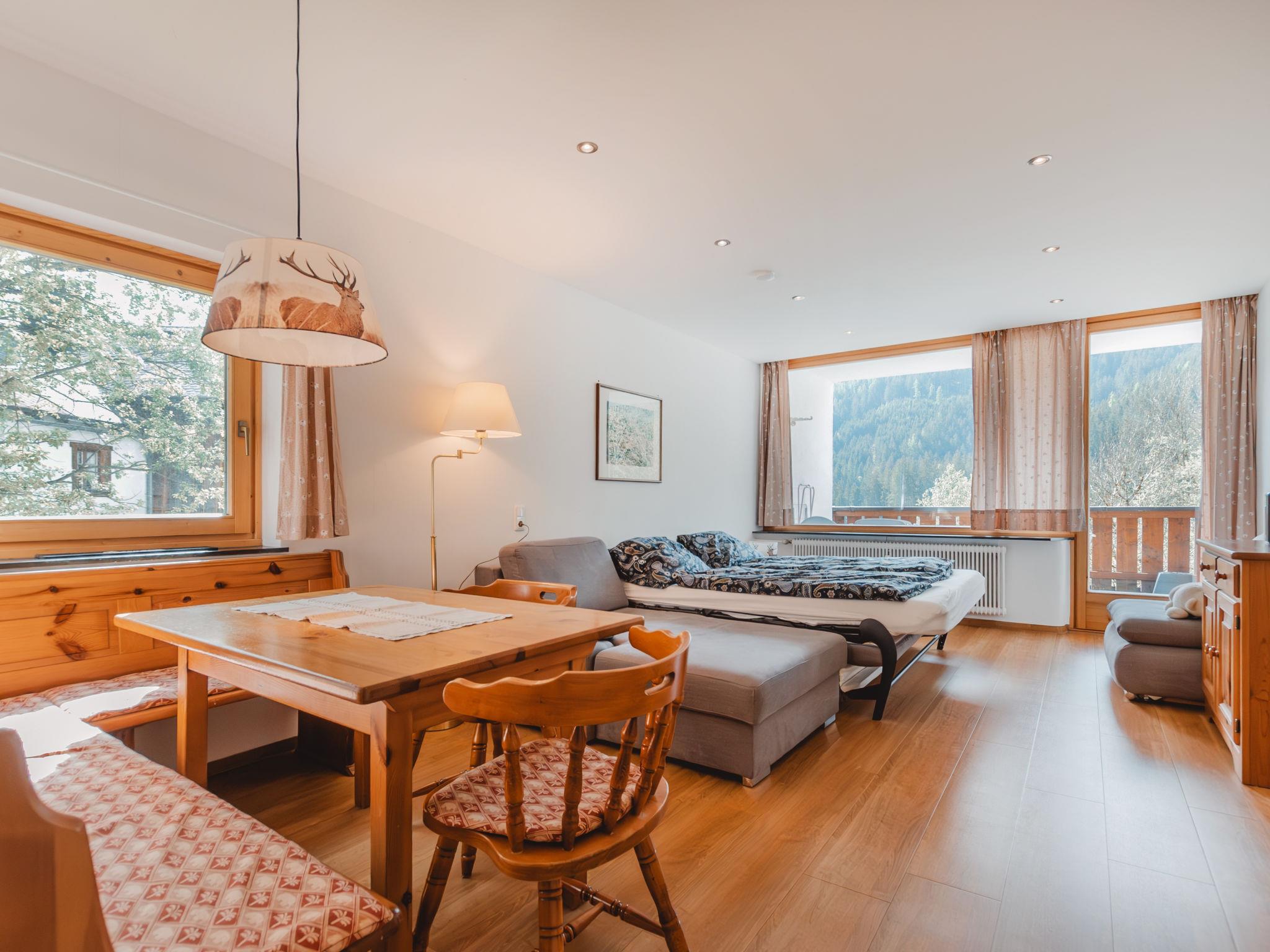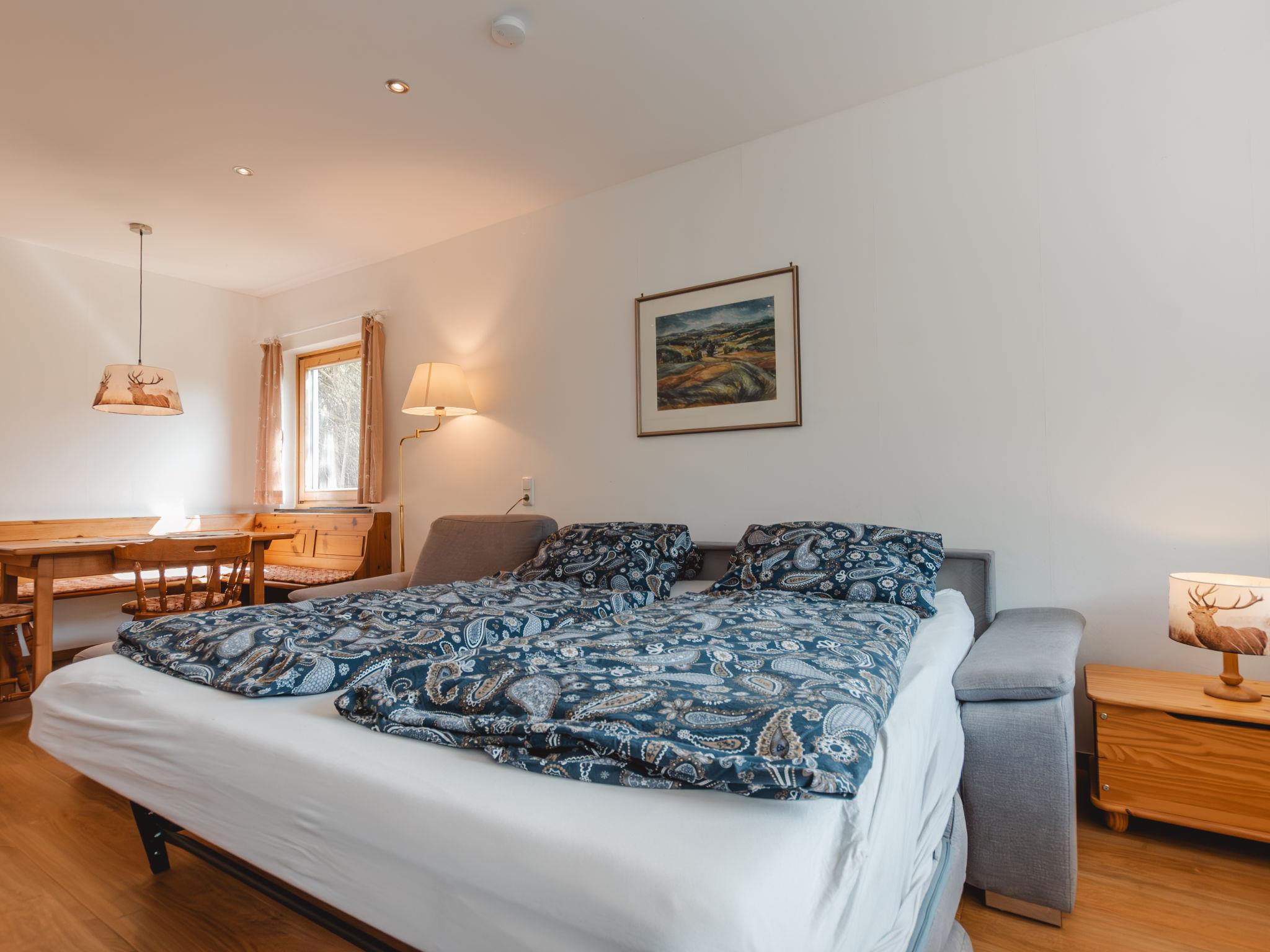 "Holger", 1-room apartment 40 m2 on 1st floor. Renovated in 2018, cosy furnishings: entrance hall. Living/sleeping room with 1 double sofabed (168 cm, length 195 cm), 1 x 2 bunk beds (140 cm, length 200 cm), satellite TV (flat screen). Exit to the balcony. Small kitchen (2 hot plates, oven, toaster, microwave, grill, electric coffee machine) with dining nook. Shower/WC. Gas heating. Terrace 10 m2, south facing position. Beautiful panoramic view of the mountains, the valley and the ski run. Facilities: Internet (WiFi, free). Parking, garage at the house. Please note: suitable for families. Non-smokers only. Smoke alarm, fire extinguisher. Partially covered south-facing terrace. The apartment is at the end of the corridor, so it is in a quiet location. The ski slope is about 50 meters from the house, therefore very relaxing for ski-in/ski-out guests. The shower door cannot be opened completely because of the washing machine. 50628-001136-2020