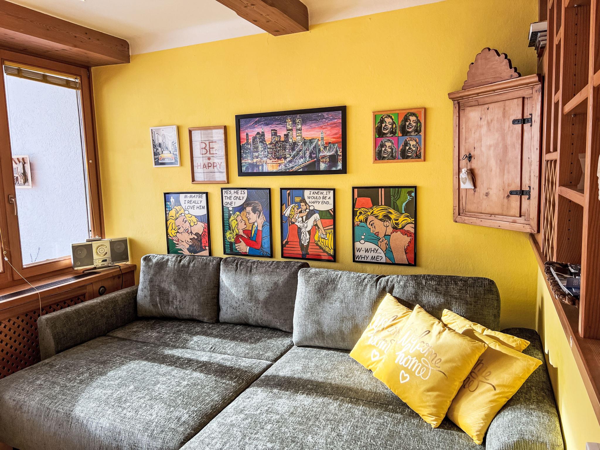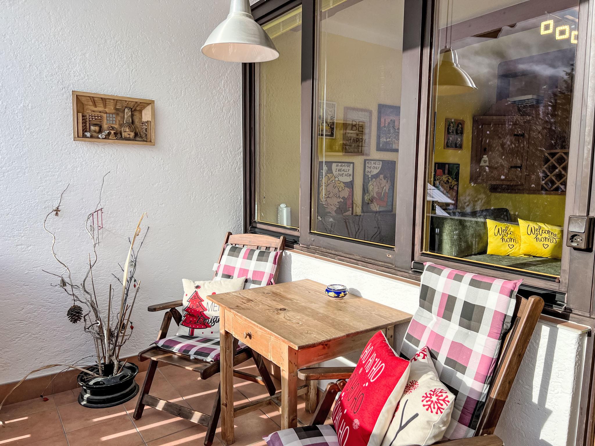 "Sunshine Top 12", 1-room apartment 35 m2 on 2nd floor. Comfortable and cosy furnishings: entrance hall. Living/sleeping room with 1 sofabed, 1 double bed, dining table and cable TV (flat screen), radio and DVD. Exit to the balcony. Small kitchen (dishwasher, 2 ceramic glass hob hotplates, microwave, electric coffee machine). Shower/WC. Heating. Balcony 7 m2. Balcony furniture. Marvellous view of the mountains and the ski run. Facilities: Internet (WiFi, free). Please note: non-smokers only. Smoke alarm, no lift. Ski-in ski-out: right on the slopes! The coffee machine is compatible with Nespresso capsules. 50628-001696-2025