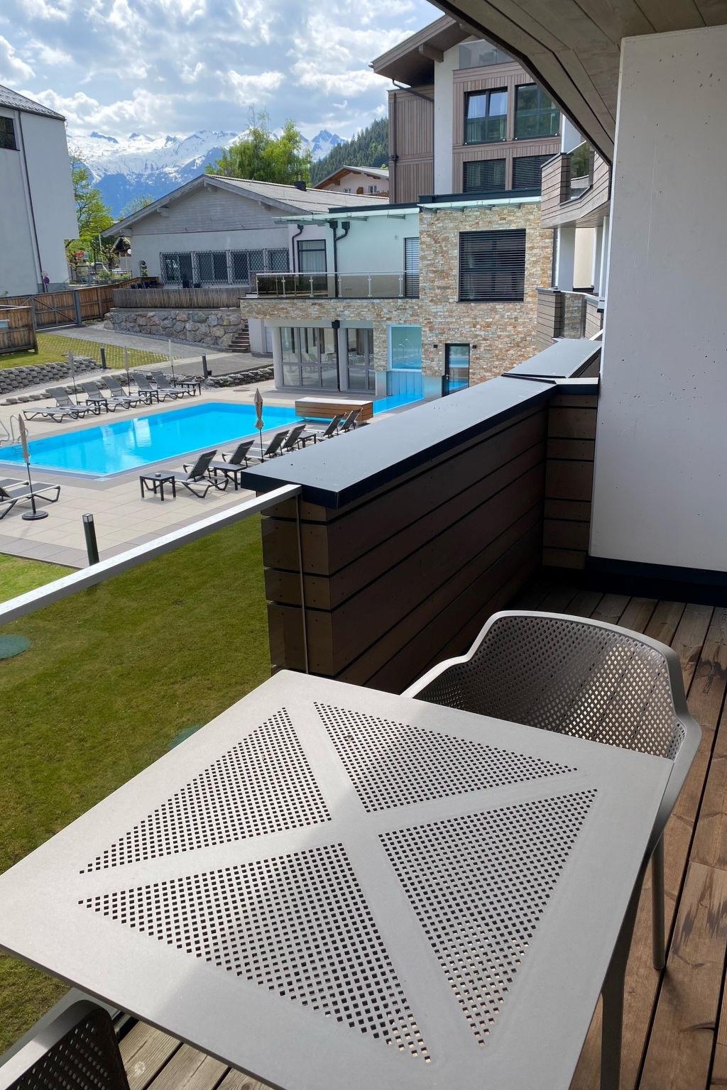 Zell am See: Apartment block. 1 km from the lake, 350 m from the skiing area. For shared use: property (fenced), swimming pool heated (seasonal availability: 15.Jun. - 15.Sep.). Private: garden. In the house: spa area, lift. Supermarket 100 m, restaurant 0 m, café 400 m, bus stop 100 m, railway station 2 km. Golf course 2 km. The owner does not accept any youth groups.