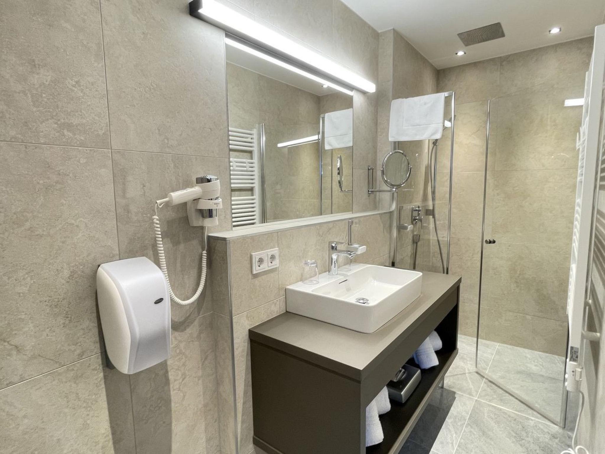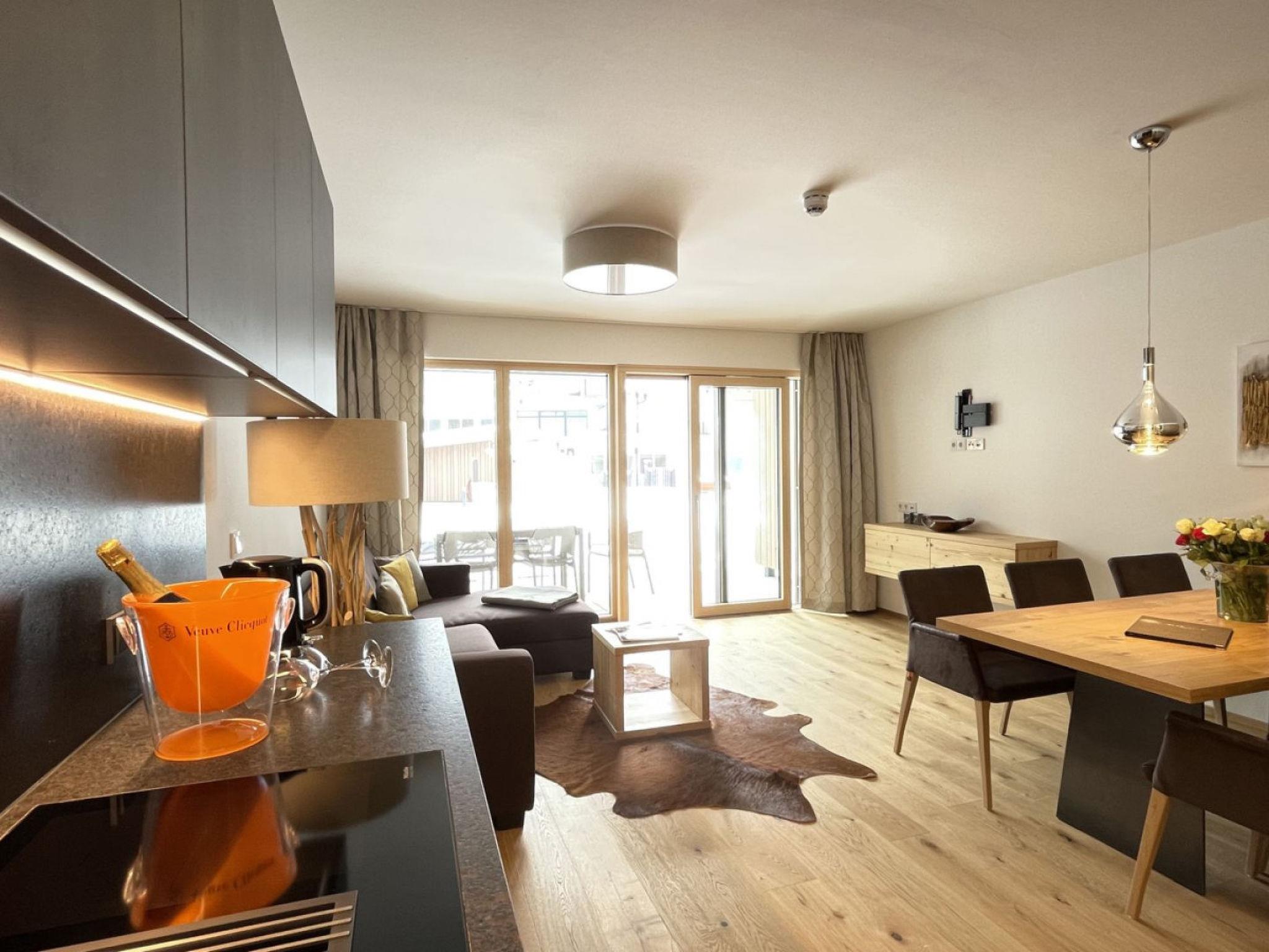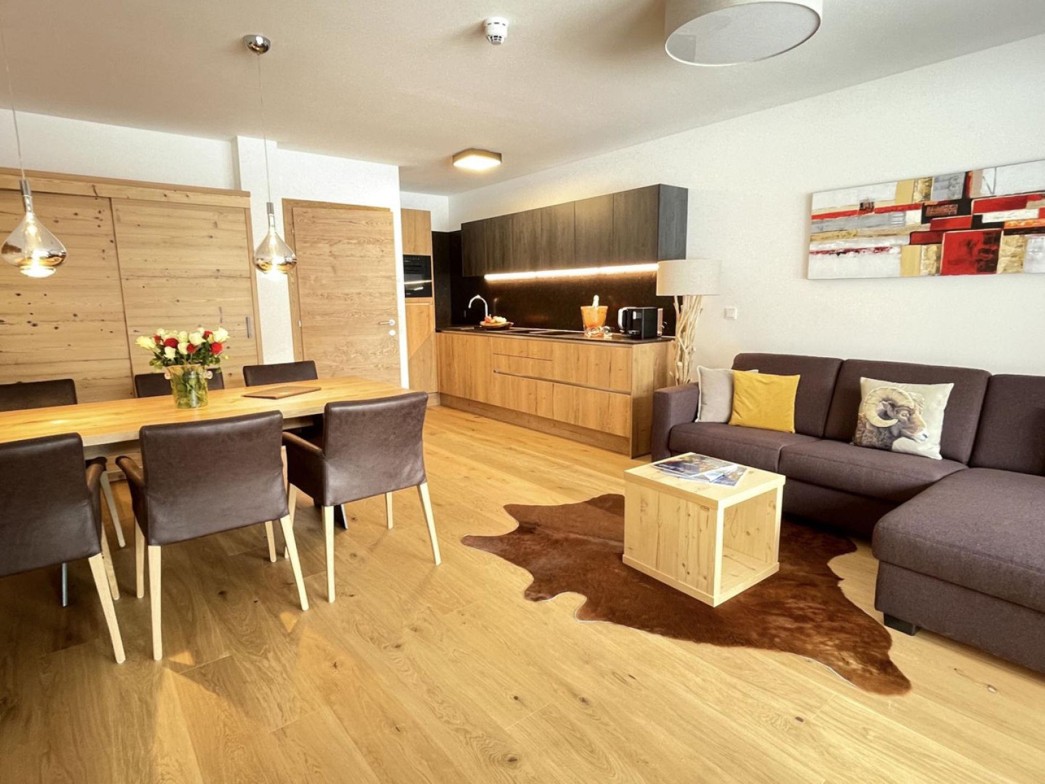 "3_Spa - Poolside Superior 726", 3-room apartment 110 m2. Object suitable for 6 adults. Living room with 1 sofabed and TV. 1 room with 1 french bed and TV. 1 room with 1 french bed and TV. Open kitchen (oven, dishwasher, 4 induction hot plates, toaster, kettle, microwave, freezer, electric coffee machine). 2 showers/WC. Balcony, terrace 12 m2. View of the mountains. Facilities: iron, hair dryer. Internet (WiFi, free). Parking (2 cars). Please note: non-smokers only. 2 pets/ dogs allowed. Smoke alarm.