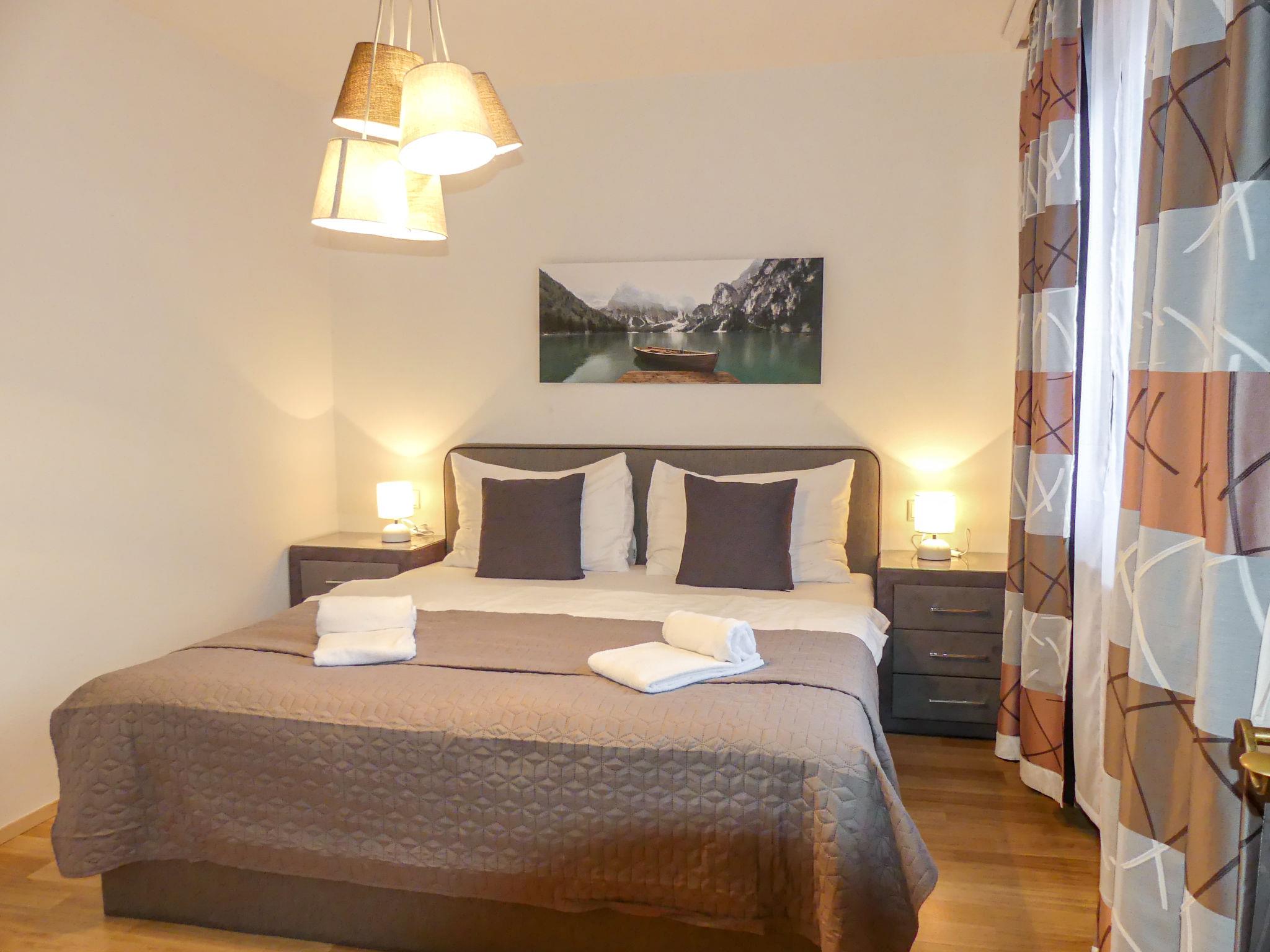 "Siegl", 3-room apartment 50 m2 on 3rd floor. Tasteful and cosy furnishings: entrance hall. Living room with 1 double sofabed, dining nook, satellite TV and flat screen. Exit to the balcony. 1 room with 2 beds. 1 double bedroom. Kitchenette (oven, dishwasher, 4 ceramic glass hob hotplates, toaster, kettle, microwave, electric coffee machine). Shower/WC. Parquet floors, natural stone floors. Large balcony 25 m2. Balcony furniture. Facilities: safe, iron, hair dryer. Internet (WiFi, free). Please note: non-smokers only. 50628-001529-2021
