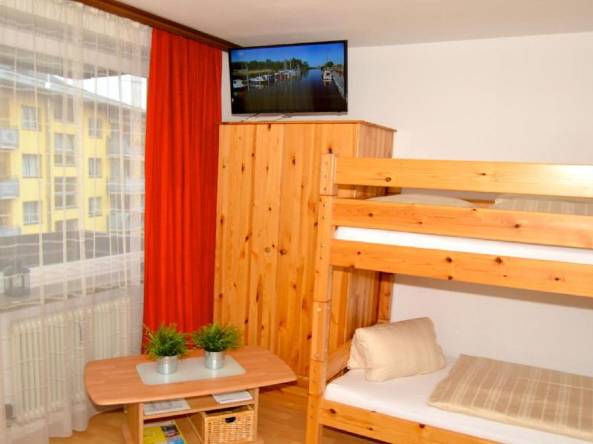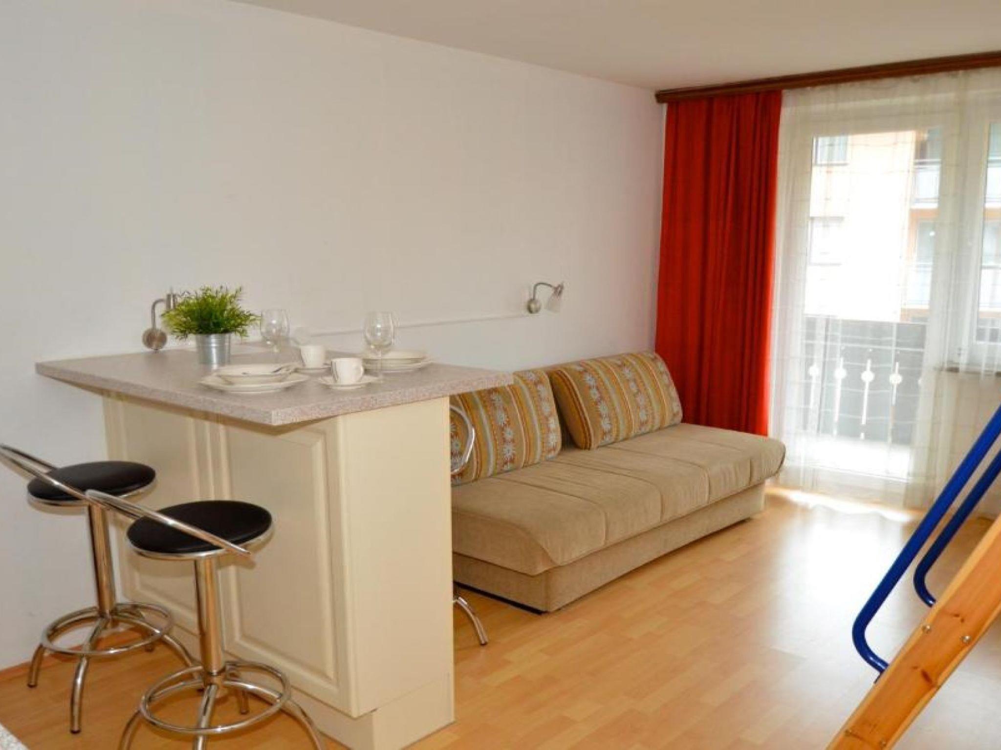"Leif", 1-room studio on 2nd floor. Object suitable for 2 adults + 2 children. Simple and practical furnishings: living/sleeping room with 1 double sofabed and 1 x 2 bunk beds, TV (flat screen). Exit to the balcony. Kitchenette (2 ceramic glass hob hotplates, toaster, kettle, microwave, electric coffee machine) with dining table. Shower/WC. Parquet floors, natural stone floors. Balcony 6 m2. Balcony furniture. Facilities: iron, hair dryer. Internet (WiFi, free). Suitable for families. Television only possible via connection through own PC. 50628-001450-2019
