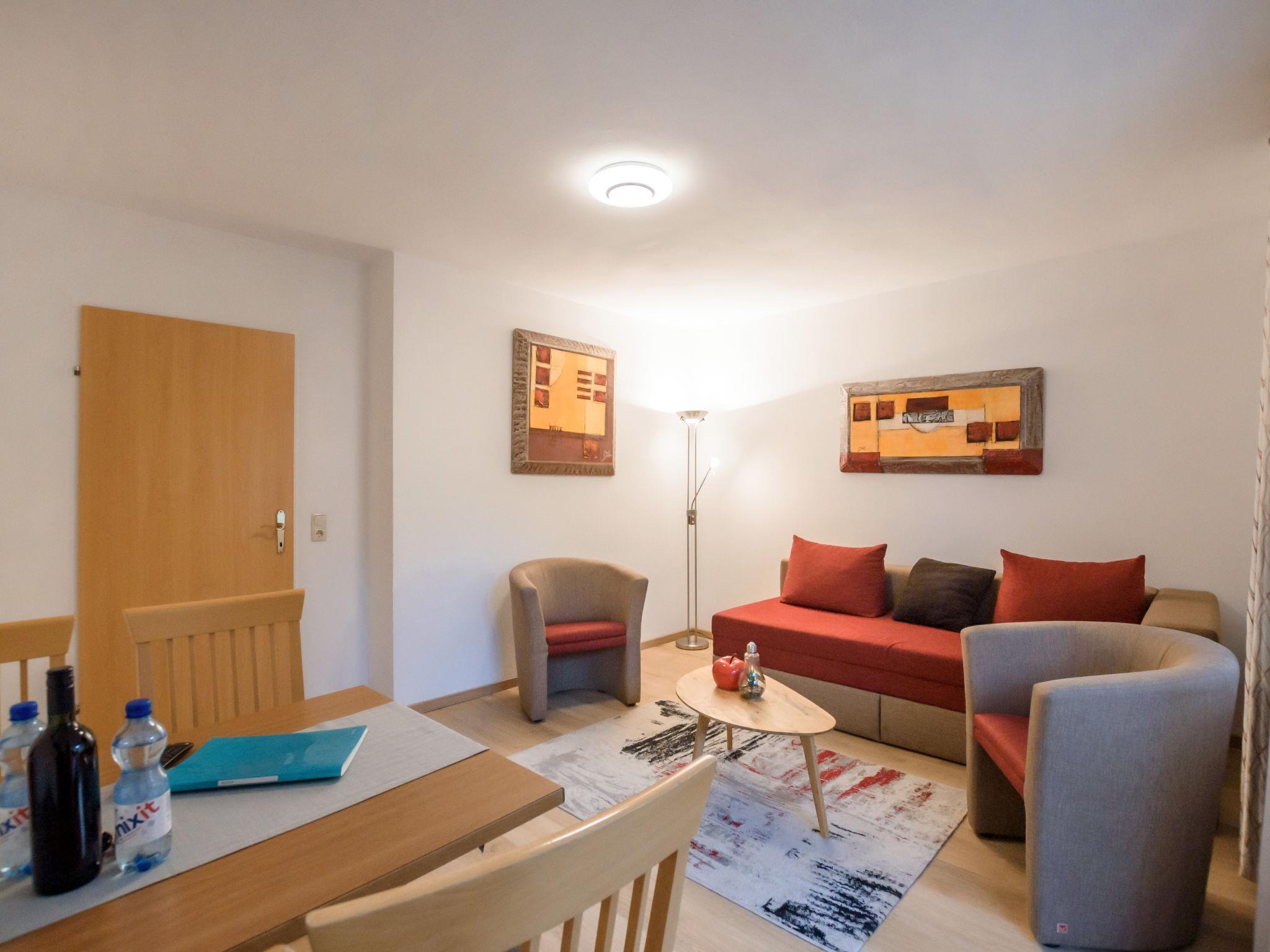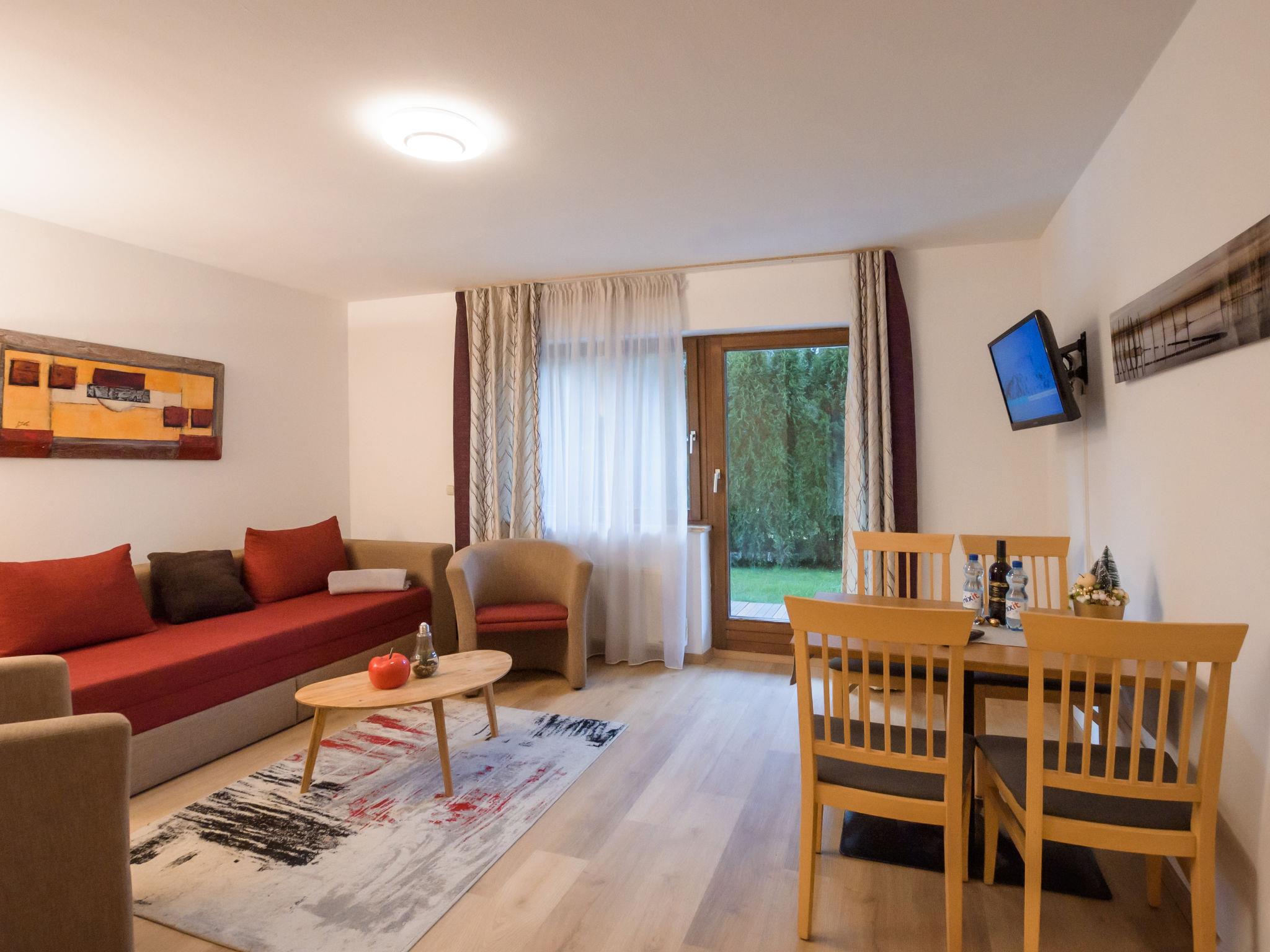 "Alpenchalet", 2-room apartment 50 m2, on the ground floor. Renovated in 2019, cosy furnishings: living/sleeping room with 1 double sofabed, dining table and cable TV. Exit to the terrace. 1 room with 1 double bed (160 cm). Kitchen (dishwasher, 4 ceramic glass hob hotplates, toaster, kettle, microwave, electric coffee machine). Shower/WC. Parquet floors. Terrace. Terrace furniture. Facilities: children's high chair, baby cot. Internet (WiFi, free). Parking (1 car). Please note: 1 pet/ dog allowed. Fire extinguisher. 50628-001024-2020