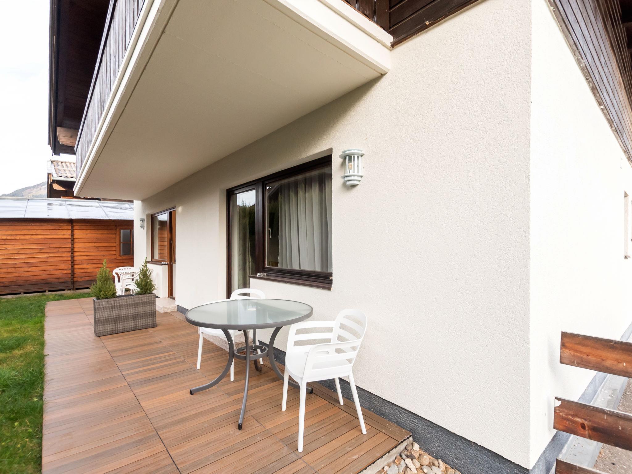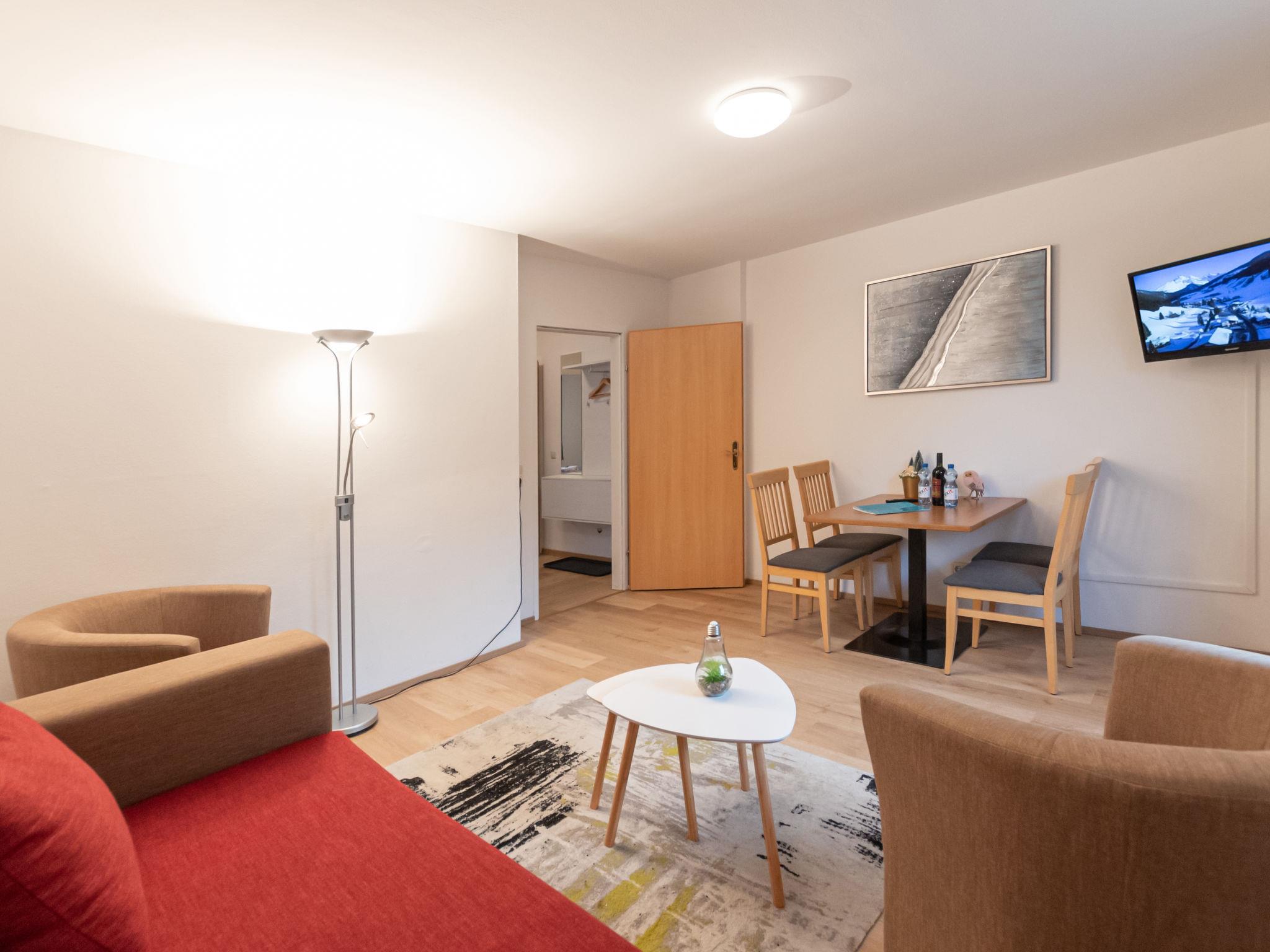 "Alpenchalets", 2-room apartment 50 m2, on the ground floor. Renovated in 2019, cosy furnishings: living/sleeping room with 1 double sofabed, dining table and cable TV. Exit to the terrace. 1 room with 1 double bed (160 cm). Kitchen (dishwasher, 4 ceramic glass hob hotplates, toaster, kettle, microwave, electric coffee machine). Shower/WC. Electric heating. Parquet floors. Terrace. Terrace furniture. Facilities: children's high chair, baby cot. Internet (WiFi, free). Parking (1 car). 1 pet/ dog allowed. 50628-001024-2020