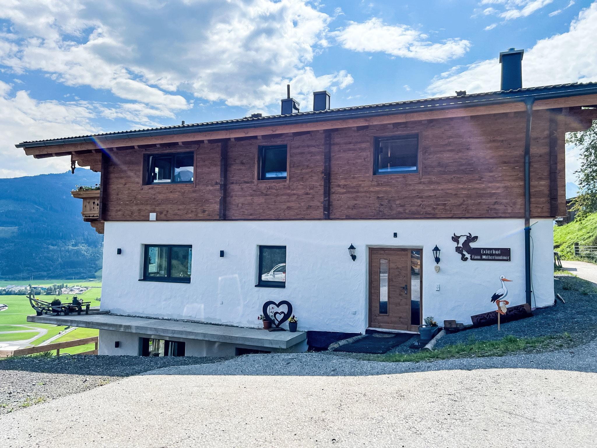 Modern, cosy house "Exlerhof". In the district of Bruckberg 6 km from the centre of Zell am See, in a quiet, elevated position on a slope, 5 km from the lake, 100 m from the skiing area. In the house: central heating system. In Winter: please take snow chains. Parking at the house. Shop 4 km, supermarket 1.8 km, restaurant 4 km, bus stop "Zellermoos Bhf" 2.5 km, railway station "Zellermoos" 2.5 km, bathing lake "Zeller See" 5 km. Walking paths from the house, slopes 100 m. Well-known ski regions can easily be reached: Areitbahn 100 m, Schmittenhöhe 8 km, Kitzsteinhorn 12.6 km. Well-known lakes can easily be reached: Zeller See 6 km. Hiking paths: Bruckberg. Please note: In case of good snow conditions, the house is accessible on skis. The owner lives in the same residence. Zell am See - Kaprun Summer Card included!