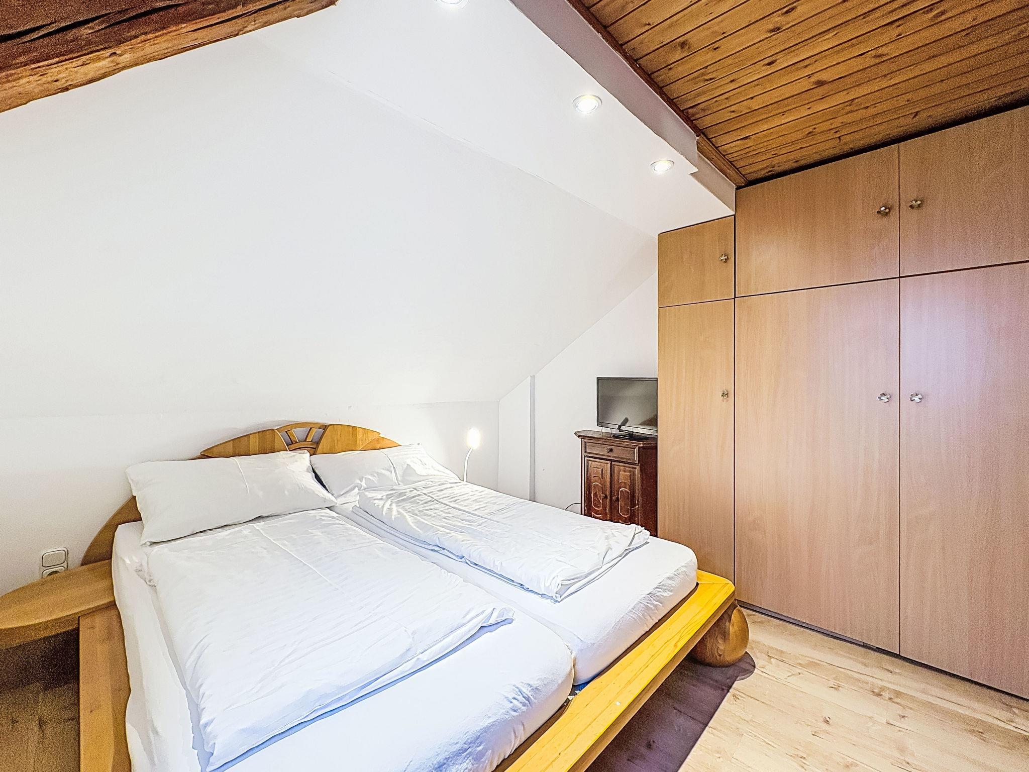 "Ebenberghof mit Seeblick", 2-room apartment 40 m2, on the top floor. Cosy furnishings: living room with sloping ceilings with Scandinavian wood stove and flat screen. Exit to the balcony. 1 double bedroom. With sloping ceilings kitchen (dishwasher, 4 ceramic glass hob hotplates, toaster, kettle, microwave, electric coffee machine) with dining table. Shower/WC. Parquet floors. Balcony. Balcony furniture. Panoramic view of the lake and the mountains. 50628-001671-2025