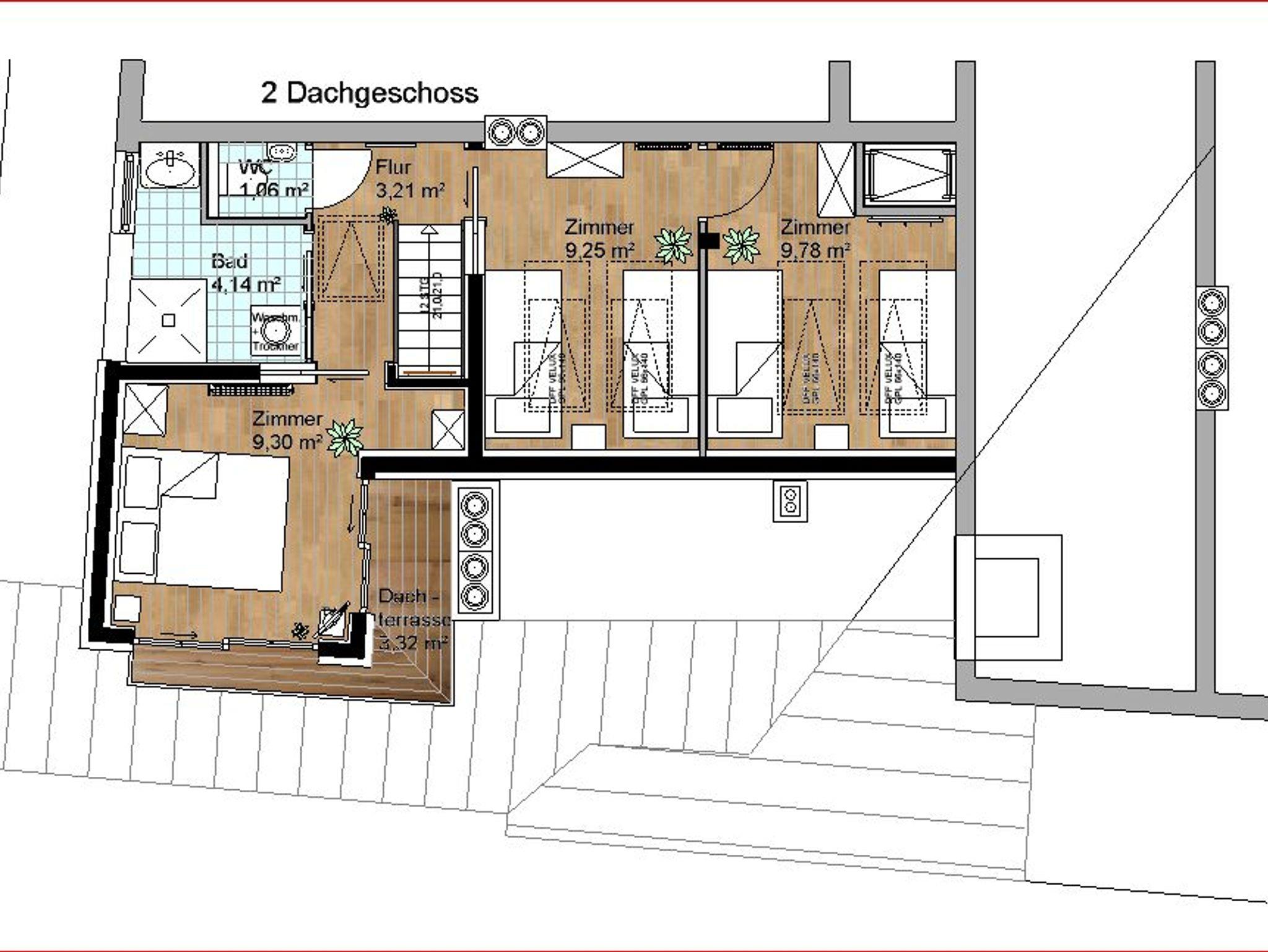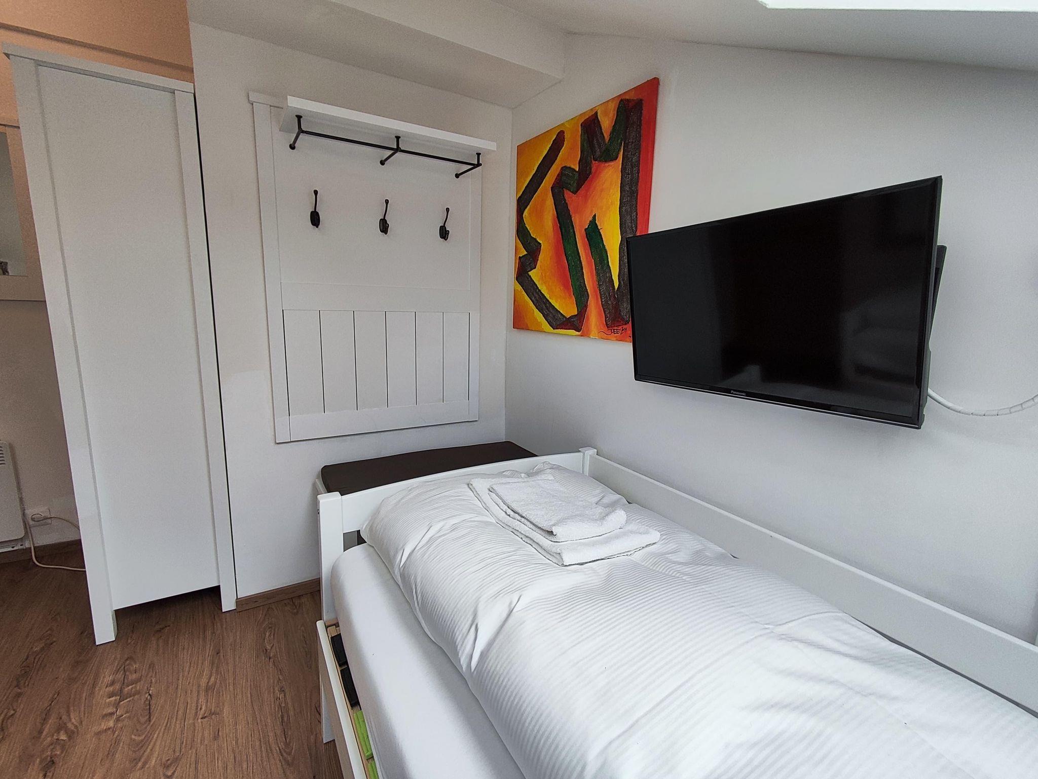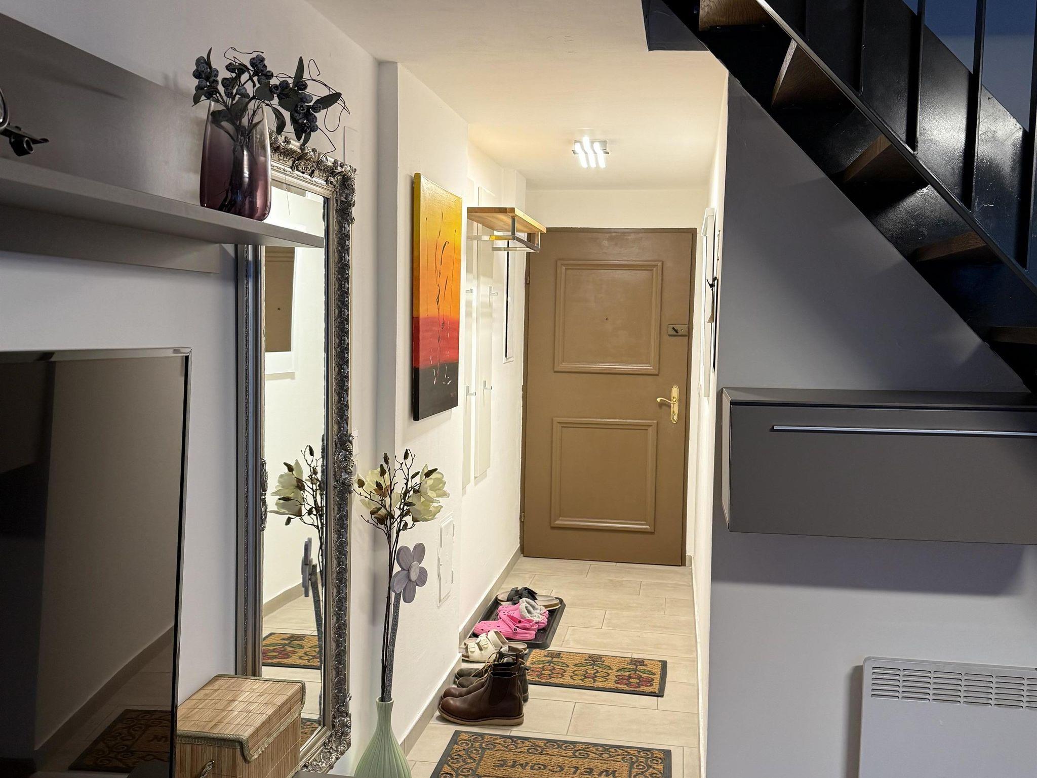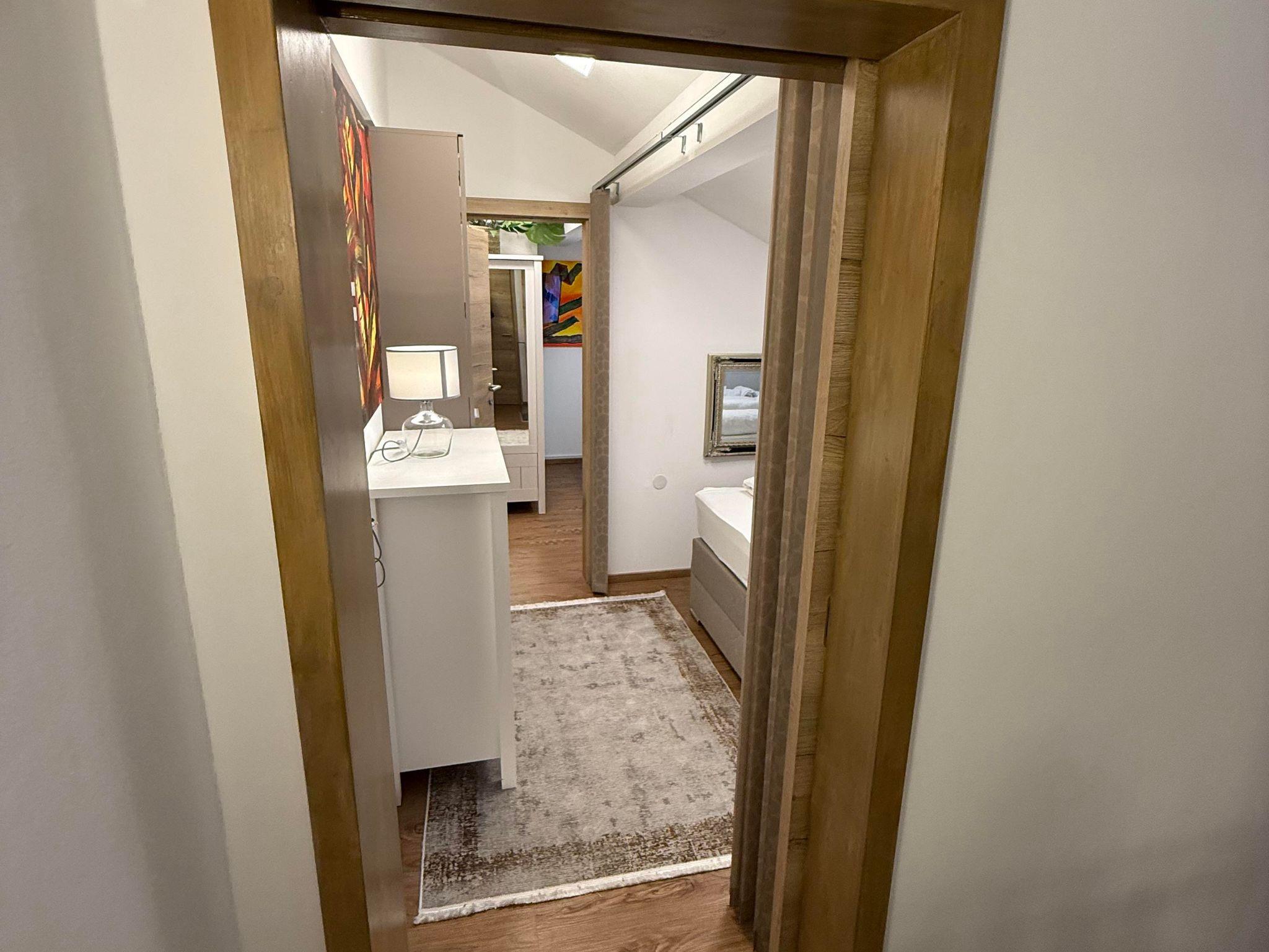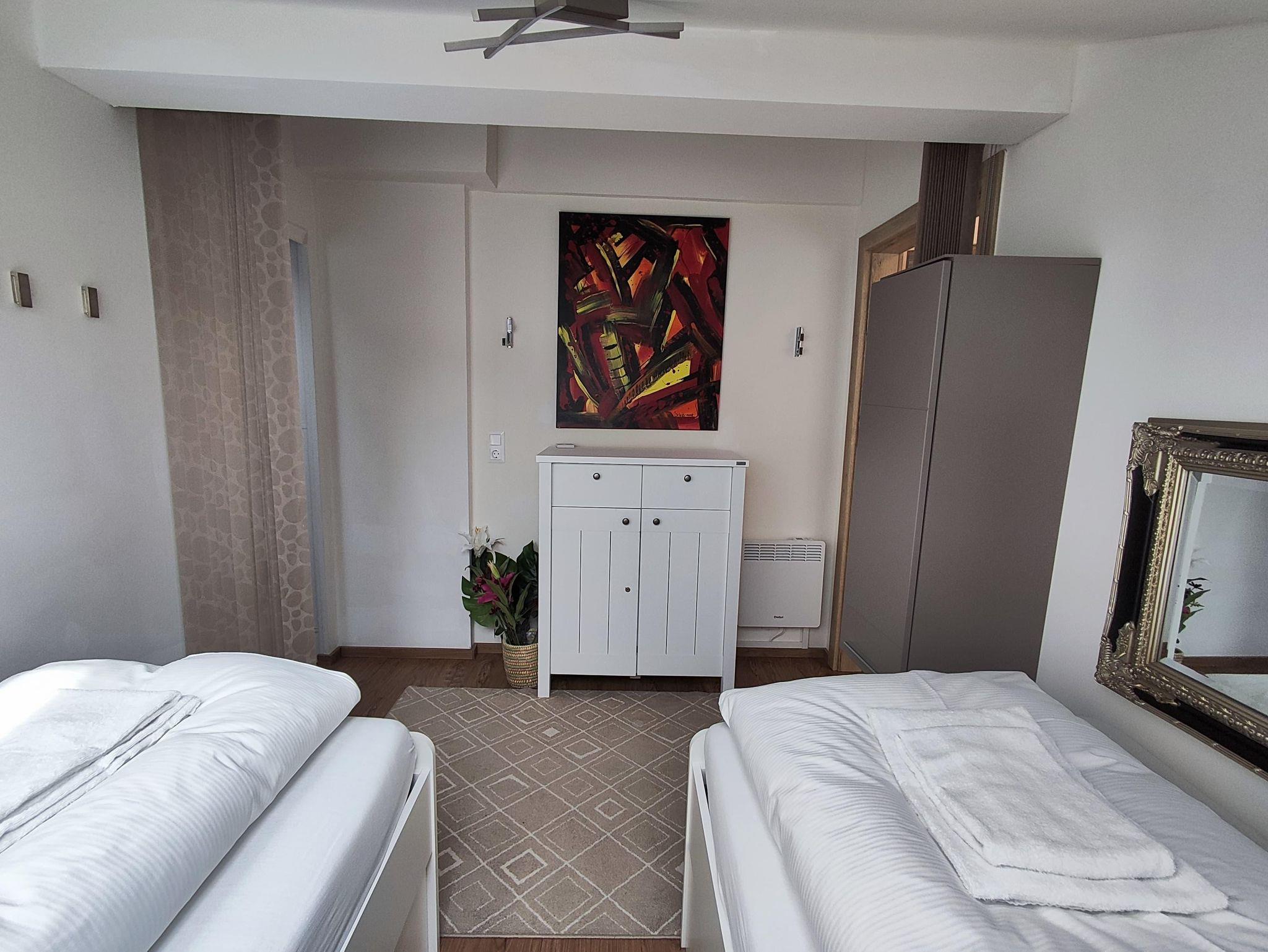 Das Penthouse-Apartment mit Bergpanorama bietet komfortable Übernachtungsmöglichkeiten. Diese Maisonette-Wohnung verfügt über drei Schlafzimmer, eine Wohnküche, 3 Flachbildfernseher. Die Wohnung verfügt über eine gut ausgestattete Küchenzeile. Das dritte Schlafzimmer ist über das zweite Schlafzimmer zugänglich. Im Badezimmer finden Sie eine Dusche, eine Waschmaschine und einen Trockner mit 50-Cent-Münzeinwurfsgerät. Von den zwei Balkonen mit einer Größe von 3,2 m² und 6,7 m² genießen Sie eine 270-Grad-Aussicht. Das Haus hat keinen Aufzug.