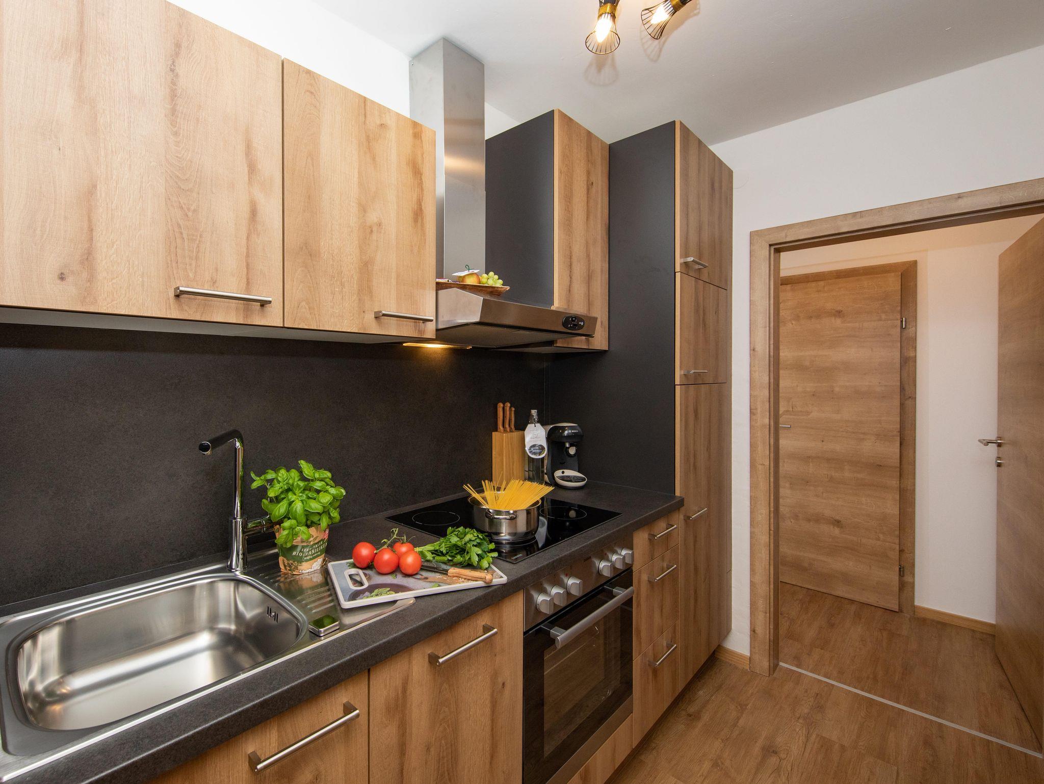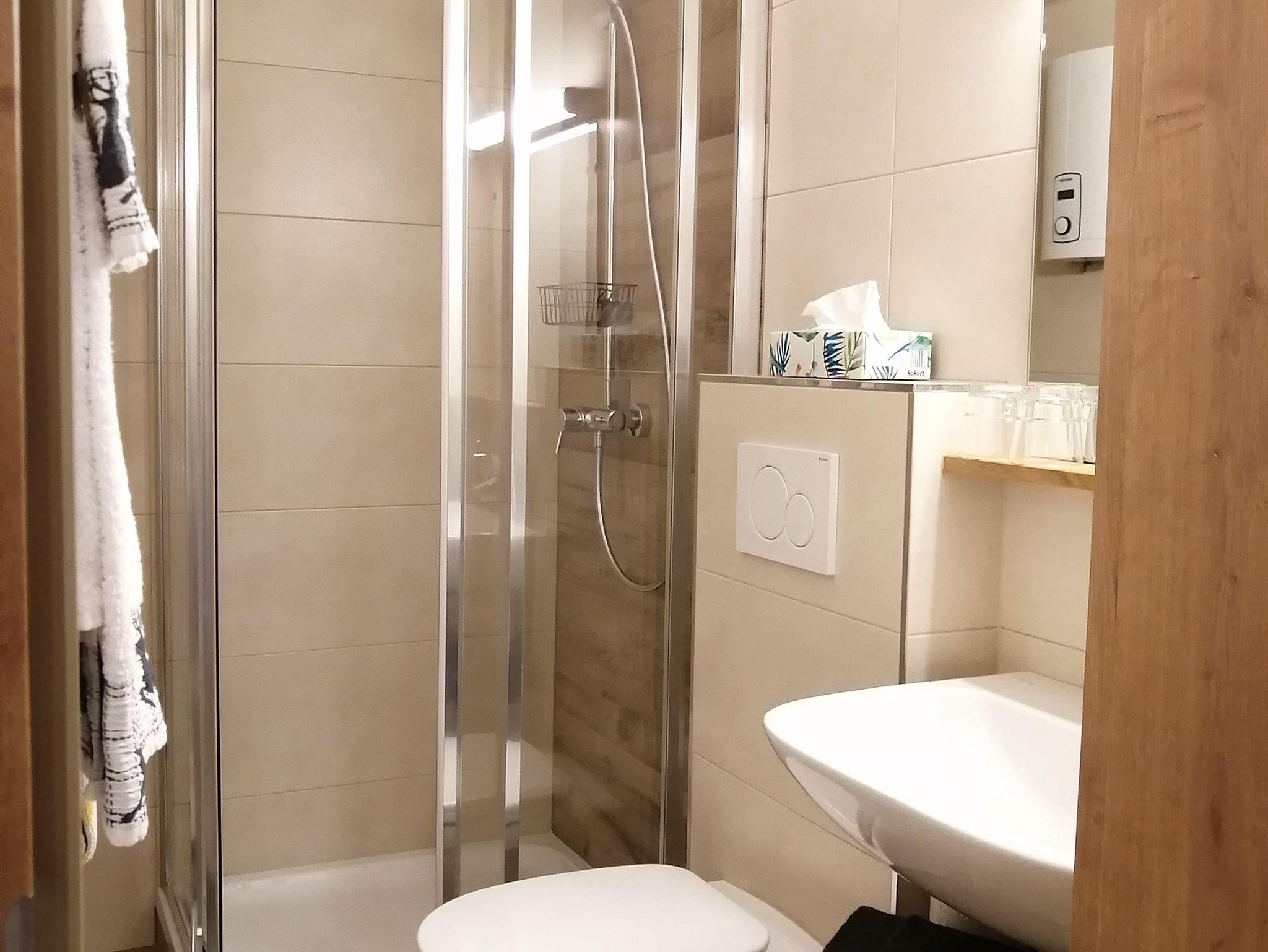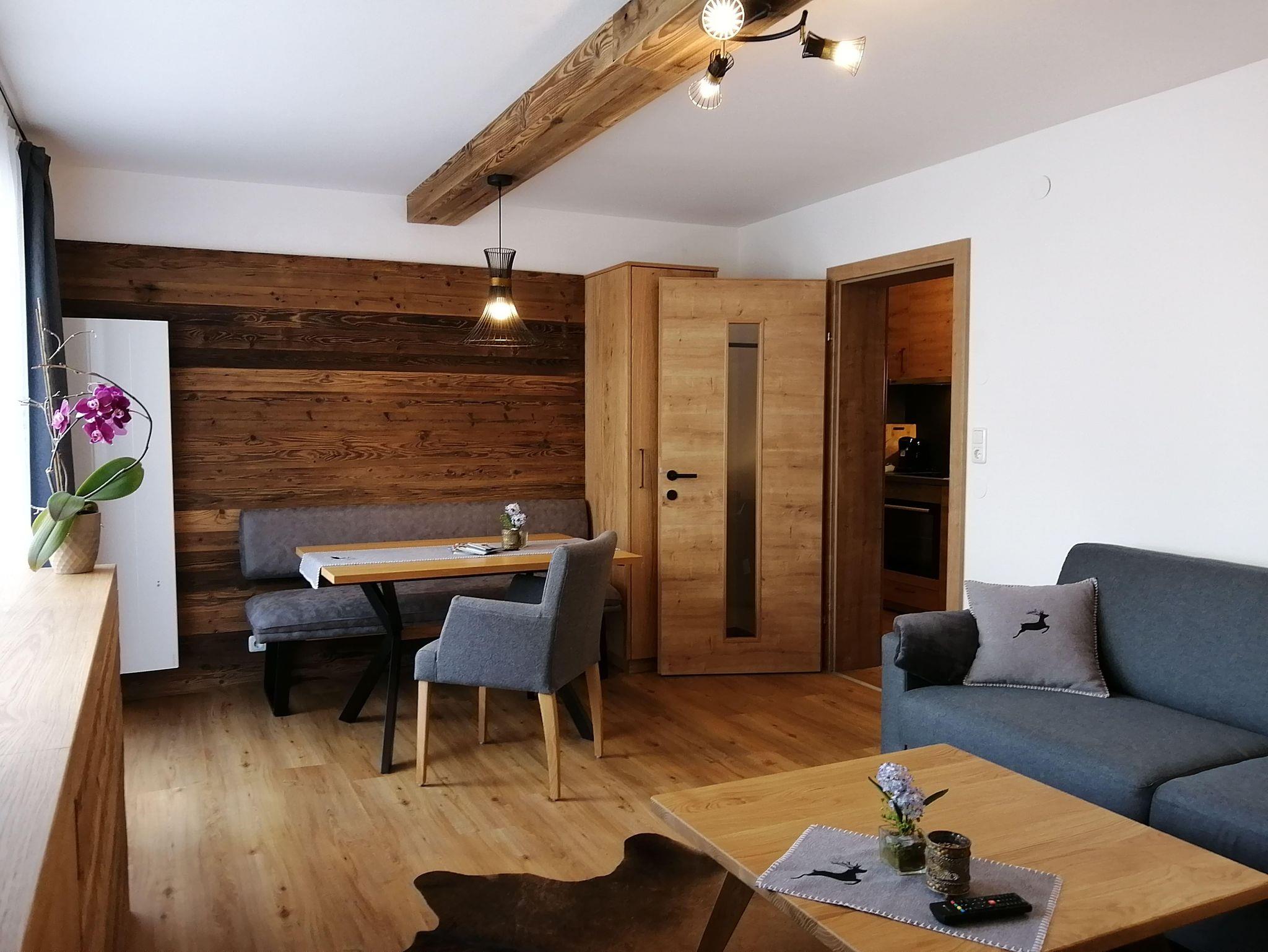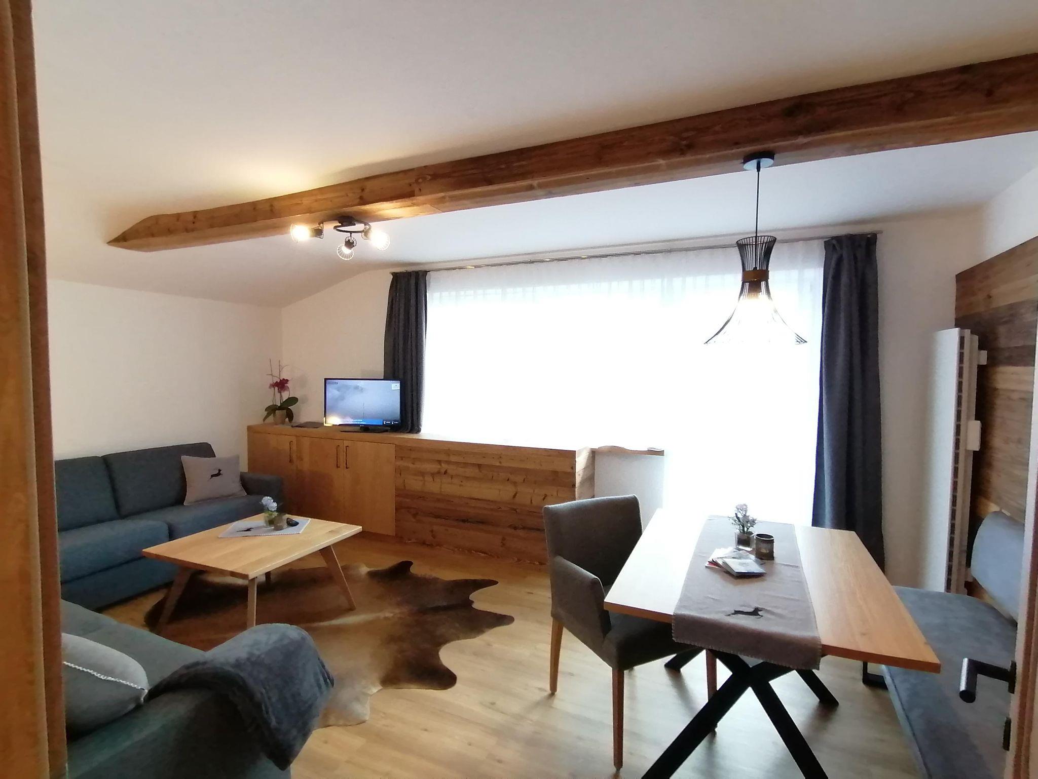 Die Ferienwohnung Top 4 mit Balkon befindet sich im ersten Stock des Nebengebäudes, direkt hinter dem Hauptgebäude, und bietet auf 38 m² Platz für bis zu 4 Personen. Sie verfügt über ein Schlafzimmer mit Doppelbett sowie eine Schlafcouch im Wohnbereich für 2 Personen. Das großzügige Wohnzimmer bietet eine Sitzecke, einen Essbereich, Flachbild-TV und eine voll ausgestattete Küche. Das Badezimmer ist mit Dusche und WC ausgestattet.