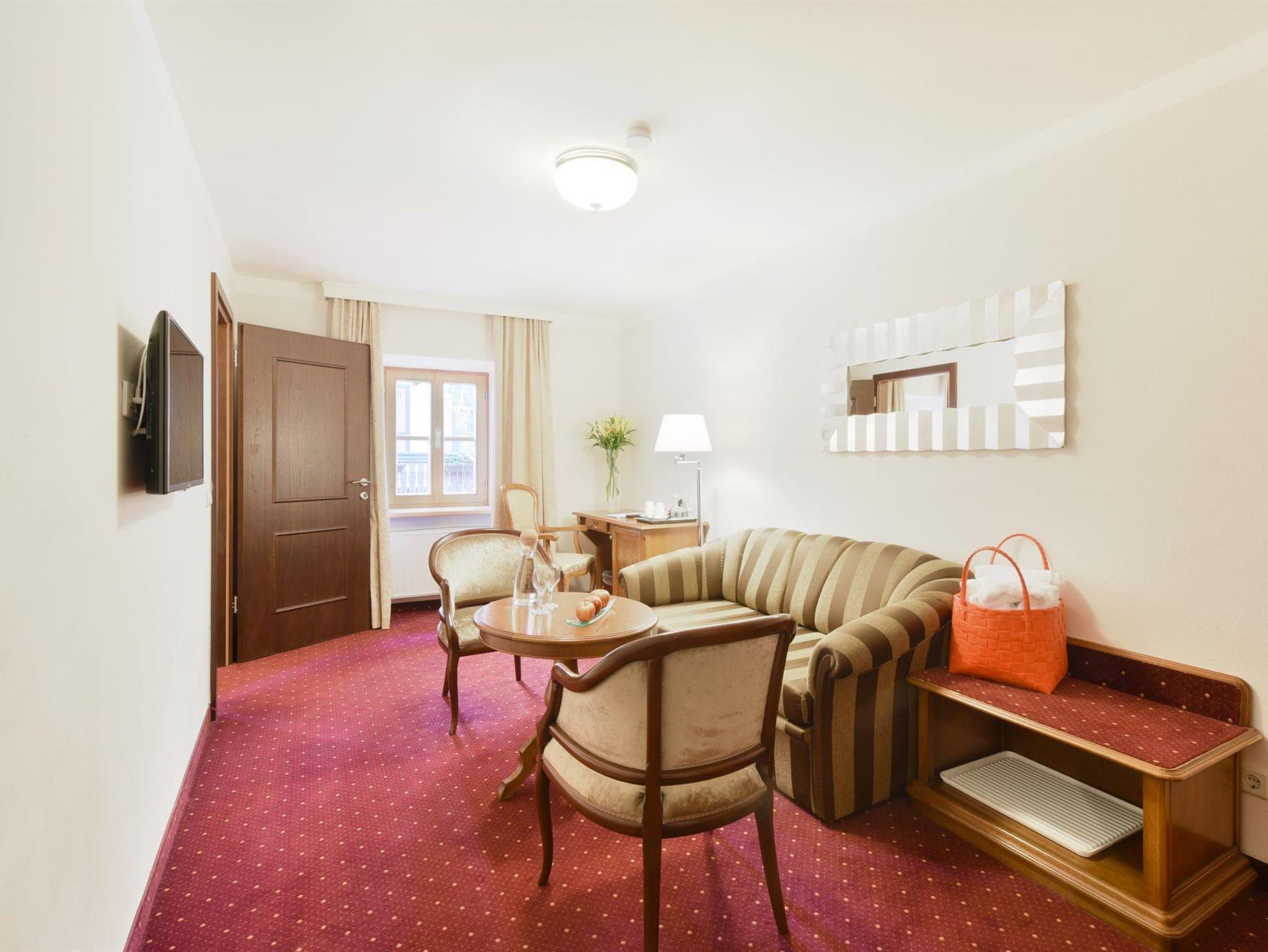 Wohlfühlen & Wohnen in der 2-Zimmer Nichtraucher Suite. Wohnraum mit gemütlicher Sitzecke.