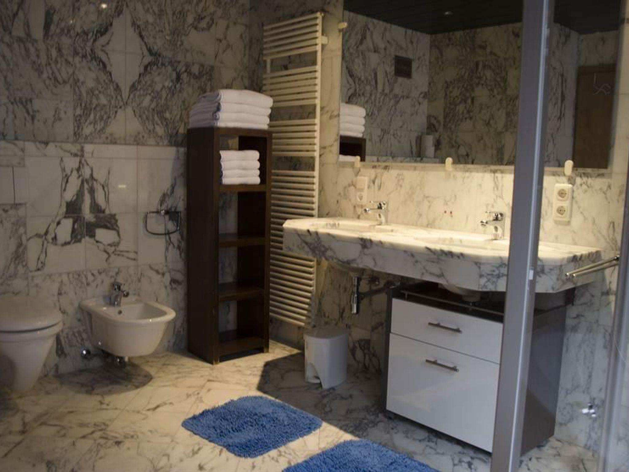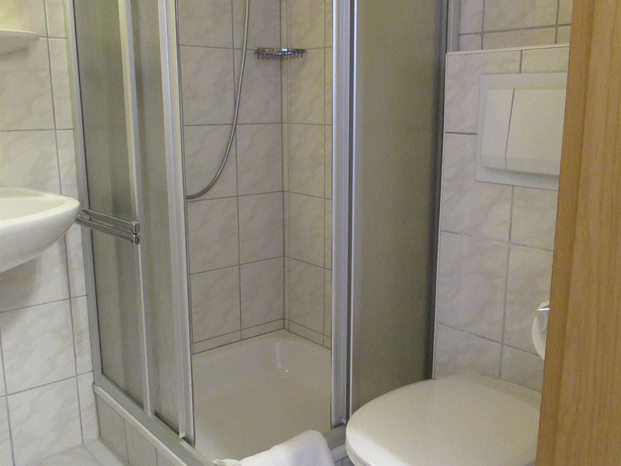 * 1 Bad mit Dusche und Badewanne, Waschbecken, Toilette und Haartrockner