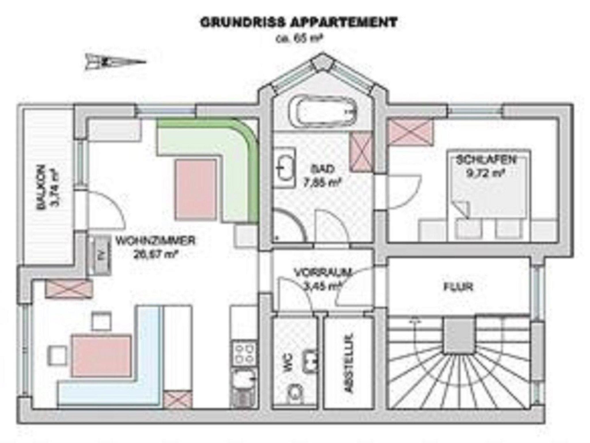 • 65m2 Wohnfläche mit komplett ausgestatteter Küche