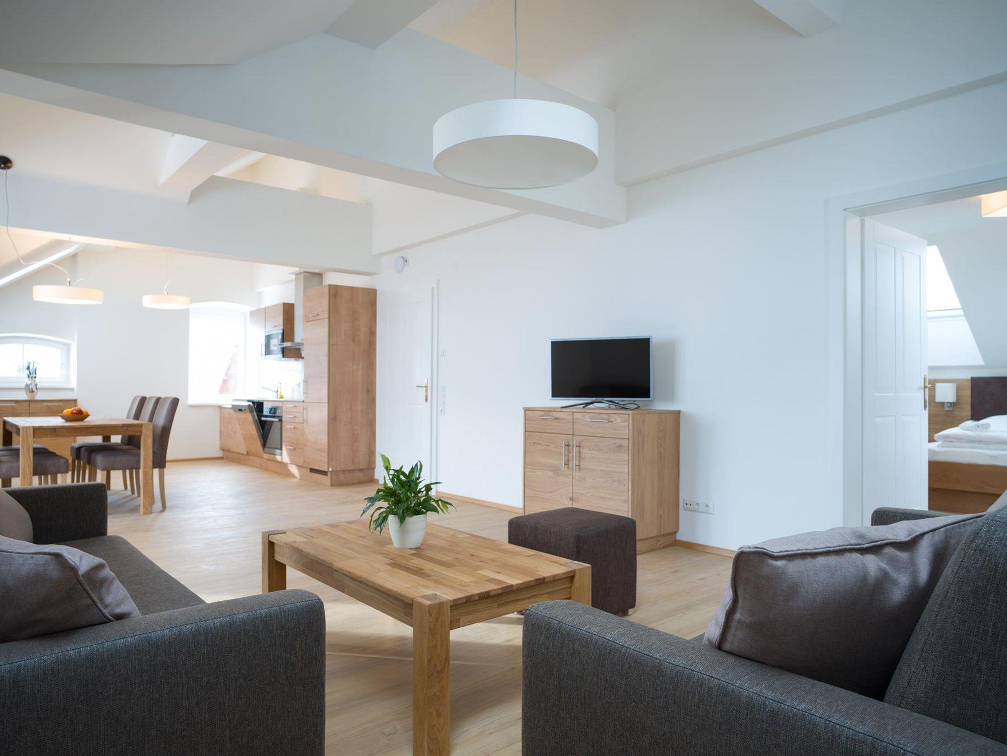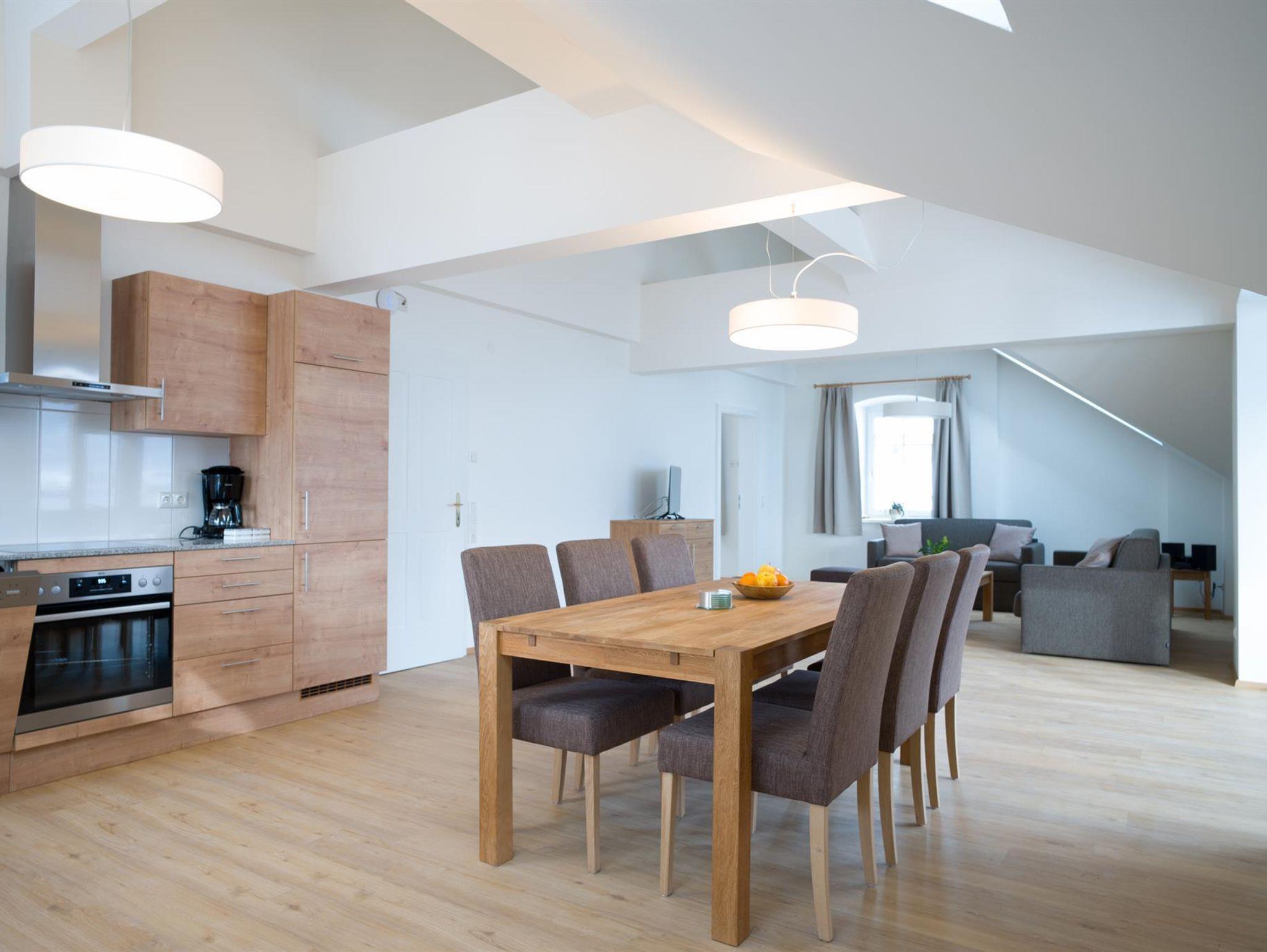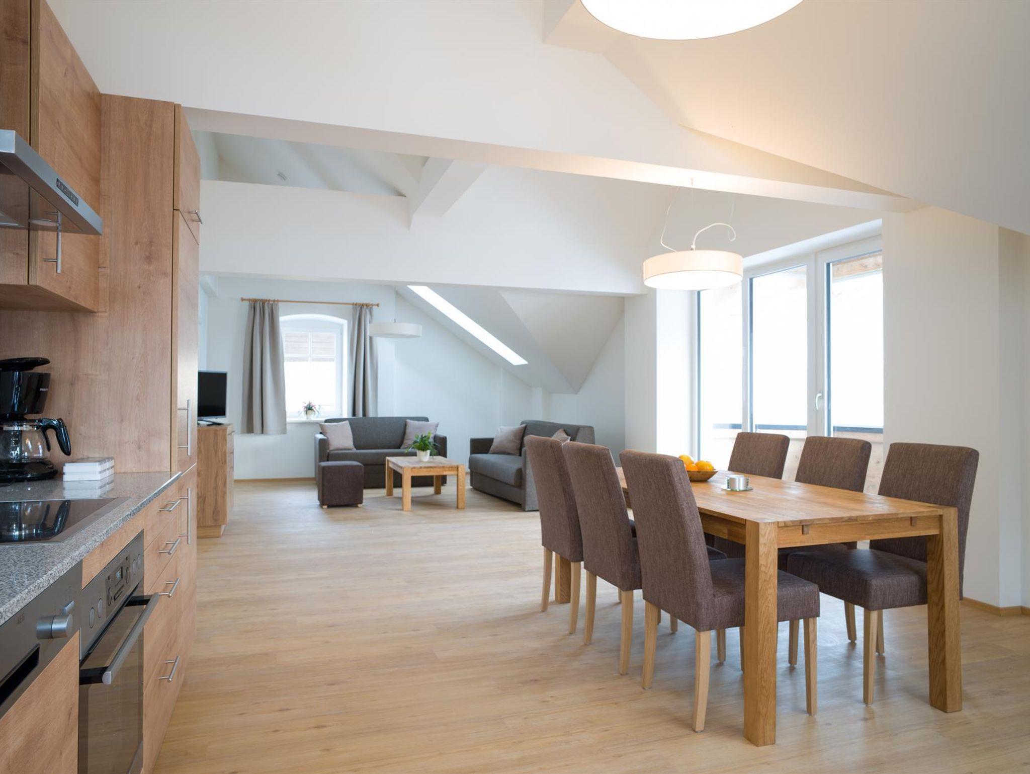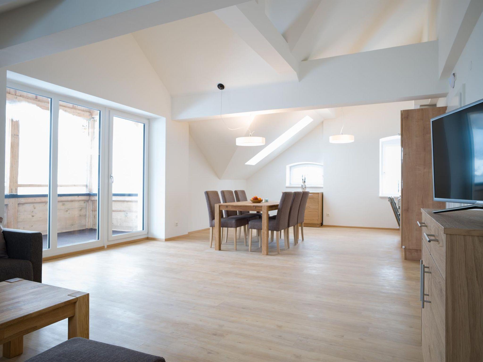 Julias Lake Views – Die Penthouse Suite an der „Water Front“ des Zeller Sees: Auf 95m² paaren sich Luxus und eine großzügige Raumeinteilung. Zwei Schlafzimmer mit je einem Doppelbett und ein großer Wohnbereich mit hoher Decke und Holzbalken vermitteln ein gemütliches Raumklima. Insgesamt finden in der Penthouse Suite bis zu 7 Personen Platz. Das Highlight: Der Wohnbereich mit angrenzender Terrasse auf den Zeller See. See- und Bergblick inklusive!