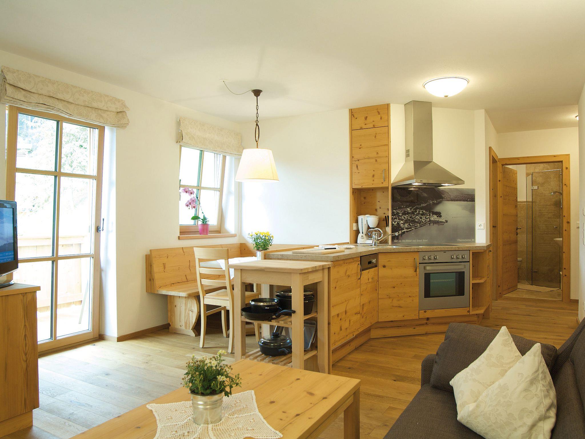 • Vollwertige Küche (Ceran-Kochfeld, Geschirrspüler, Teller, Besteck, usw.)