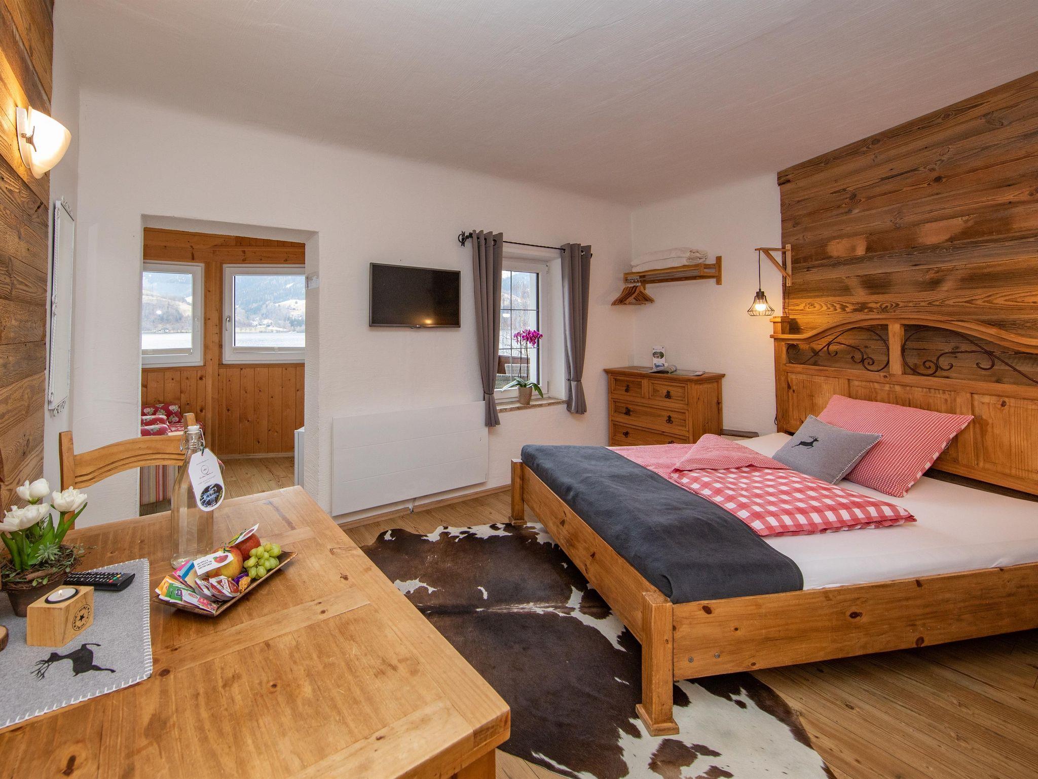 Das Doppelzimmer #4 mit Balkon und Seeblick im 2. Stock ist gemütlich und im Landhausstil eingerichtet. Auf 25?m² bietet es Platz für bis zu 2 Personen und verfügt über ein Doppelbett sowie einen Sitzbereich mit Flachbild-TV und WLAN. Das Badezimmer ist mit Dusche, WC, Haartrockner, Hand- und Badetüchern, Handseife und Toilettenpapier ausgestattet. Vom Balkon genießen Sie den Blick auf die umliegenden Berge und den Zeller See. Zusätzlich gibt es einen Wintergarten mit einem bequemen Sessel und eine Teeecke mit Wasserkocher, Gläsern und einem Mini-Kühlschrank.