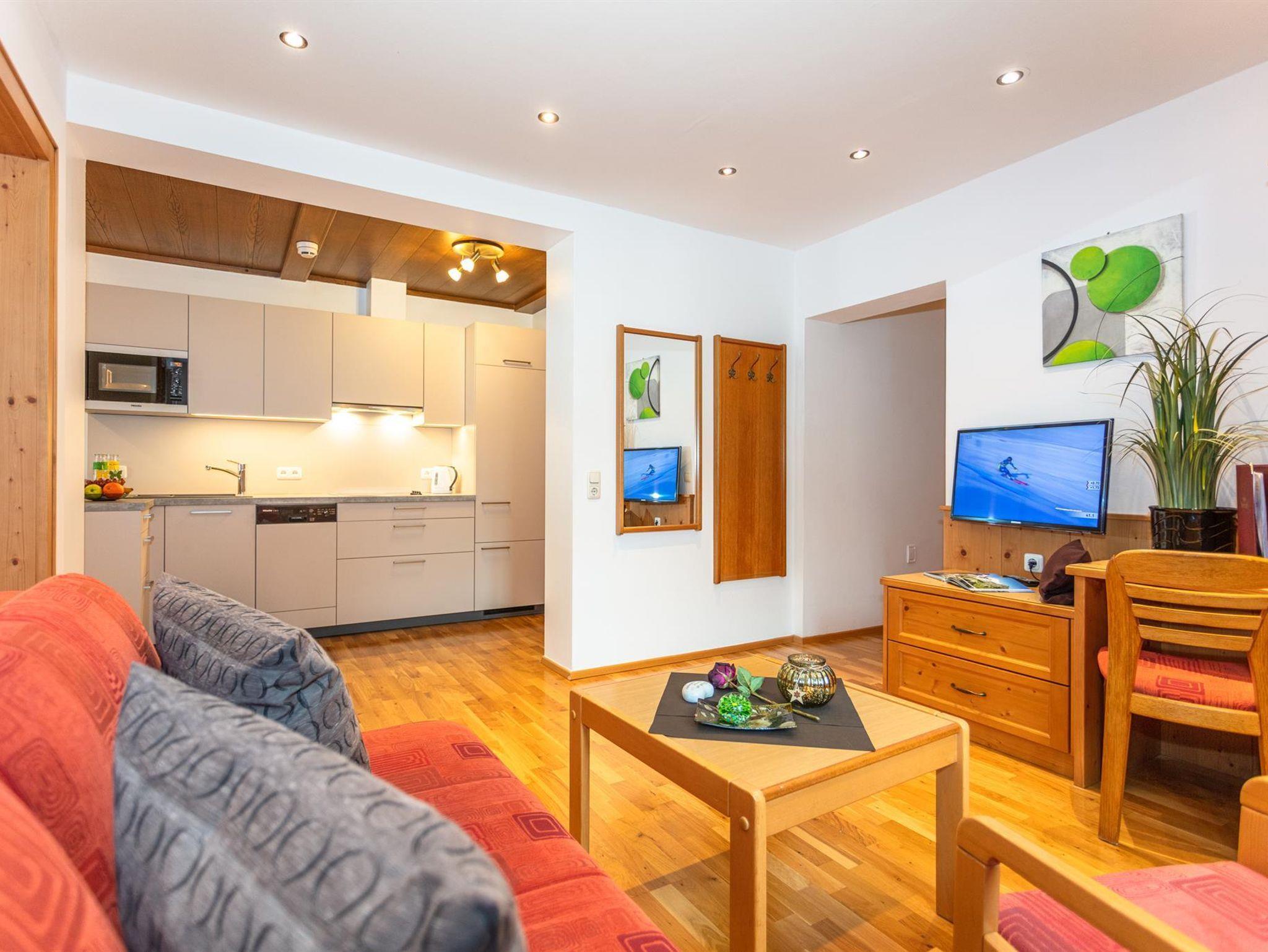 Apartment Sonnenalm: 2 getrennte Schlafräume / grosse Wohnküche / Kabel- TV im allen Räumen, Internet/ W-LAN, Dusche/WC, 2 Balkone, Wohnfläche 63 m², Bettwäsche sowie Dusch-und Handtücher inklusive, ohne Verpflegung, Brötchenservice möglich