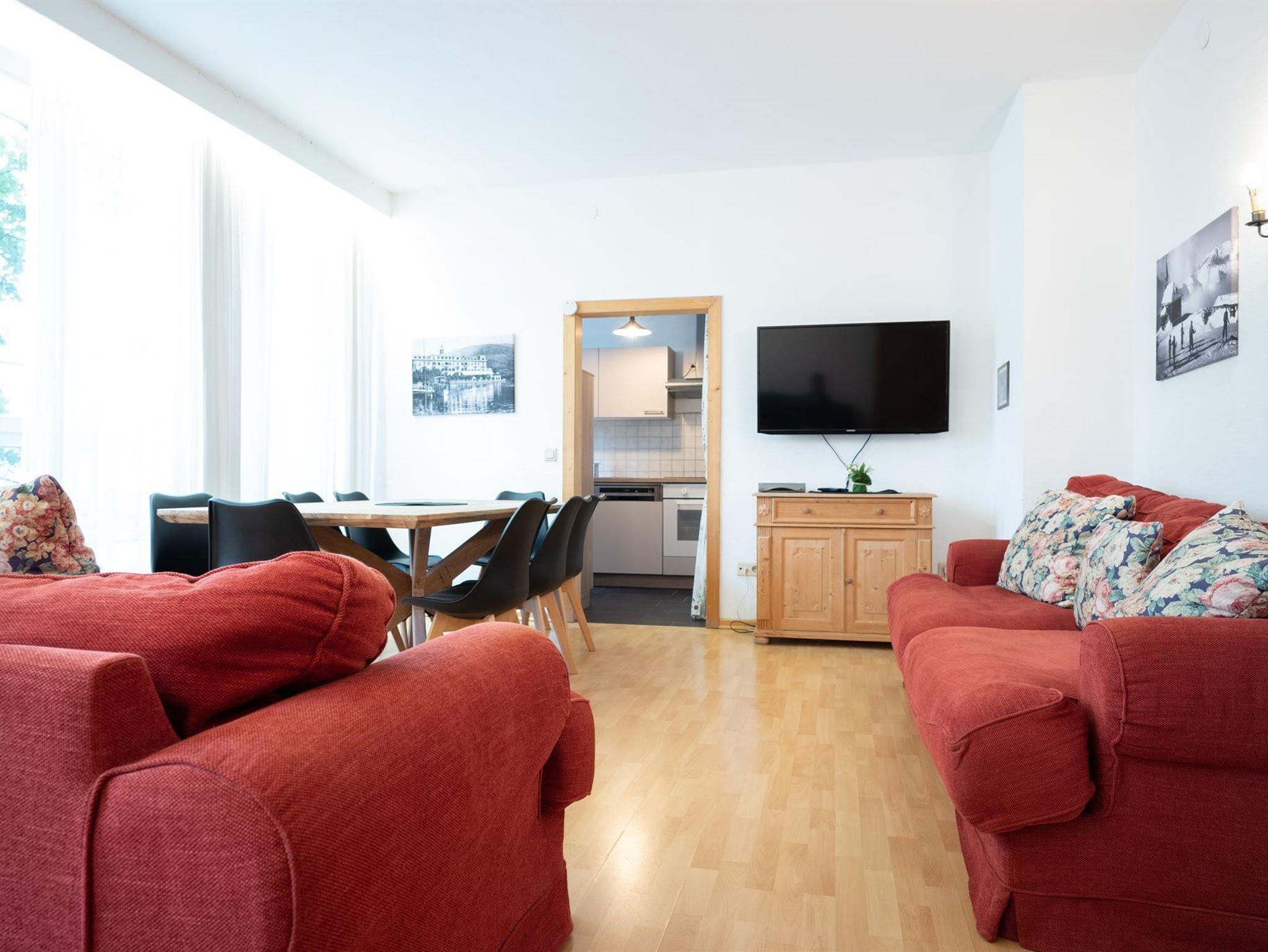 Unser Deluxe Apartment lädt mit je einem Schlaf- und Wohnzimmer für gemütliche Tage nach Zell am See ein. Auf 55m² finden bis zu 5 Personen Platz. Das Beste: Zentrale Lage direkt im Stadtkern, sowie Parkplätze und ein riesiges Wohnzimmer mit Blick auf die Innenstadt von Zell am See. Zu Fuß erreichbar sind: die City Express Gondelbahn (400m), der See (200m), ein Supermarkt (100m), der Bahnhof (150m). Den Golfplatz (4km) und den Flughafen Salzburg (75km) erreichen sie bequem mit dem Auto oder den öffentlichen Verkehrsmitteln.