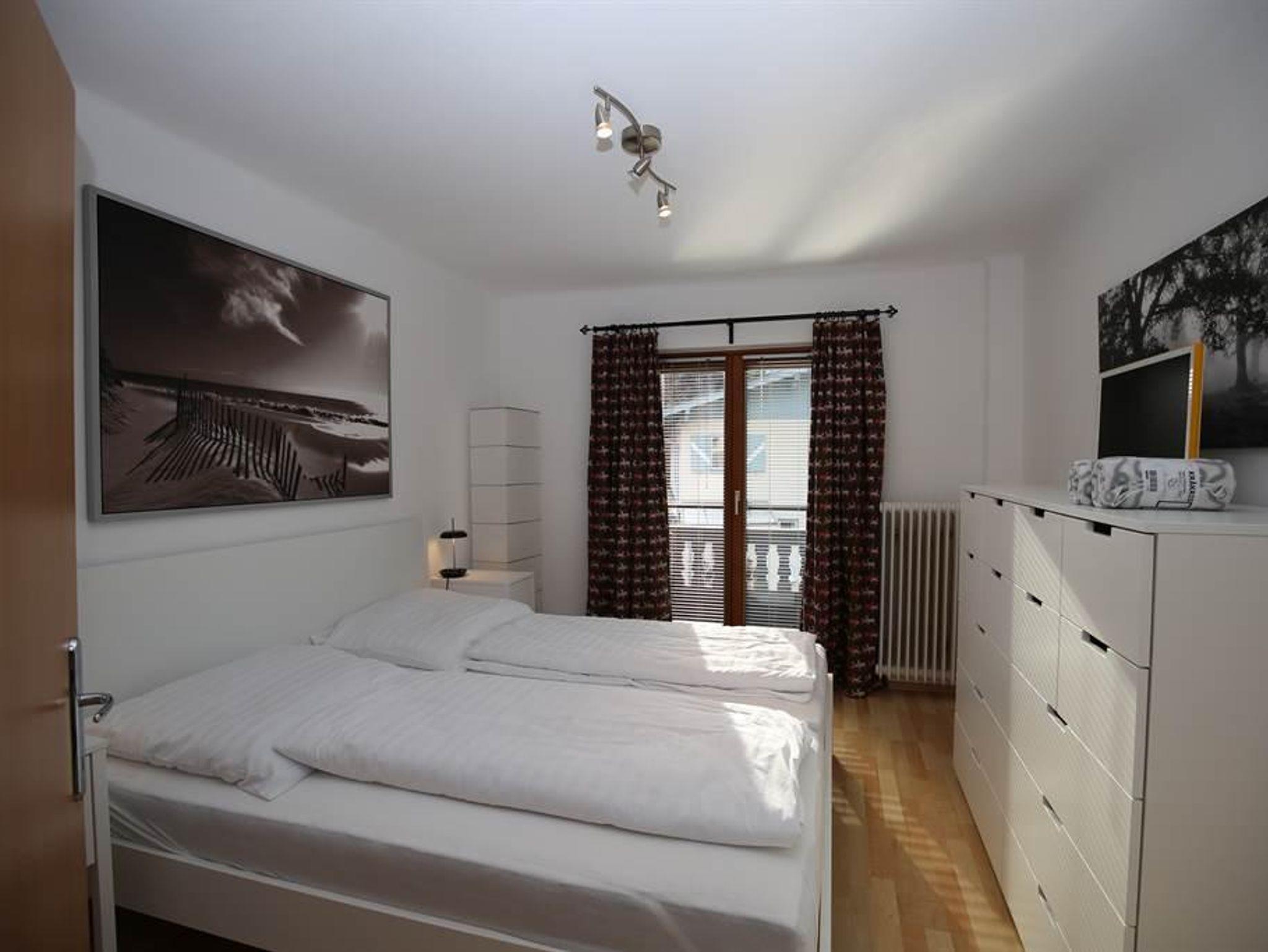 Appartement Norrland mit helle Räumlichkeiten und Balkon. Im ersten Schlafzimmer befindet sich ein Doppelbett, im zweiten Schlafzimmer zwei Einzelbetten.