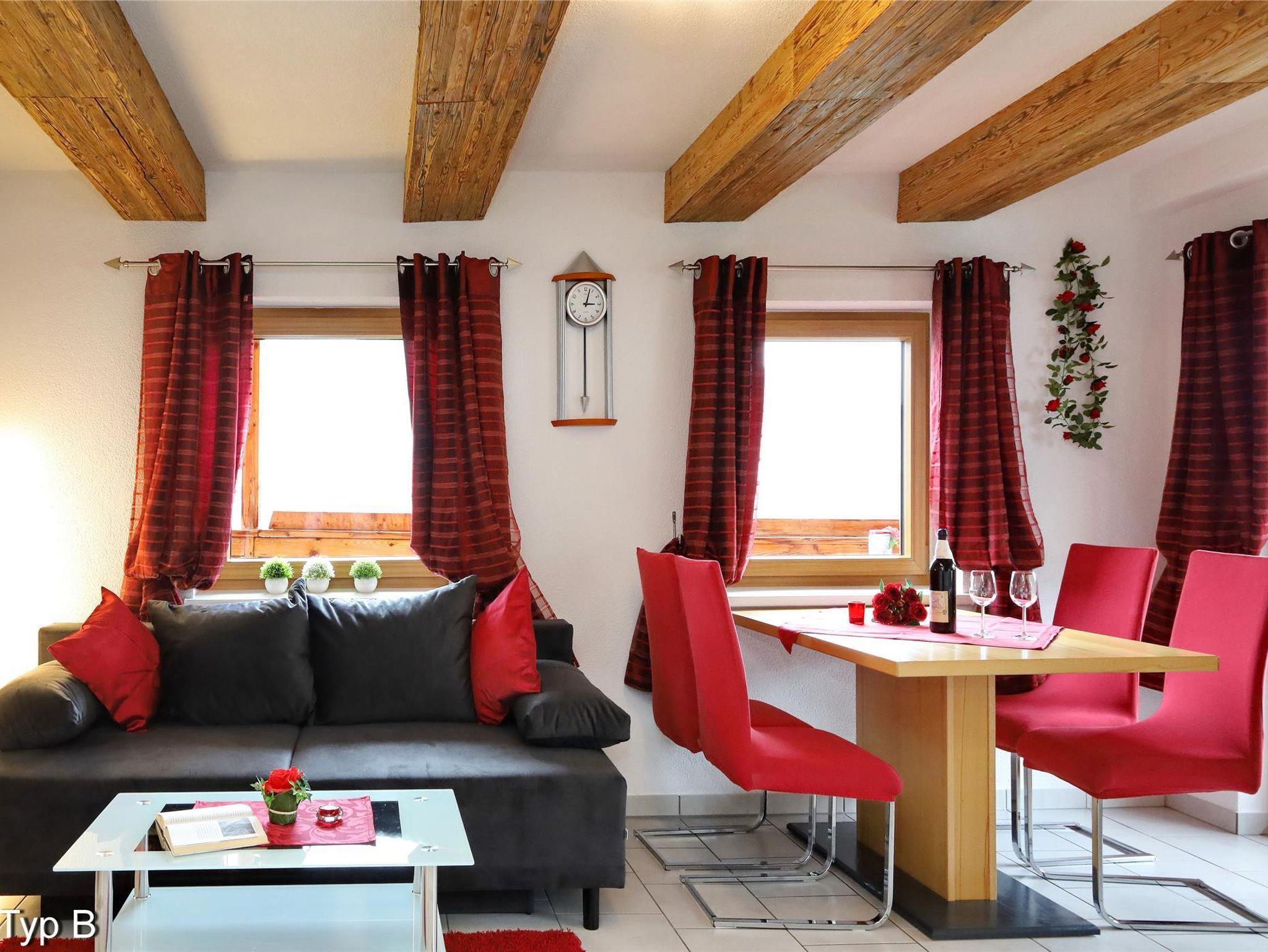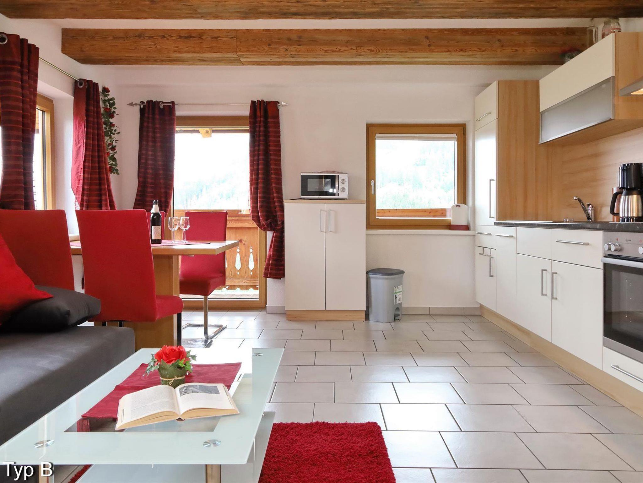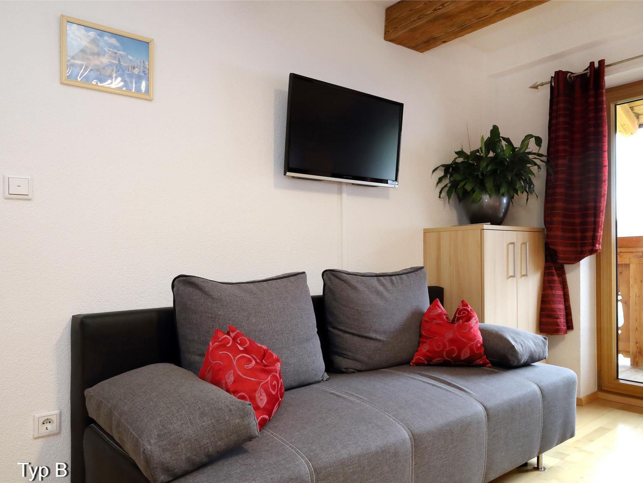 Das Appartement ist gemütlich und modern eingerichtet und bietet einen herrlichen Balkon. Materialien wie Holz, Edelstahl und Leder geben den Chalets einen eigenen Flair. Es ist ideal für bis zu 5 Personen mit einem Schlafzimmer mit Doppelbett sowie Schlafcouch im Wohnbereich. Das Apartment verfügt über eine Einbauküche mit Kühl/Gefrierschrank, Geschirrspüler, Mikrowelle, E-Herd/Backofen, Kaffeemaschine und einen Wasserkocher. Zur Ausstattung gehören natürlich auch Geschirr, Gläser, Töpfe und alle nötigen Utensilien die sie brauchen, um sich ein leckeres Menü zu zaubern. Natürlich verfügen auch alle Wohnungen über gratis Internet und einen Flachbildfernseher mit Kabel TV, sowie einem Föhn in den Badezimmern.