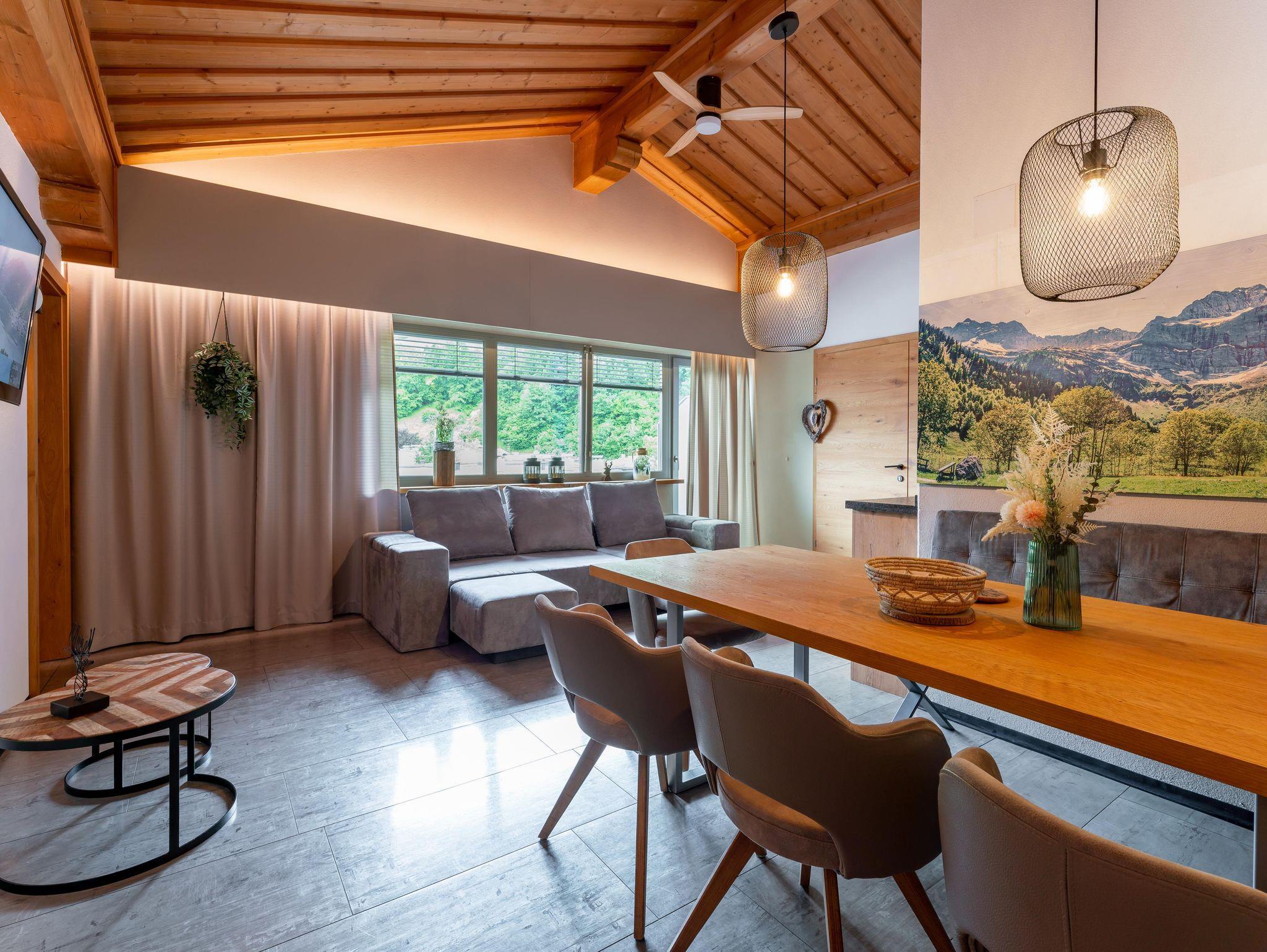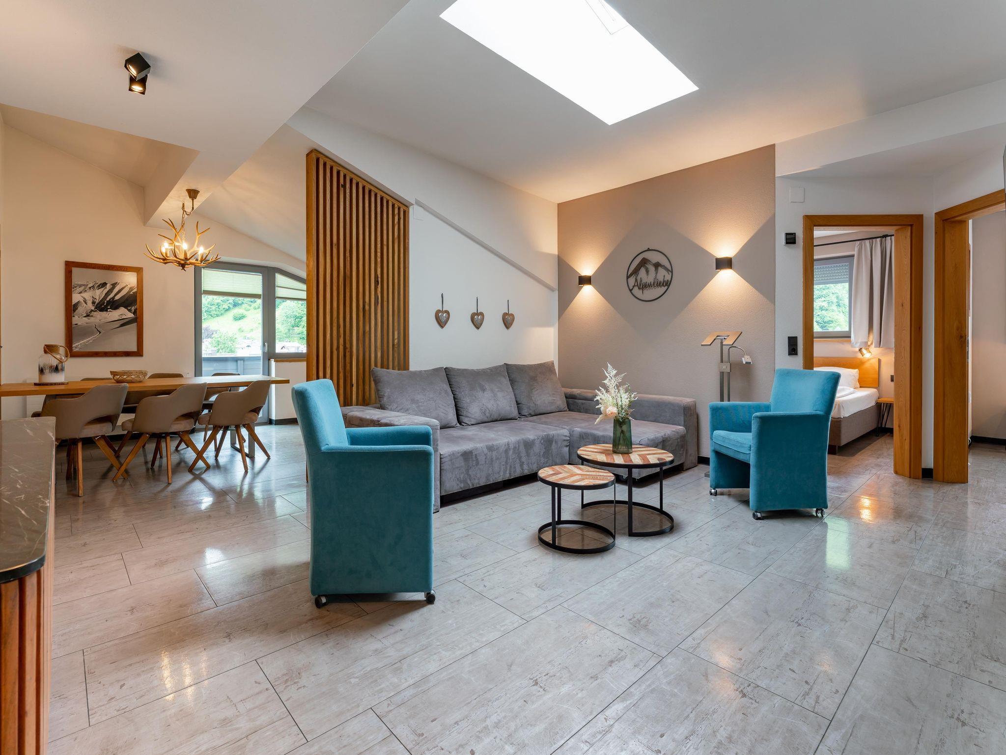 • Drei Appartements: ALM 1 und ALM 2 (jeweils für 6 Personen) im 4. Stock, ALM 3 (für 4 Personen) im 3. Stock, jeweils mit Aufzug