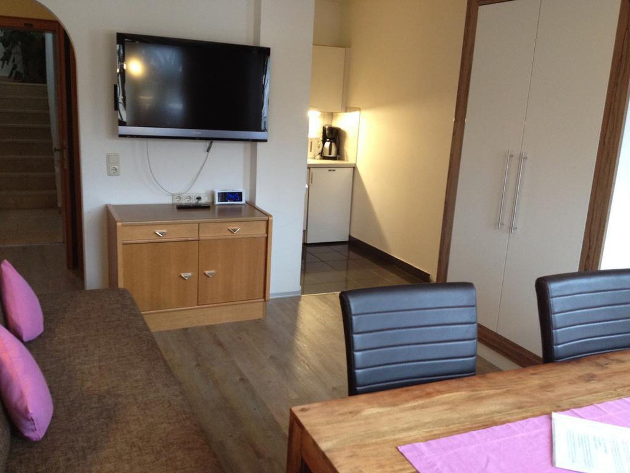 Kaffeemaschine, Wasserkocher, Toaster und genügend Ess-und Kochgeschirr, Flat-TV (Kabel-TV)