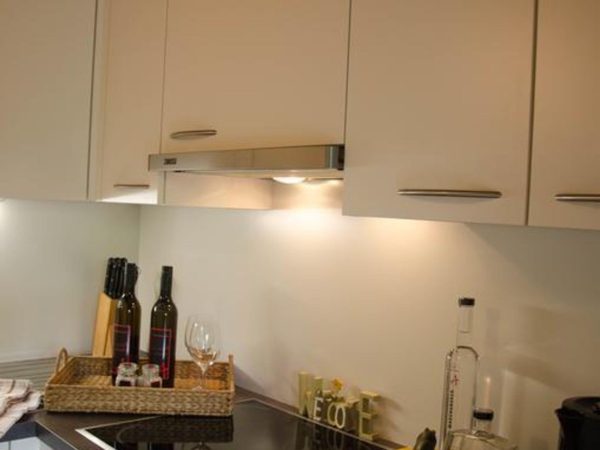 * Küchenzeile mit Ceranfeld und Backofen, Kühlschrank mit Gefrierfach, Geschirrspüler,