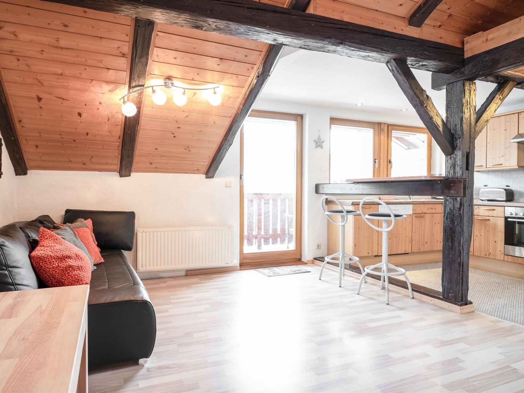Die offene Küche ist ebenfalls voll ausgestattet: Ein Ceranfeld mit 4 Kochstellen, eine Kühl-Gefrierkombination, eine Mikrowelle, einen Backofen, eine Spülmaschine, sowie Geschirr/Besteck und Kochutensilien mit einer Kaffeemaschine, einen Toaster und einem Wasserkocher. Die Unterkunft verfügt weiter über eine Waschmaschine, sowie ein Bügeleisen/-brett.