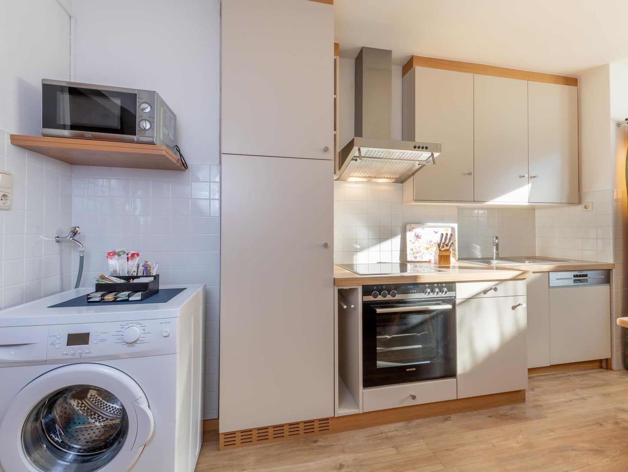 • 1 Küche mit Essecke (Backofen, Kühlschrank, Elektroherd mit Ceranfeld, Mikrowelle, Waschmaschine)