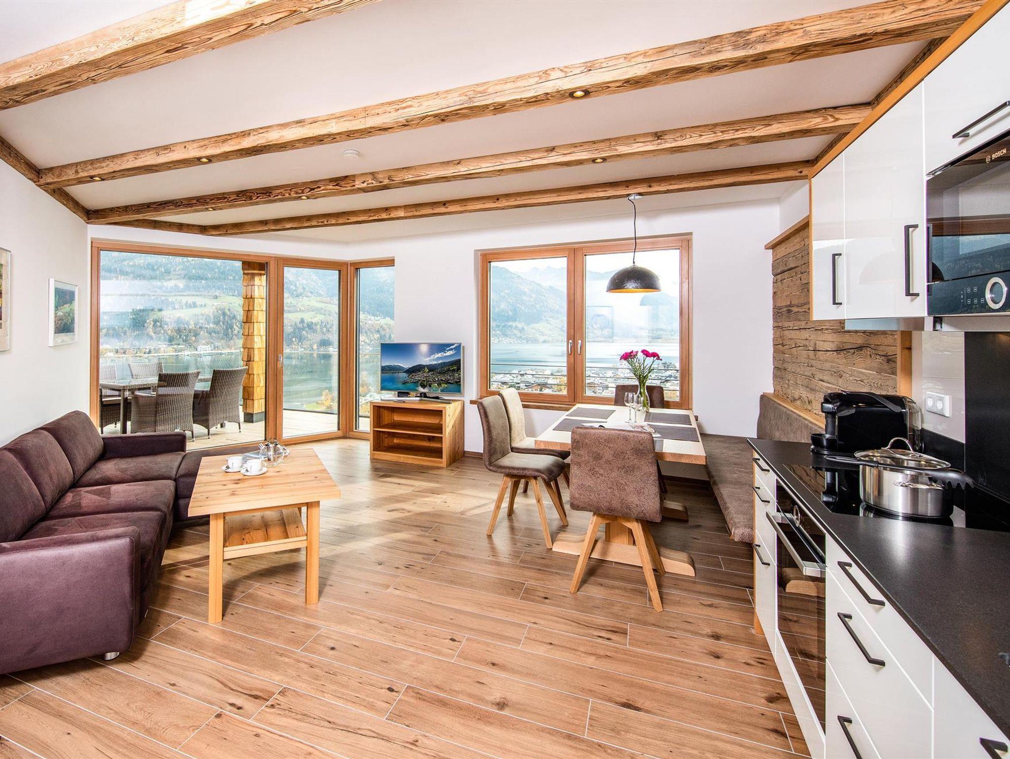 Premium Apartment Adlerhorst Top 4 by we rent. Das Premium-Apartmenthaus Adlerhorst macht seinem Namen alle Ehre: Hier wohnst du über den Dächern von Zell am See in absoluter Ruhelage am Zeller Sonnberg und hast den Zeller See und die Berge bestens im Blick. Die Ferienwohnung selbst bietet auf 90 m² Platz für ein bis fünf Personen.