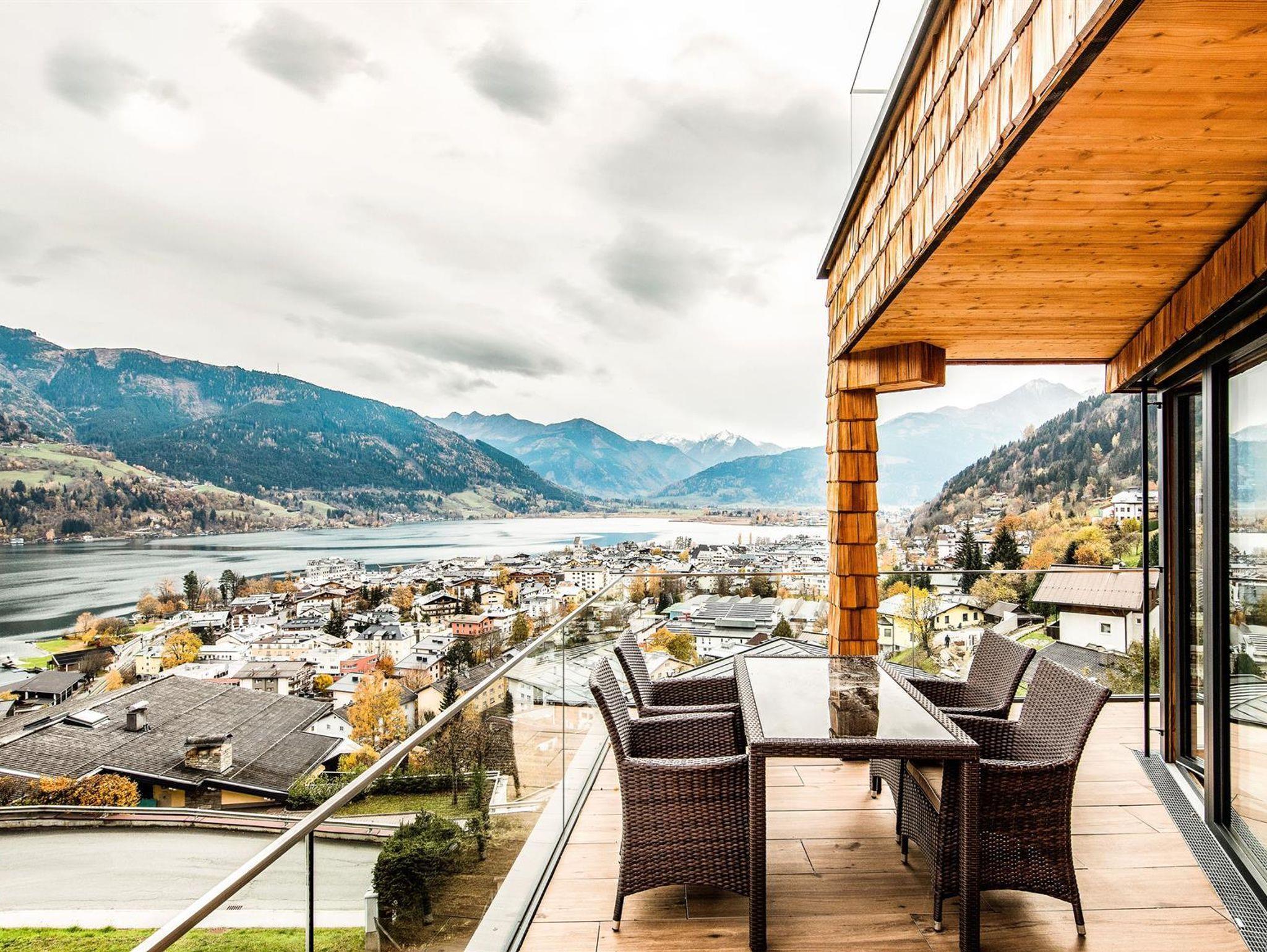 Das Premium Apartmenthaus Adlerhorst über den Dächern von Zell am See. In absoluter Ruhelage am Zeller Sonnberg gelegen gehören die ersten Sonnenstunden des Tages Ihnen. Mit unverbautem Weitblick auf den Zeller See und die umliegende Bergwelt genießen Sie auf Ihrem großzügigen Balkon das traumhafte Panorama.