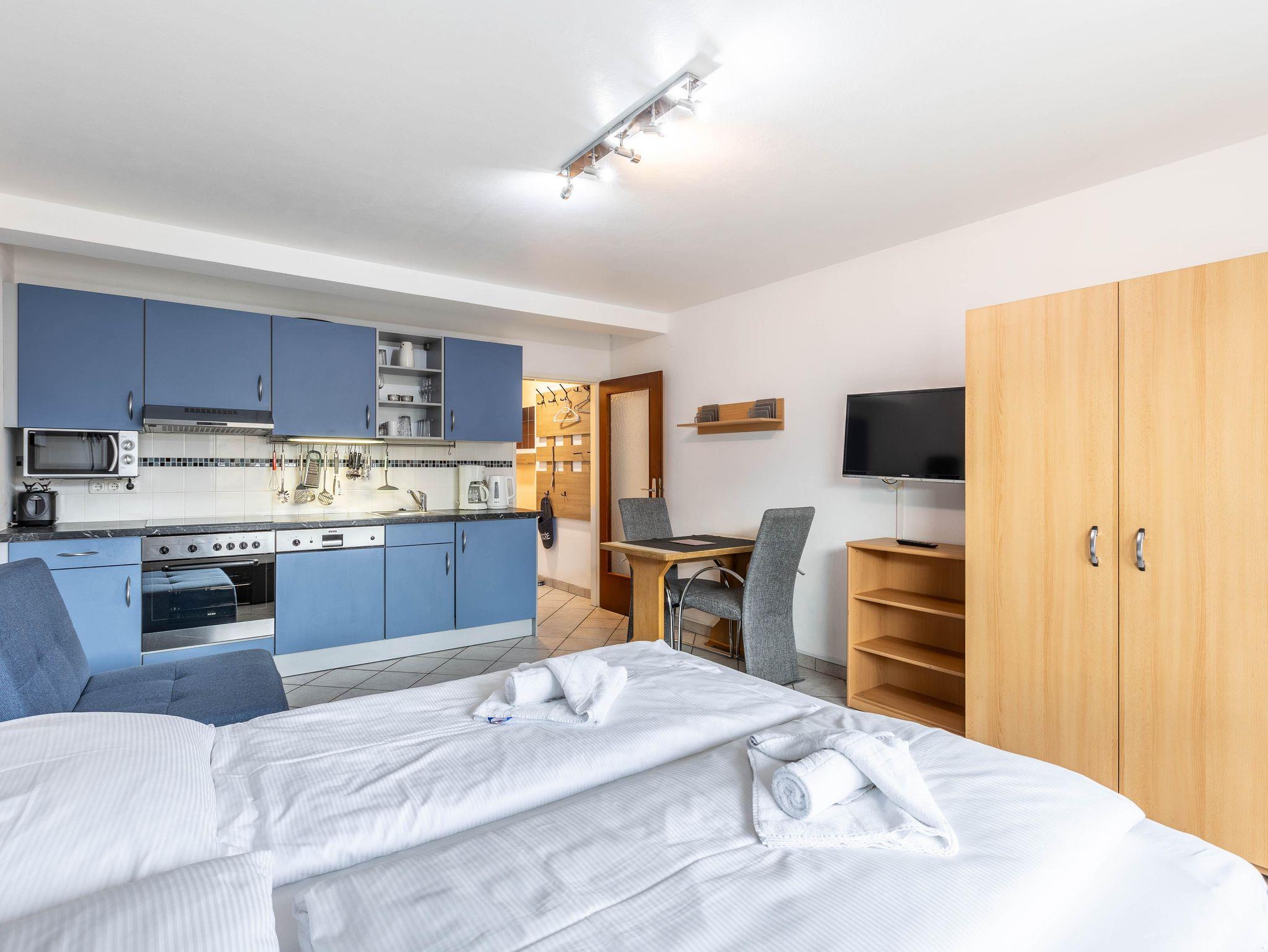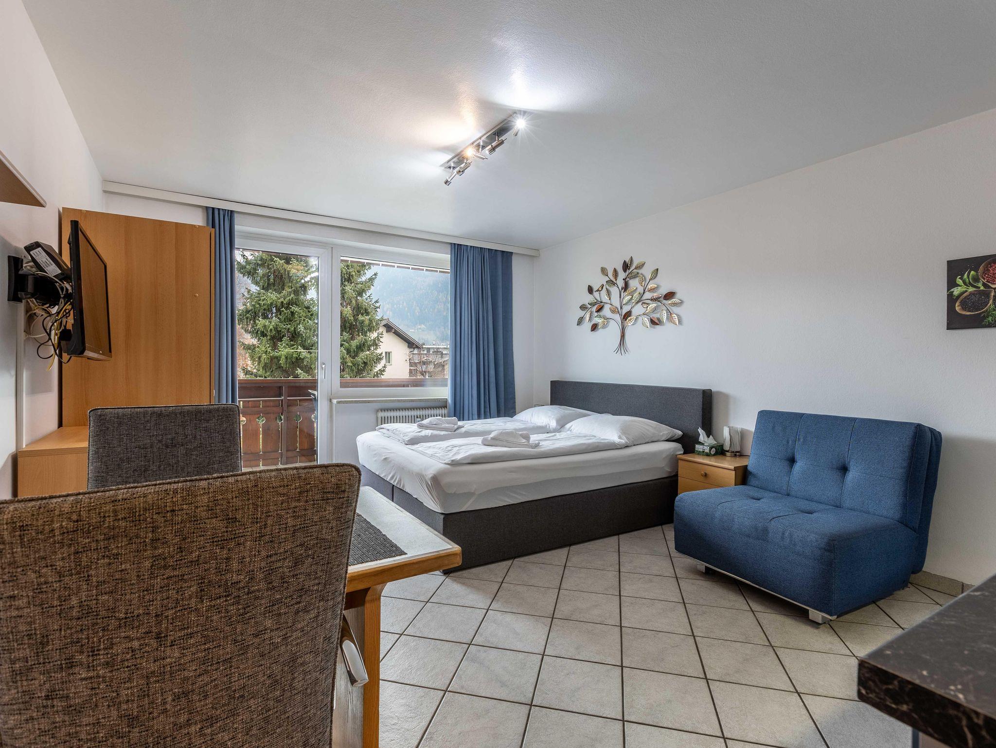 Dieses gemütliche Einzimmer-Studio im 2. Stock ist ideal für bis zu 3 Personen. Es verfügt über ein komfortables Doppelbett und ein Schlafsofa für eine Person. Der Wohnbereich ist offen gestaltet und umfasst eine gut ausgestattete Küche. Das moderne Badezimmer bietet eine Dusche, Waschbecken und Toilette. Ein Highlight ist der Balkon mit wunderschönem Ausblick, perfekt für entspannte Stunden im Freien. WLAN ist inklusive. Der Skilift befindet sich nur 3 Minuten entfernt.