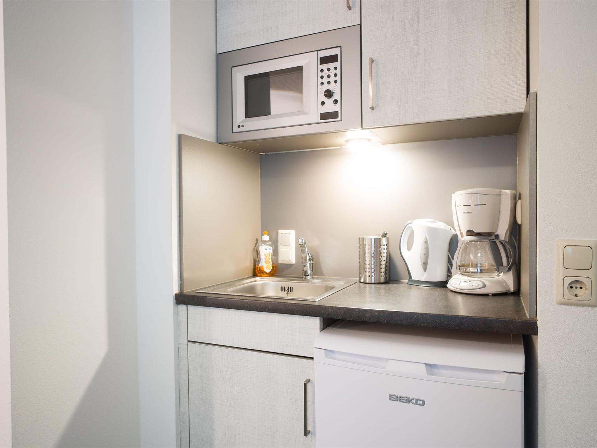Die Studios verfügen über kostenfreies WLAN, einen Föhn, eine Zentralheizung sowie einen Balkon und einen Smart TV. Die Kochnische ist ausgestattet mit: zwei Kochfelder, einen Kühlschrank, Geschirr/Besteck, Kochutensilien, eine Kaffeemaschine, einen Toaster und einen Wasserkocher.
