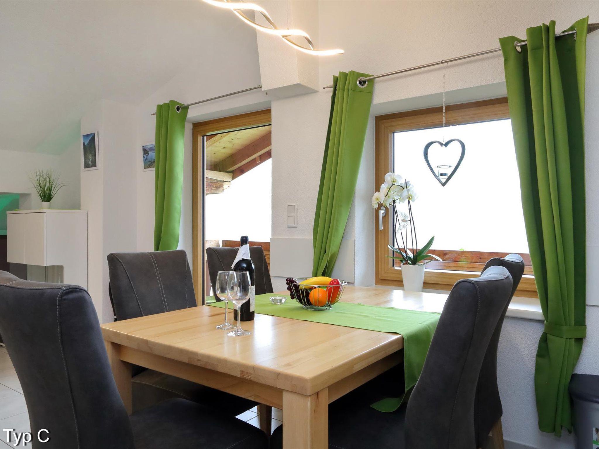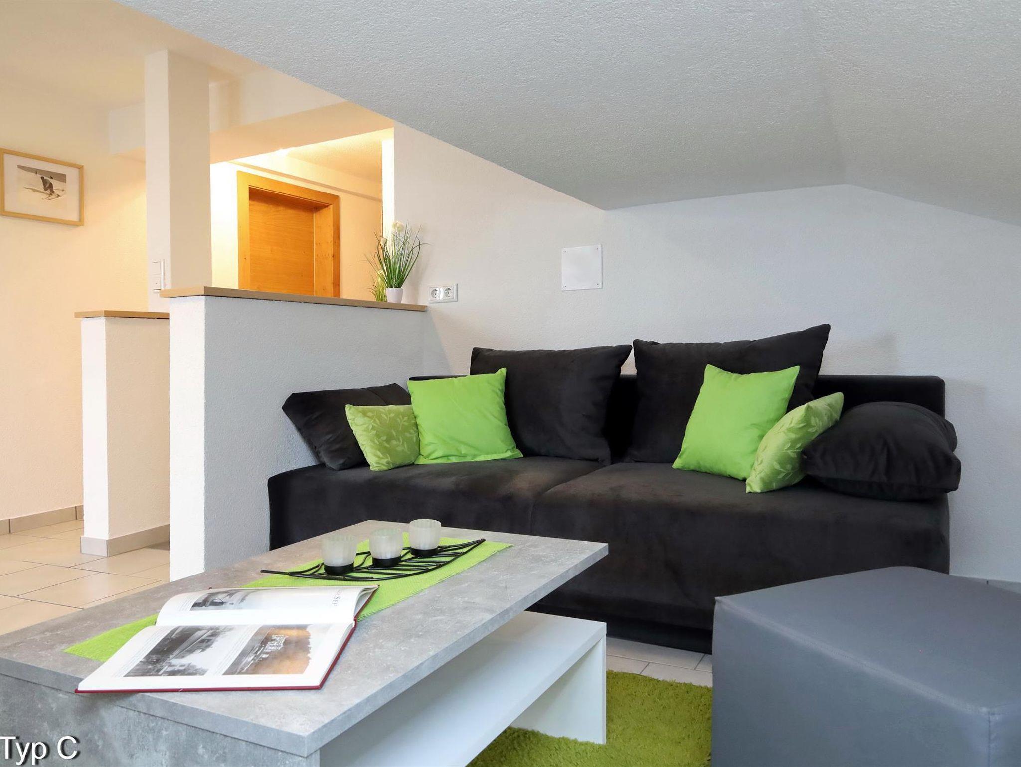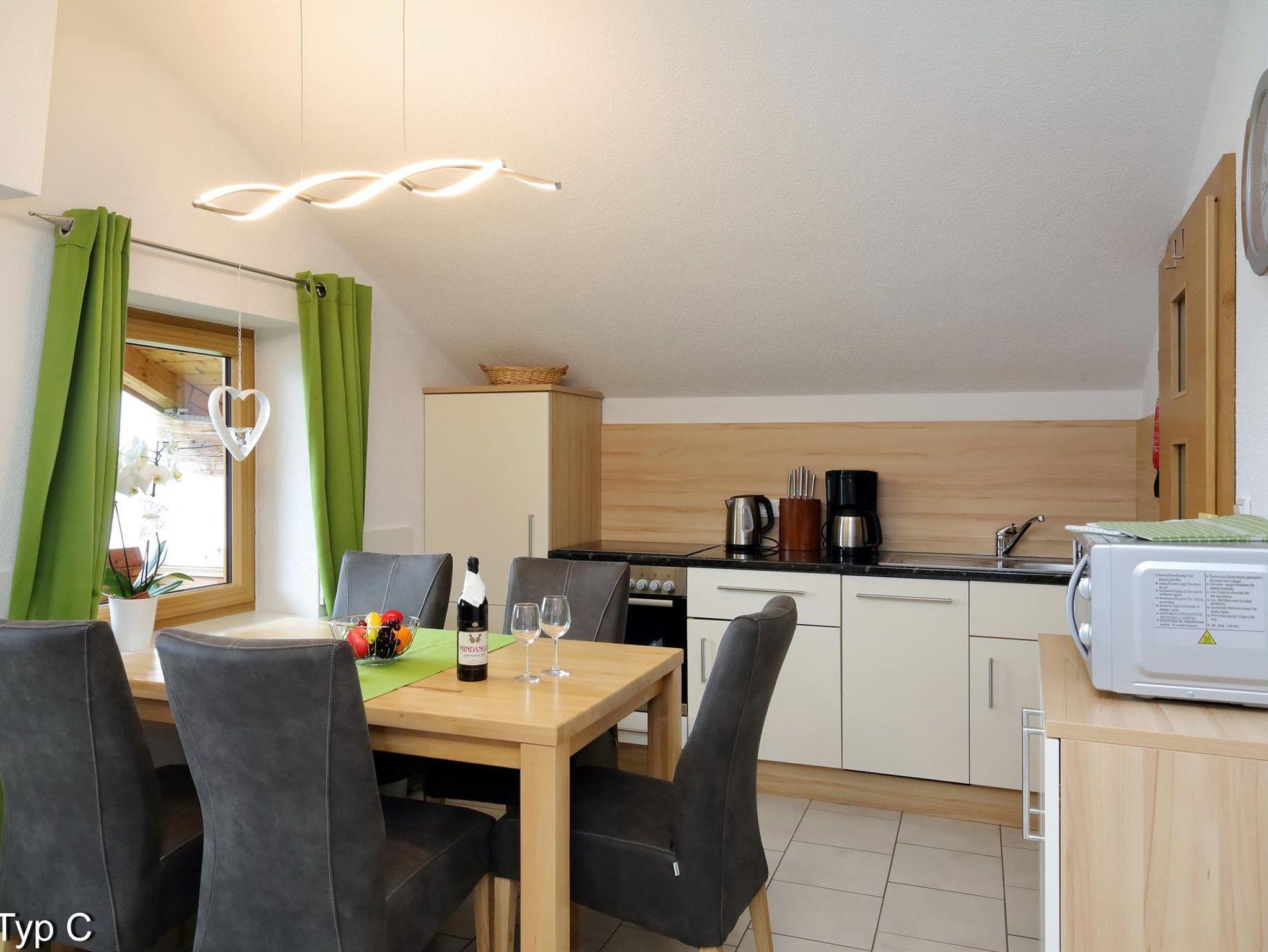 Das Appartement ist gemütlich und modern eingerichtet und bietet einen herrlichen Balkon. Materialien wie Holz, Edelstahl und Leder geben den Chalets einen eigenen Flair. Es ist ideal für bis zu 6Personen mit zwei Schlafzimmer mit Doppelbett sowie einer Couch im Wohnbereich. Das Apartment verfügt über eine Einbauküche mit Kühl/Gefrierschrank, Geschirrspüler, Mikrowelle, E-Herd/Backofen, Kaffeemaschine und einen Wasserkocher. Zur Ausstattung gehören natürlich auch Geschirr, Gläser, Töpfe und alle nötigen Utensilien die sie brauchen, um sich ein leckeres Menü zu zaubern. Natürlich verfügen auch alle Wohnungen über gratis Internet und einen Flachbildfernseher mit Kabel TV, sowie einem Föhn in den Badezimmern.
