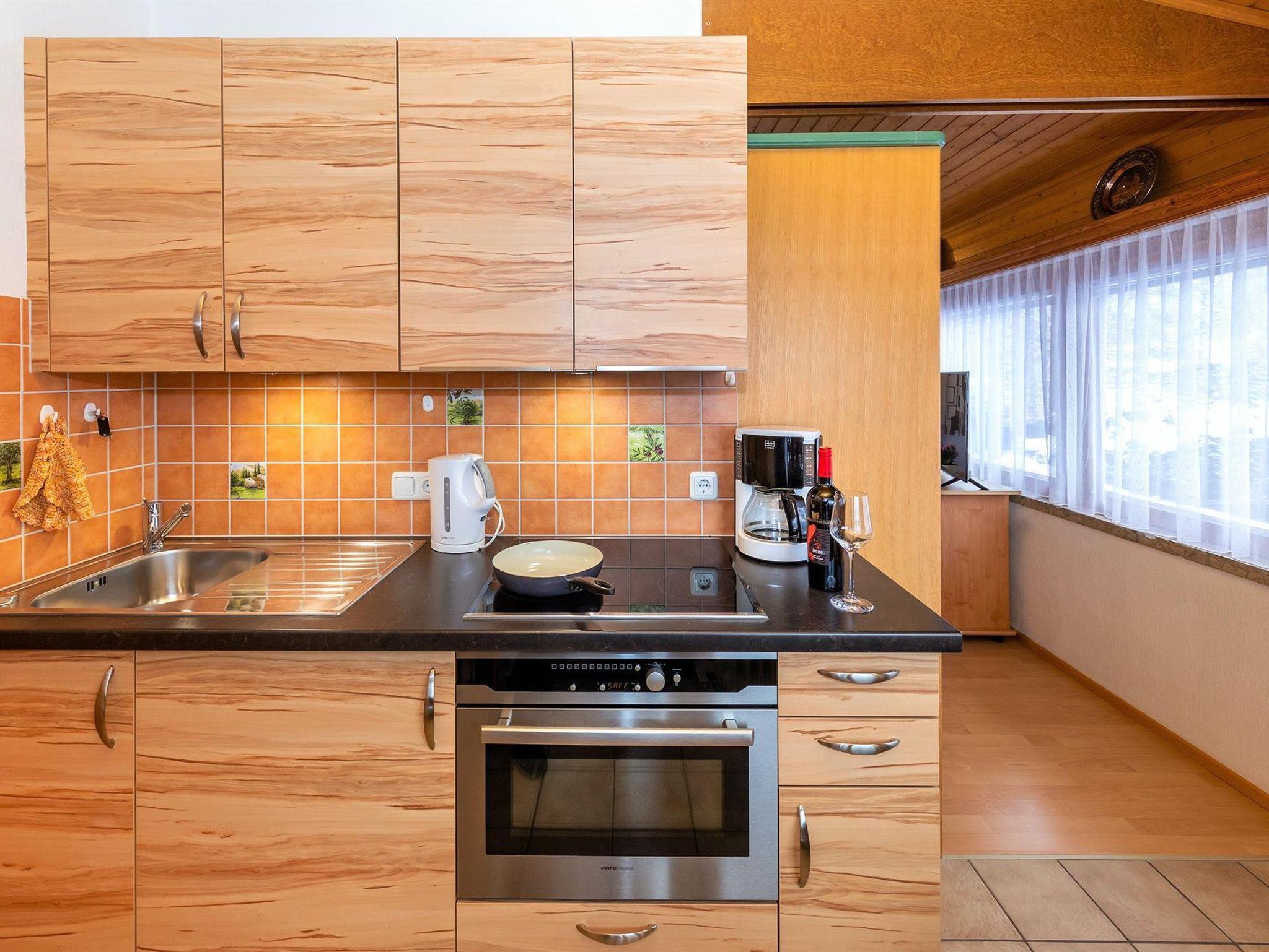 • Kochzeile mit kleiner Essecke (Kühlschrank, Elektroherd, Mikrowelle, Wasserkocher, Kaffeemaschine, etc.)