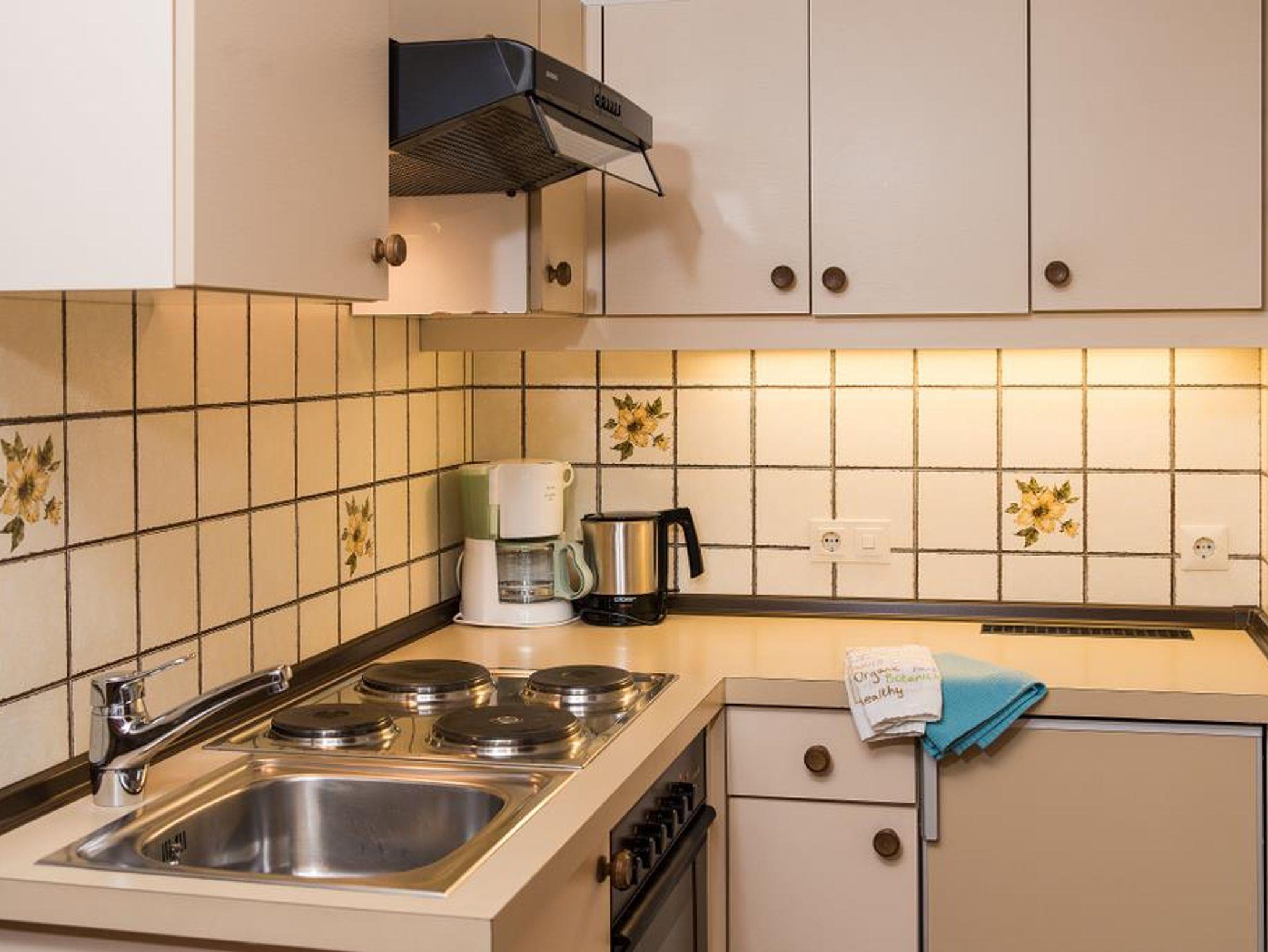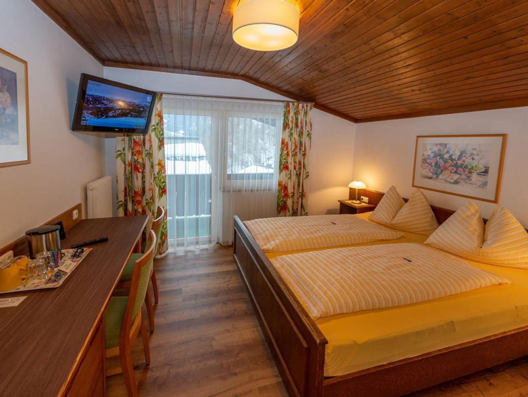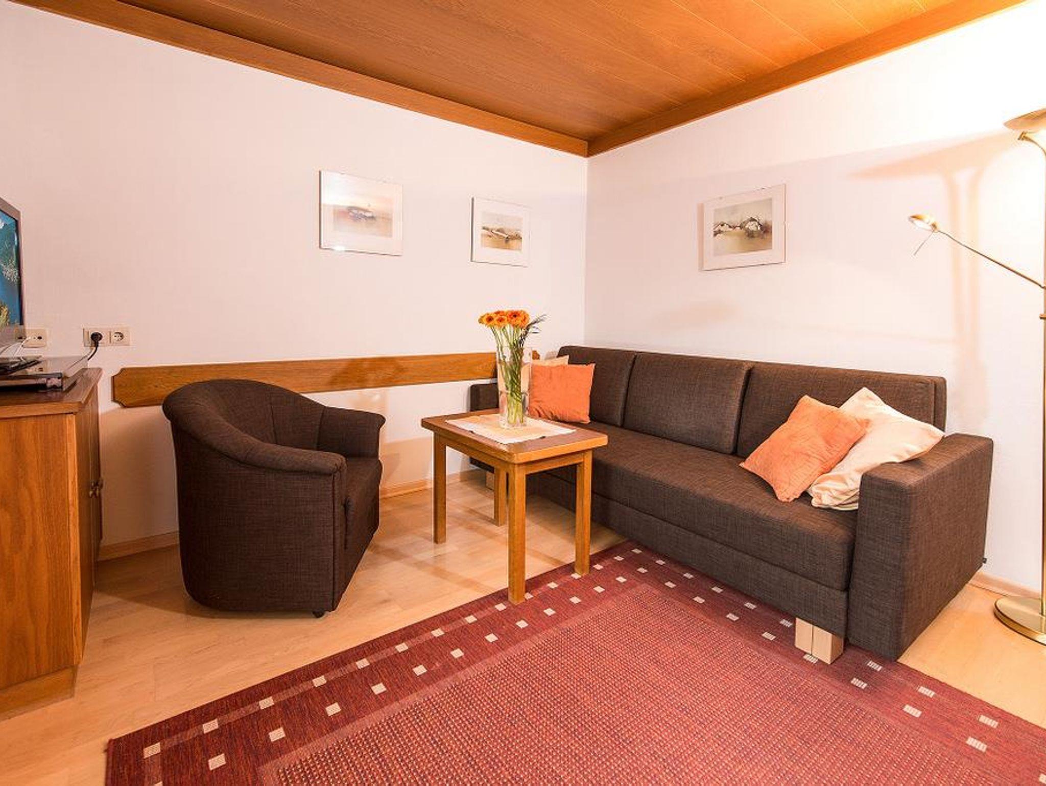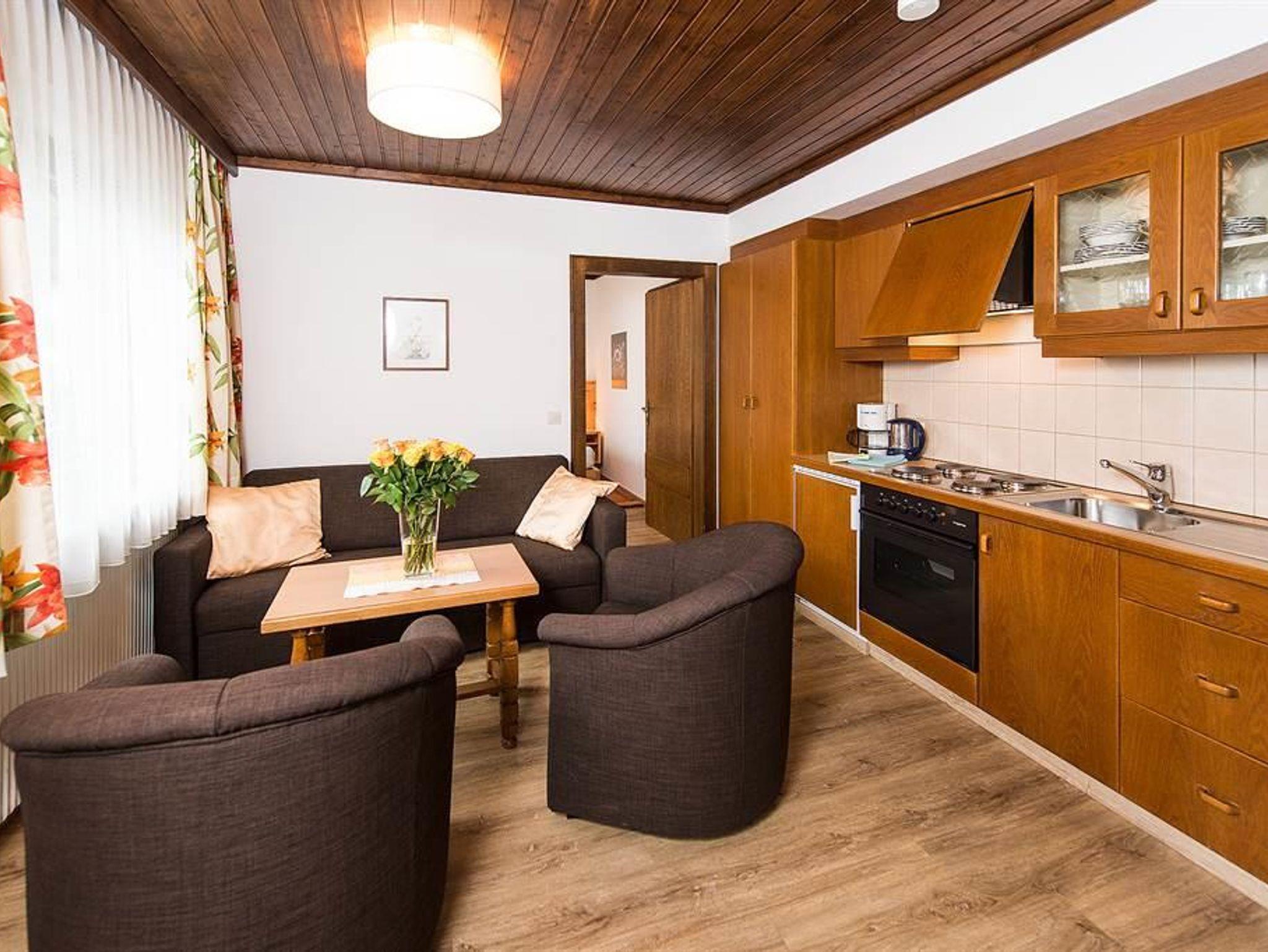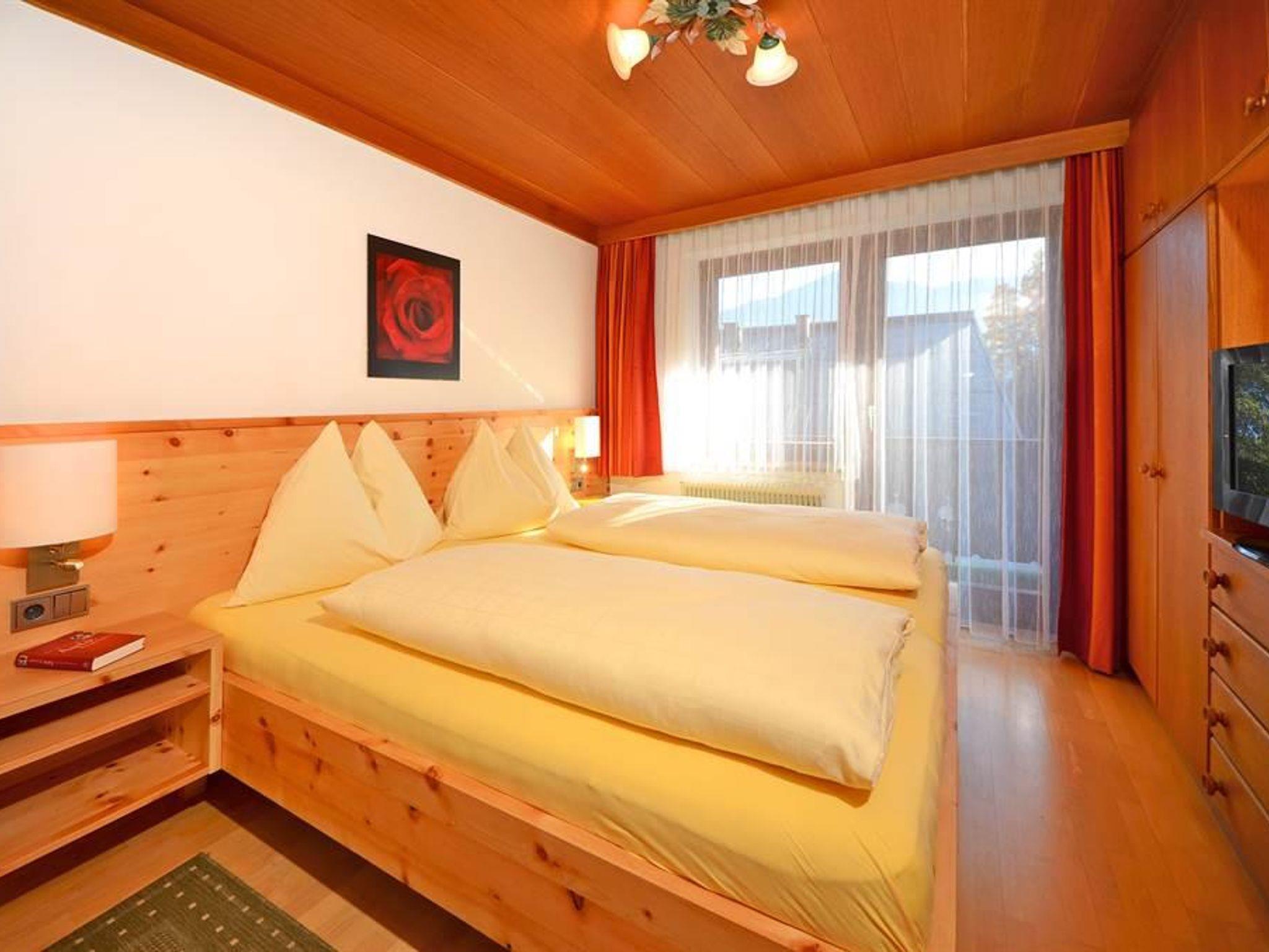 Das Appartement hat ein Schlafzimmer mit Doppelbett (neue Zirbenbetten in Komfort-Liegehöhe und hochwertigen Matratzen), ein Wohn/Schlafzimmer mit ausziehbarer Couch, eine kleine Küche, ein Badezimmer, Vorraum und Balkon. Es ist ausgestattet mit Kochgeschirr, 2 x digitaler Kabel-TV, Haartrockner, Telefon und Safe. Bettwäsche und Handtücher sind vorhanden.