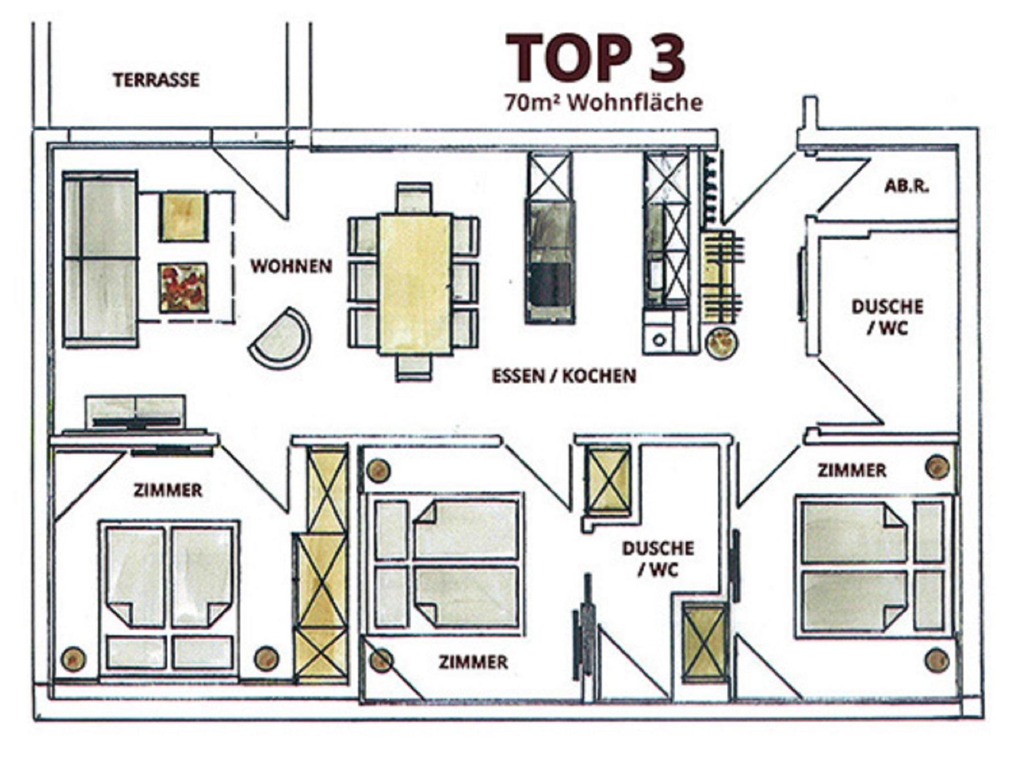 3 Doppelbettschlafzimmer, Flachbild-TV, 2 Bäder mit Dusche, WC mit WC-Dusche, 1 Wohn-Schlafraum mit Doppelausziehcouch in hoher Qualität, Flachbild-TV, DVD-Player, Terrasse (27m²), komplett ausgestattete Küche mit Kombi-Ofen, Herd, Kühlschrank mit Tiefkühlfach, Geschirrspüler, Kaffeemaschine, Wasserkocher, Toaster und ausreichend Geschirr, kostenloses WLAN, Garagenstellplatz