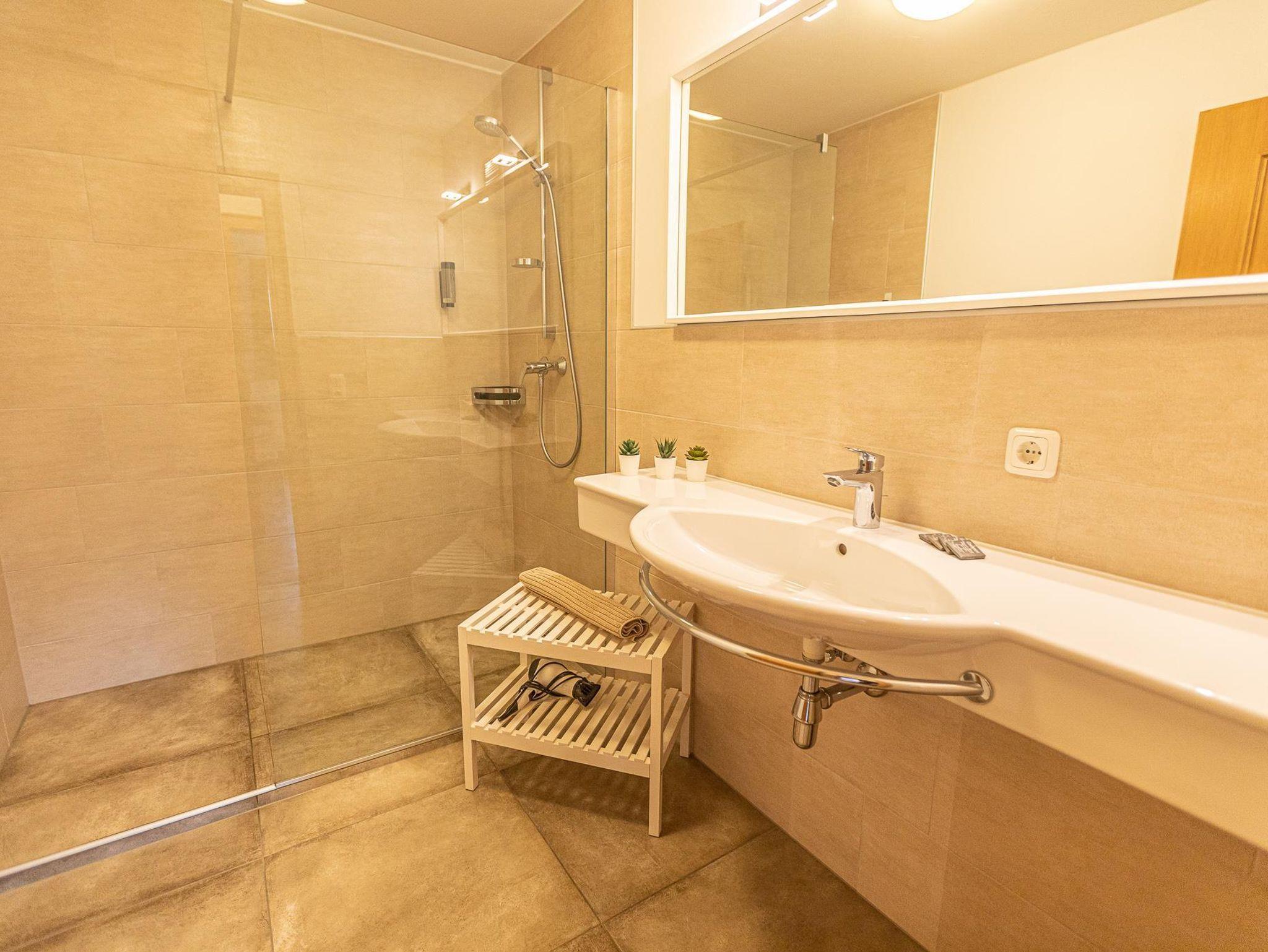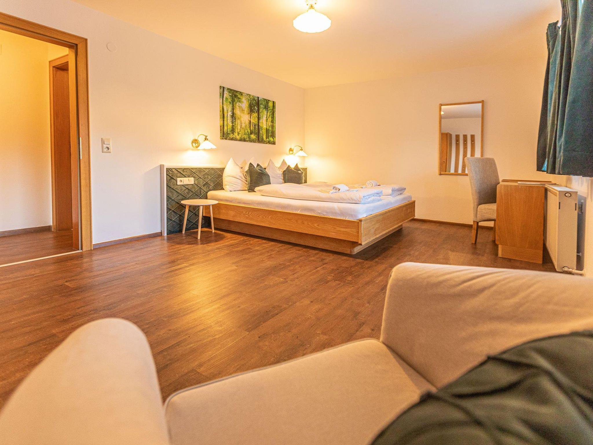 Mit Blick auf den Gletscher Kitzsteinhorn kommt man auch im Herbst oder im Frühjahr in den Genuss von verschneiten Berggipfeln. Zwischen Gletscher und See kommen Skifahrer auch in der Nebensaison auf Ihre Kosten und sollte es schon wärmer sein ruft der See zur Abkühlung. Ausgestattet ist das Apartment mit allem, was ein entspannter Urlaub braucht: Auf 75 m² finden sich zwei Schlafzimmer mit Doppelbetten und ein Wohnraum mit einer Doppelschlafcouch für insgesamt 6 Personen. Ein modernes Badezimmer und die Toilette sind separat benutzbar.