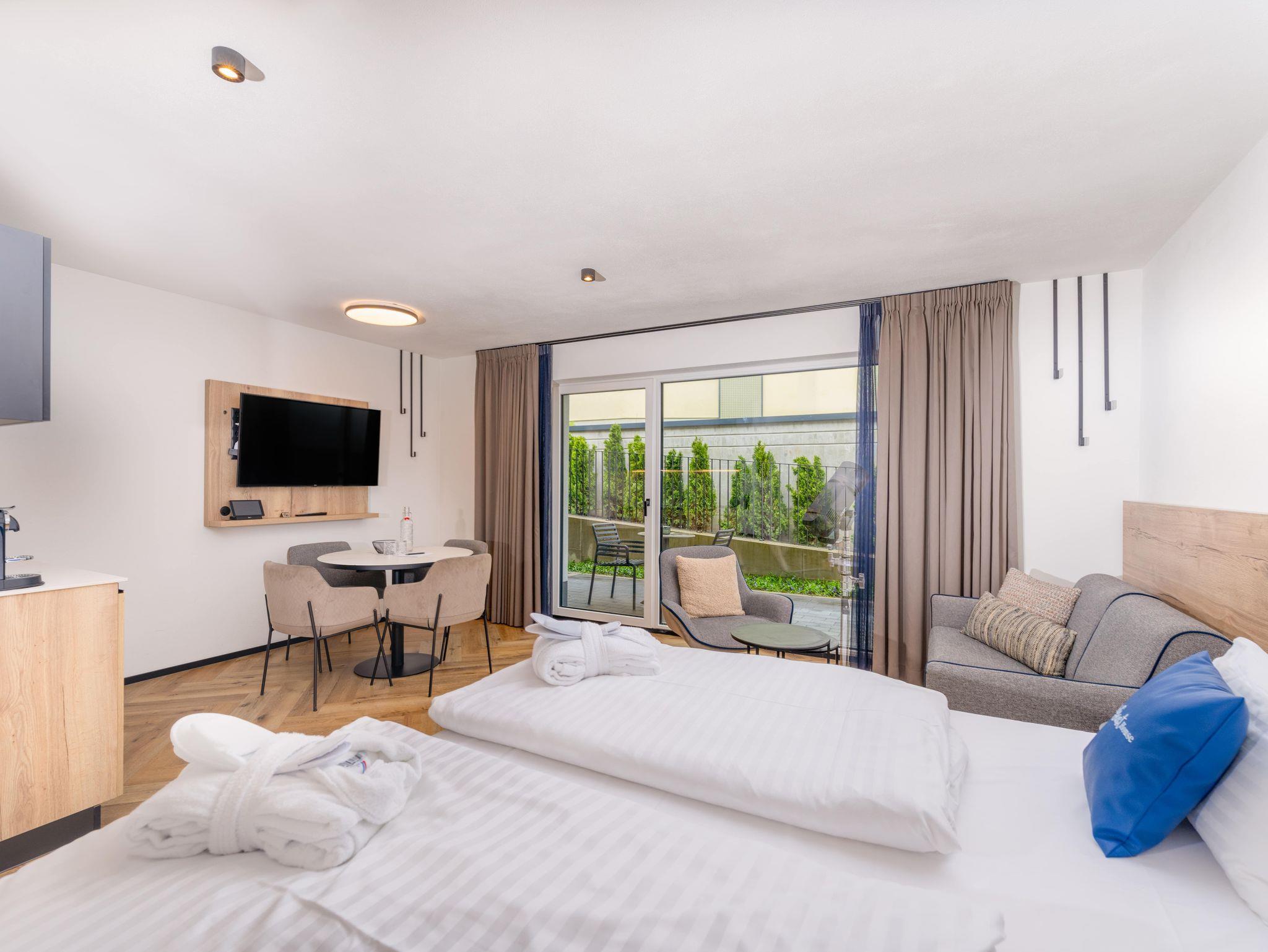 • Teilweise mit Balkon, Terrasse und privater Sauna