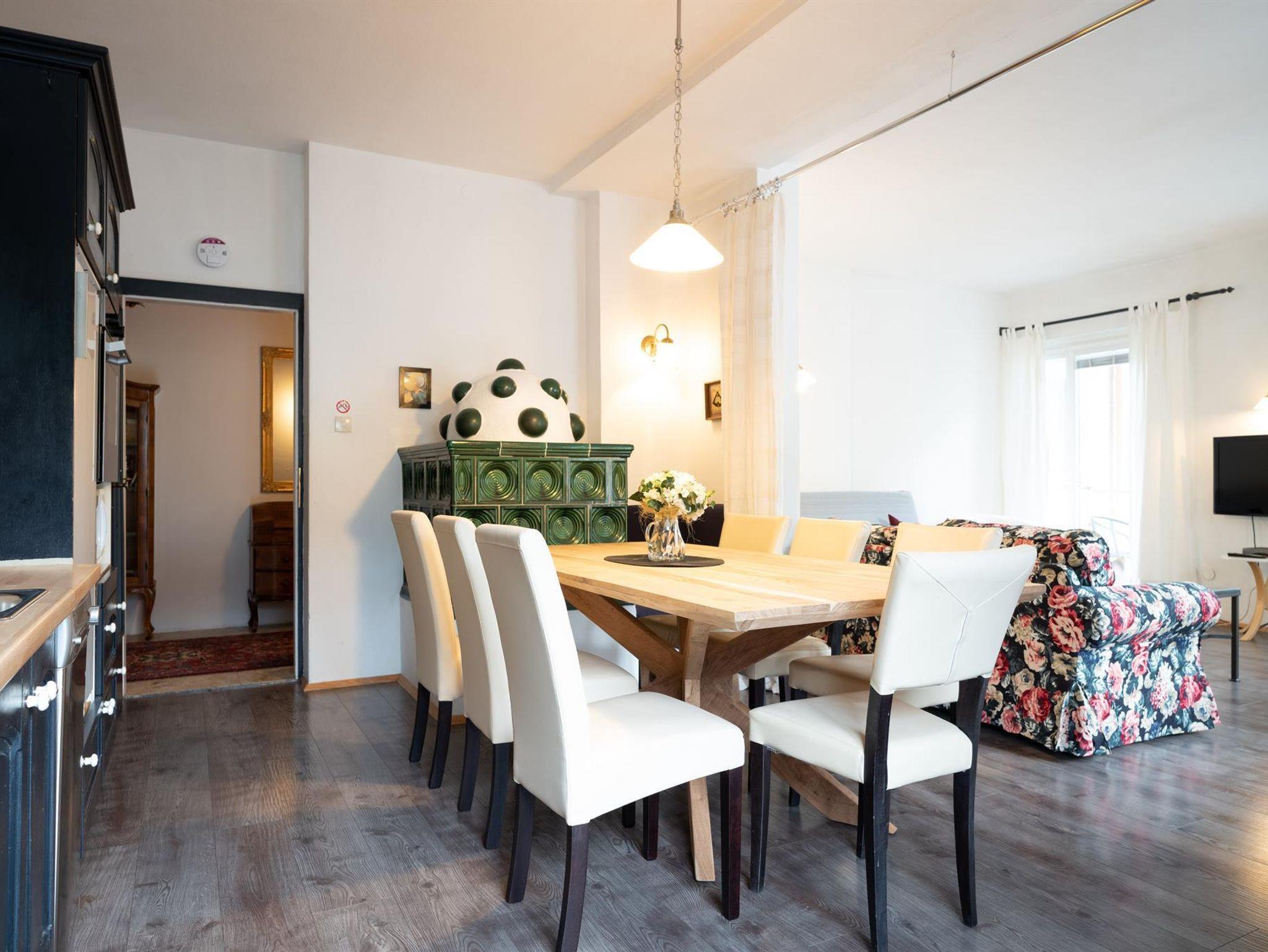 Die Unterkunft verfügt weiter über einen Aufzug, ein Bügeleisen/-brett, einen Internetanschluss (WLAN), einen Föhn, eine Zentralheizung sowie einen Ventilator und einen Fernseher. Die Küche mit elektrischem Kochfeld ist ebenfalls voll ausgestattet: Dort findet sich ein Kühlschrank, ein Backofen, eine Spülmaschine, Geschirr/Besteck, Kochutensilien, eine Kaffeemaschine, ein Toaster und ein Wasserkocher.