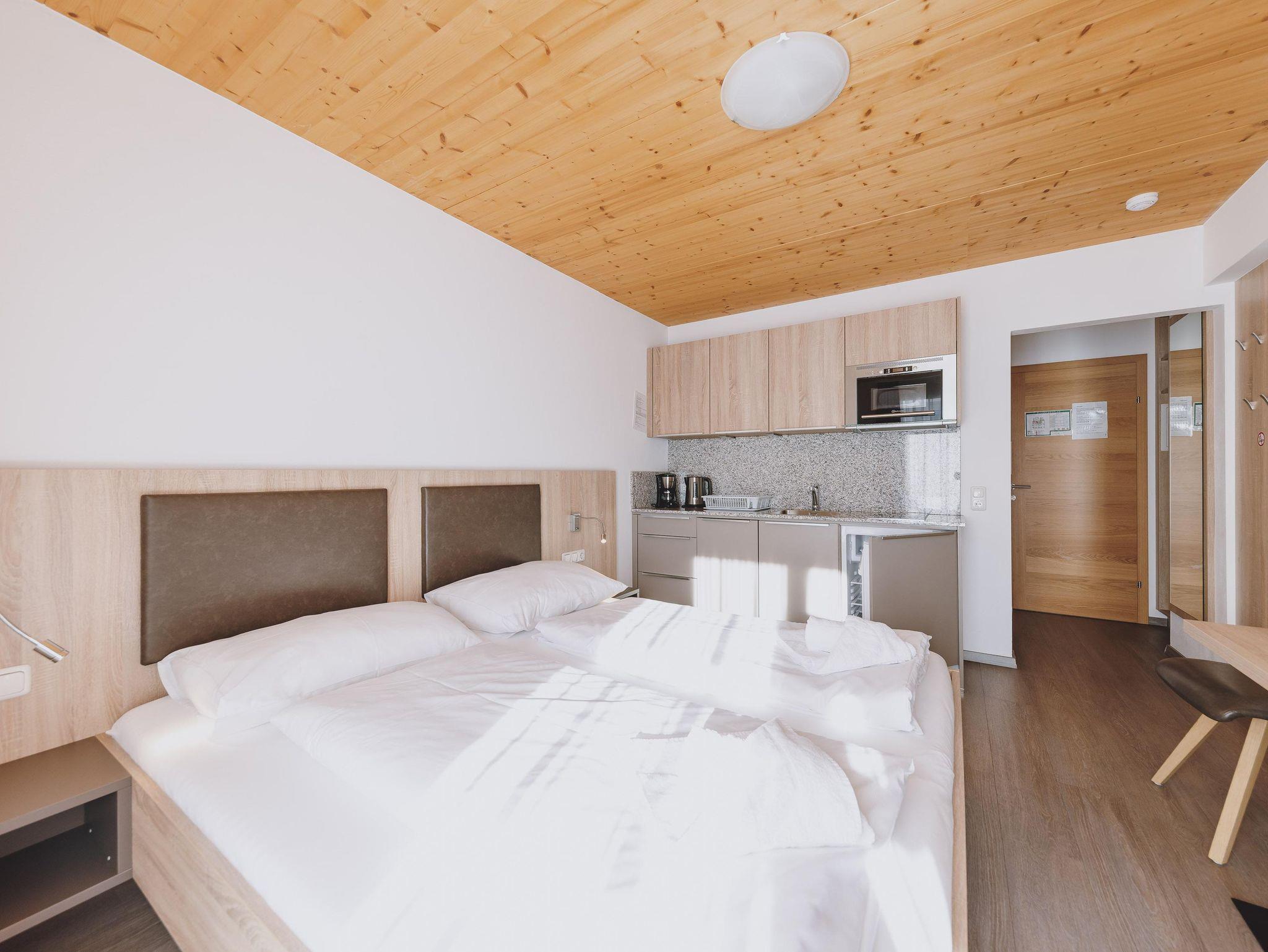Das gemütliche Appartment bietet Platz für 2 Personen. Es ist ausgestattet mit Doppelbett, Essecke, Flat TV, Vorraum mit Garderobe