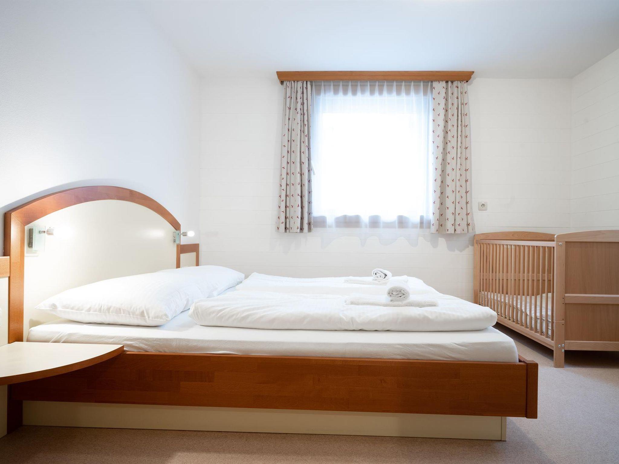 Im Schlafzimmer befindet sich ein großes Doppelbett. Das Wohnzimmer ist mit einem Hochbett für zwei weitere Personen ausgestattet. Die Küche befindet sich in einem separaten Zimmer. Unser Apartment macht nämlich eine moderne Küche aus: Hierfür haben wir eine Küche mit Kühl/Gefrierschrank, Backofen, Geschirr/Besteck, Kochutensilien, Kaffeemaschine, Toaster und einen Wasserkocher eingerichtet. Jedenfalls haben wir auch einen Ski/Radkeller, sowie Parkplätze hinter dem Haus.