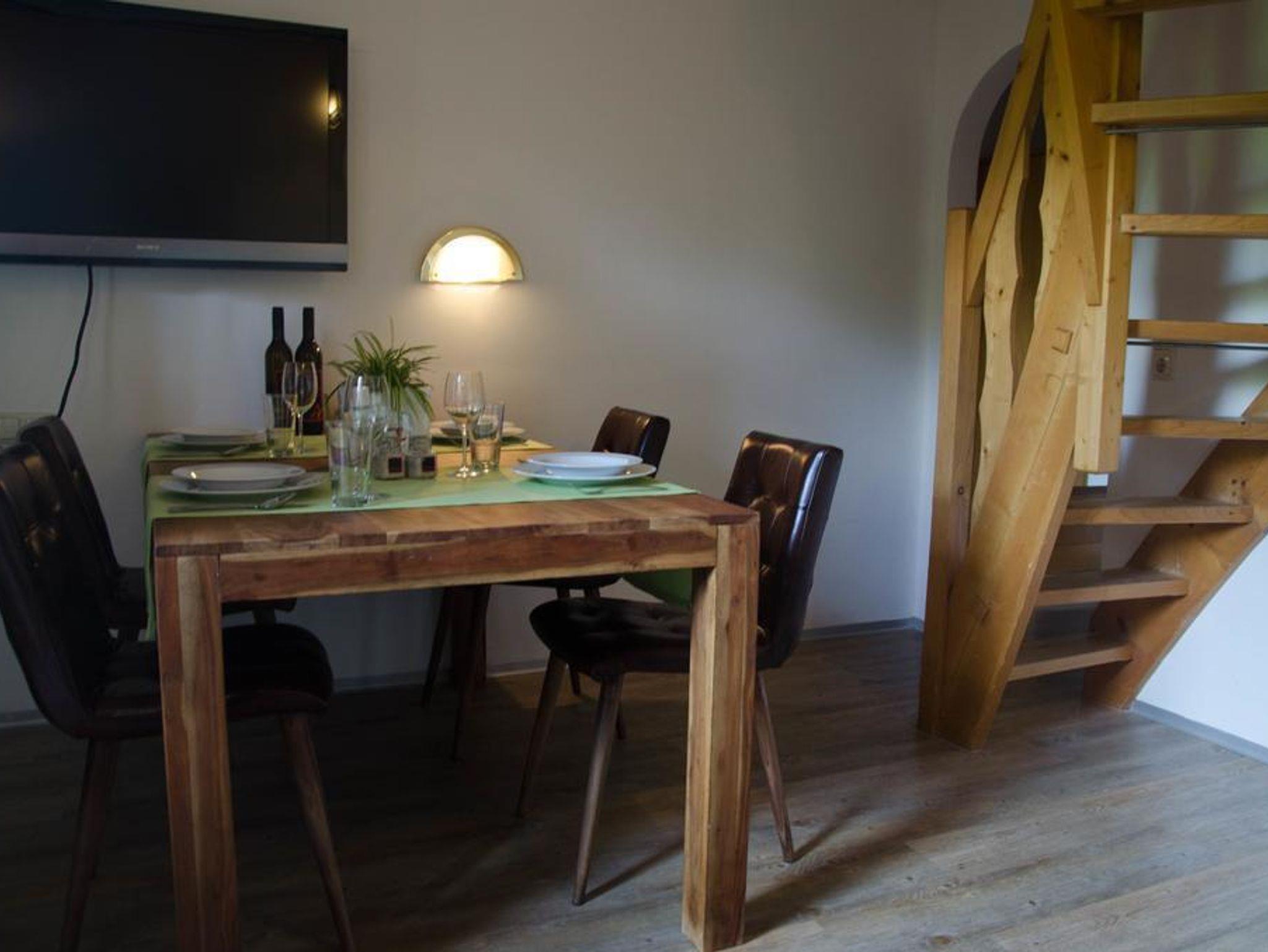 * Wohnraum mit gemütlicher Essecke und Schlafcouch (2 Personen)