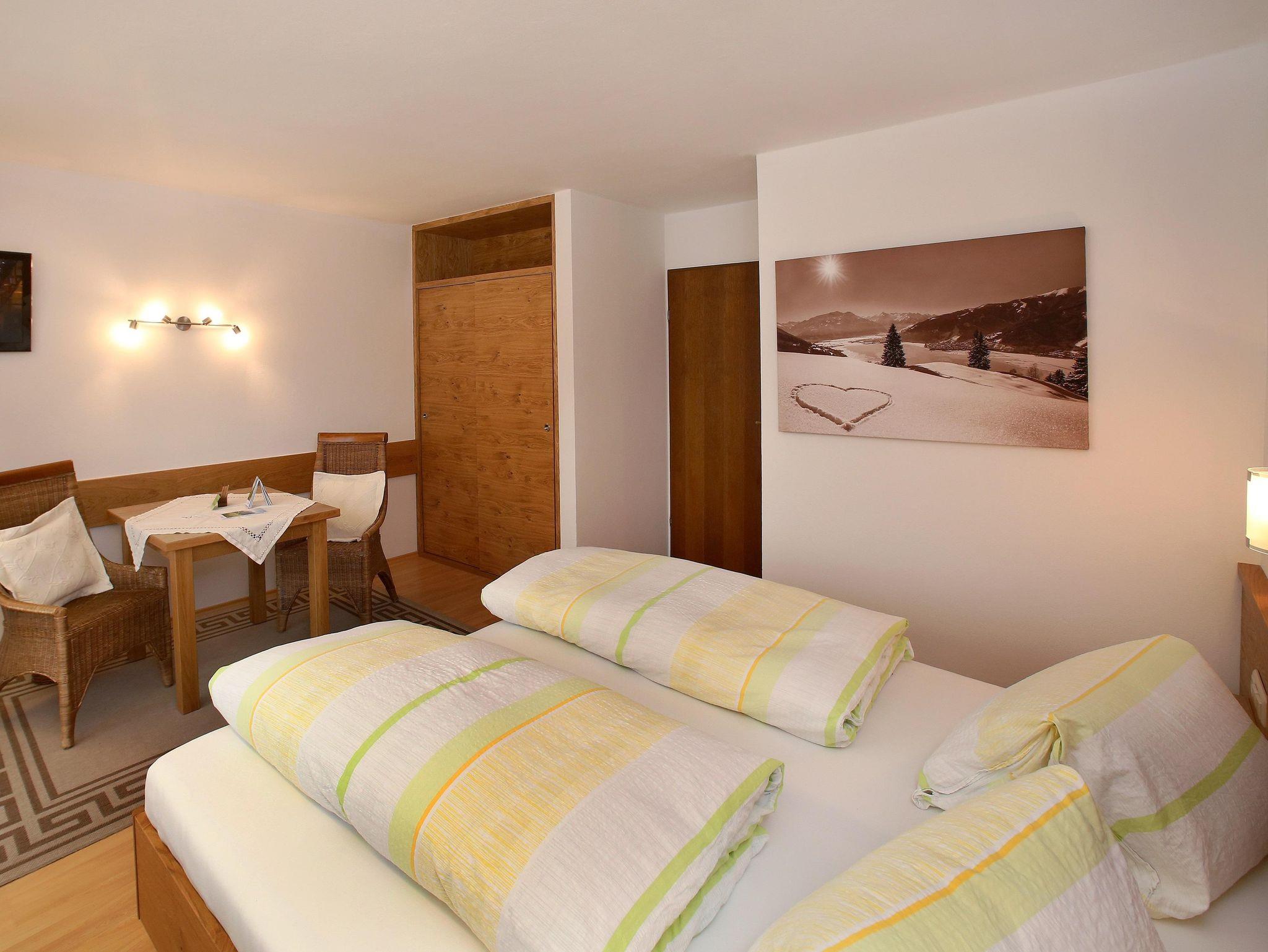 Ein Wohnschlafraum, mit normalem Doppelbett und Sitzbereich, 1 EXTRA Küche mit Essecke, Vorraum, Dusche WC sehr großer Balkon mit Sitzecke und unverbauten Bergblick